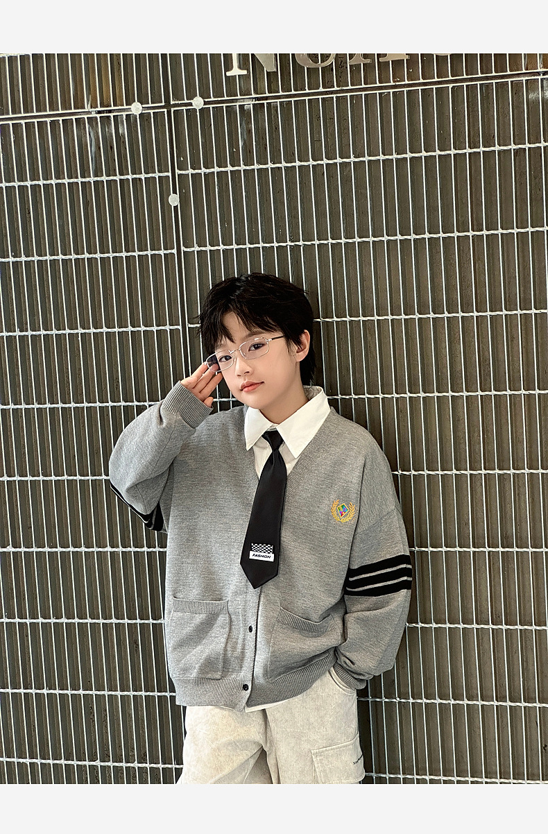 2024 새로운 어린이 코트 카디건 소년 스웨터 스웨터 스웨터 가을 국경