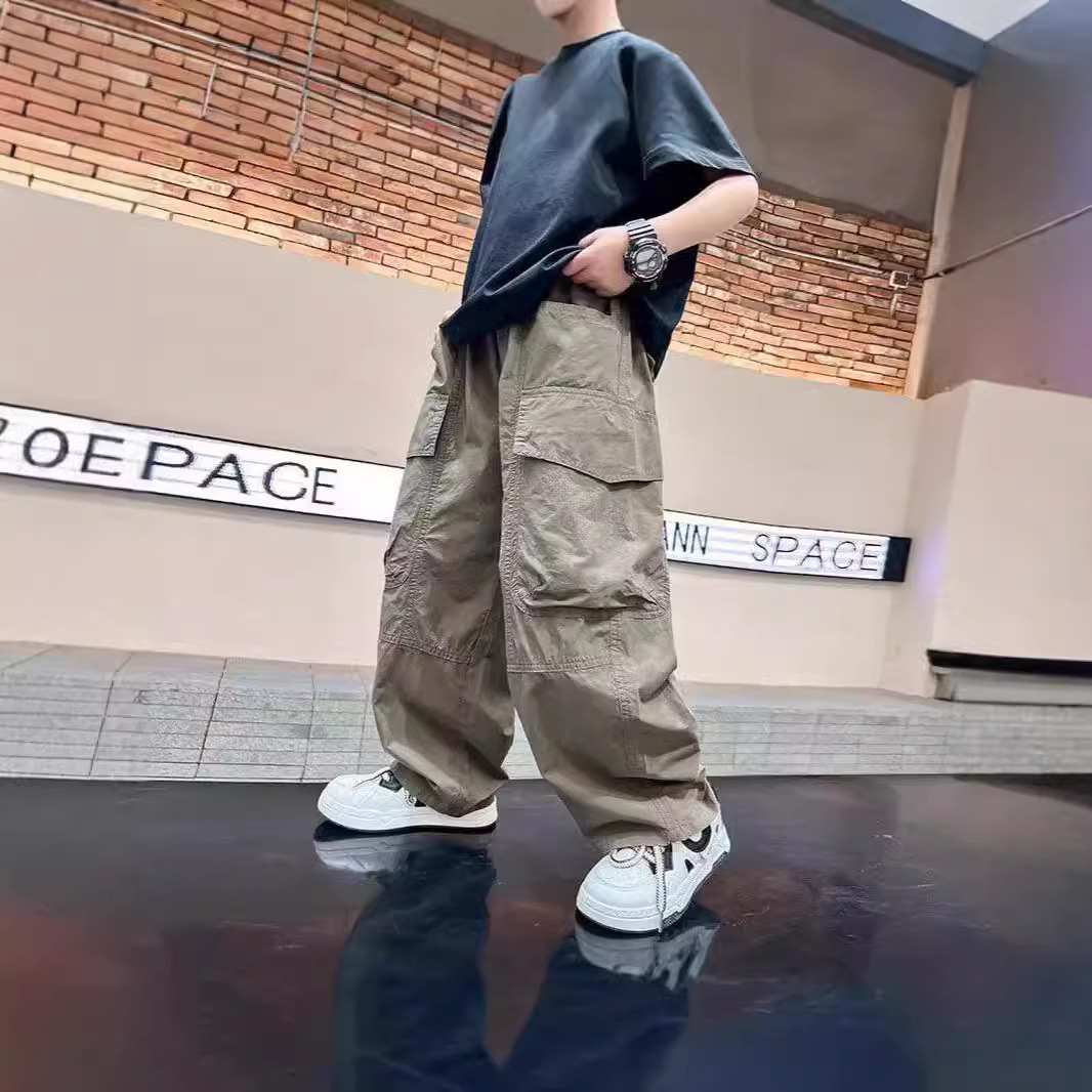 남자들의 새로운 여름 바지 2024 중 큰 아이들 캐주얼 한 잘 생긴 여름 트렌디 한 십대 스트레이트 툴링 바지스토어 가기