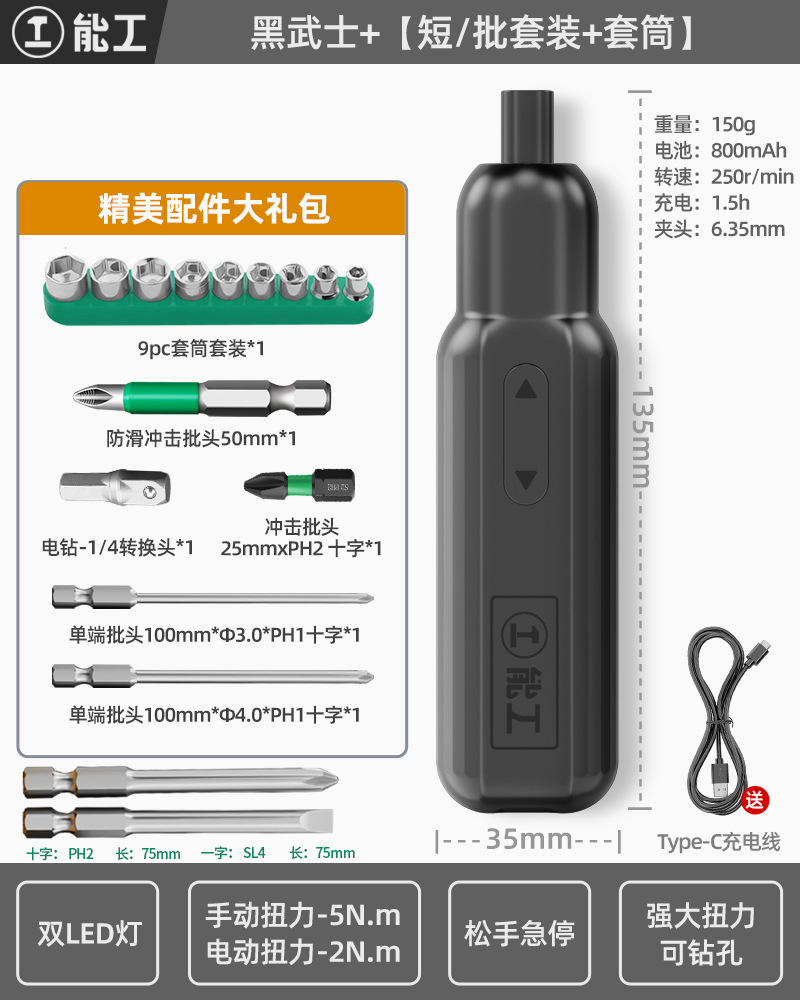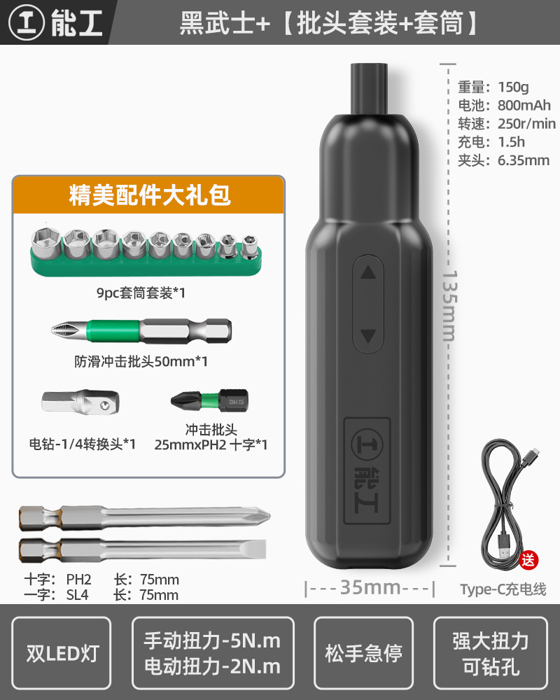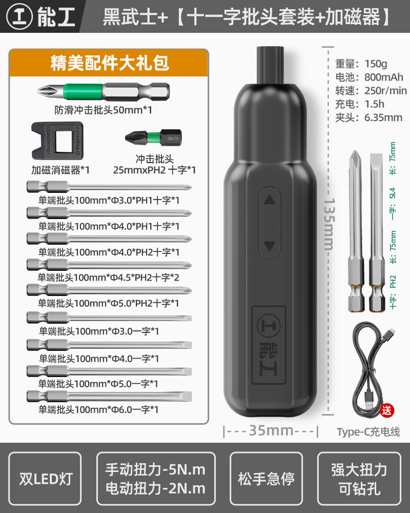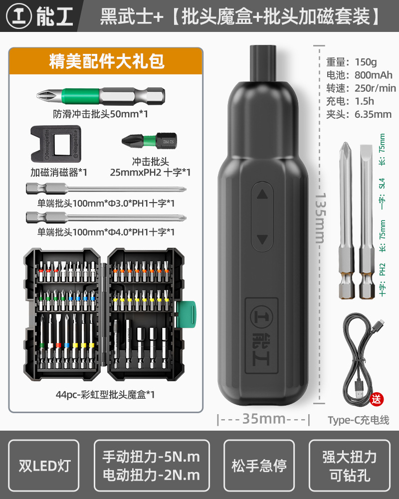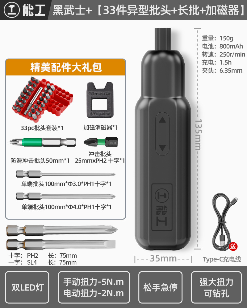 • 더블 램프 하이 토크 - 블랙 워리어 + [특수형 비트 33개 + 롱 배치 + 자화 장치]