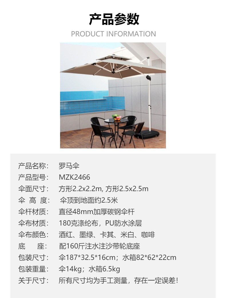 야외 파라솔 80L 물 탱크 파티오 우산 대형 마구간 태양 우산 야외 발코니 상업 로마 우산스토어 가기
