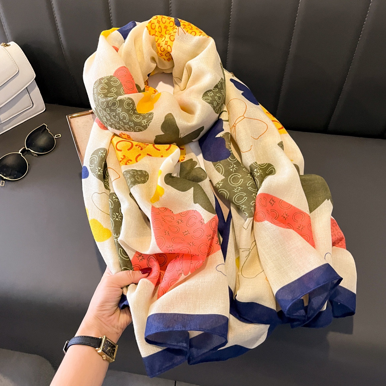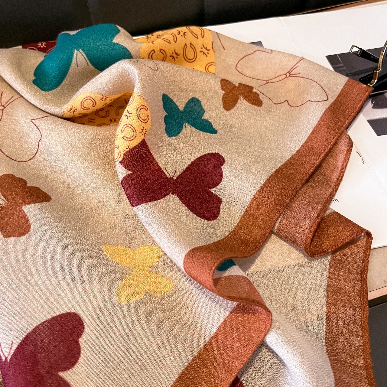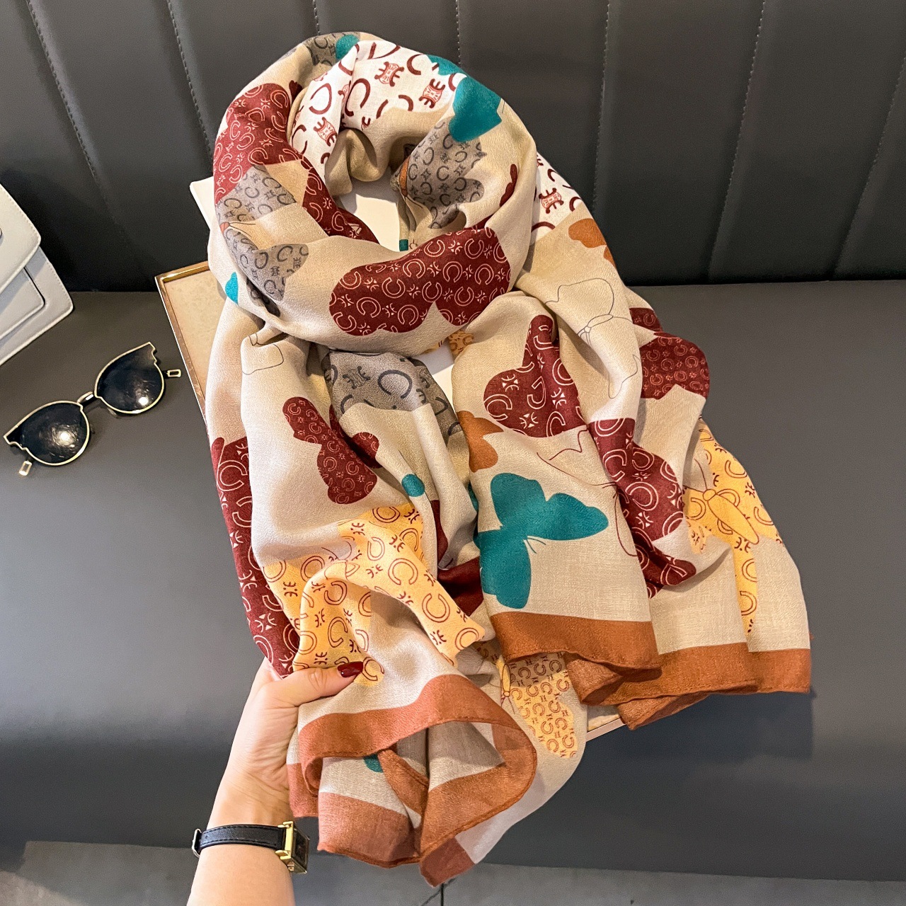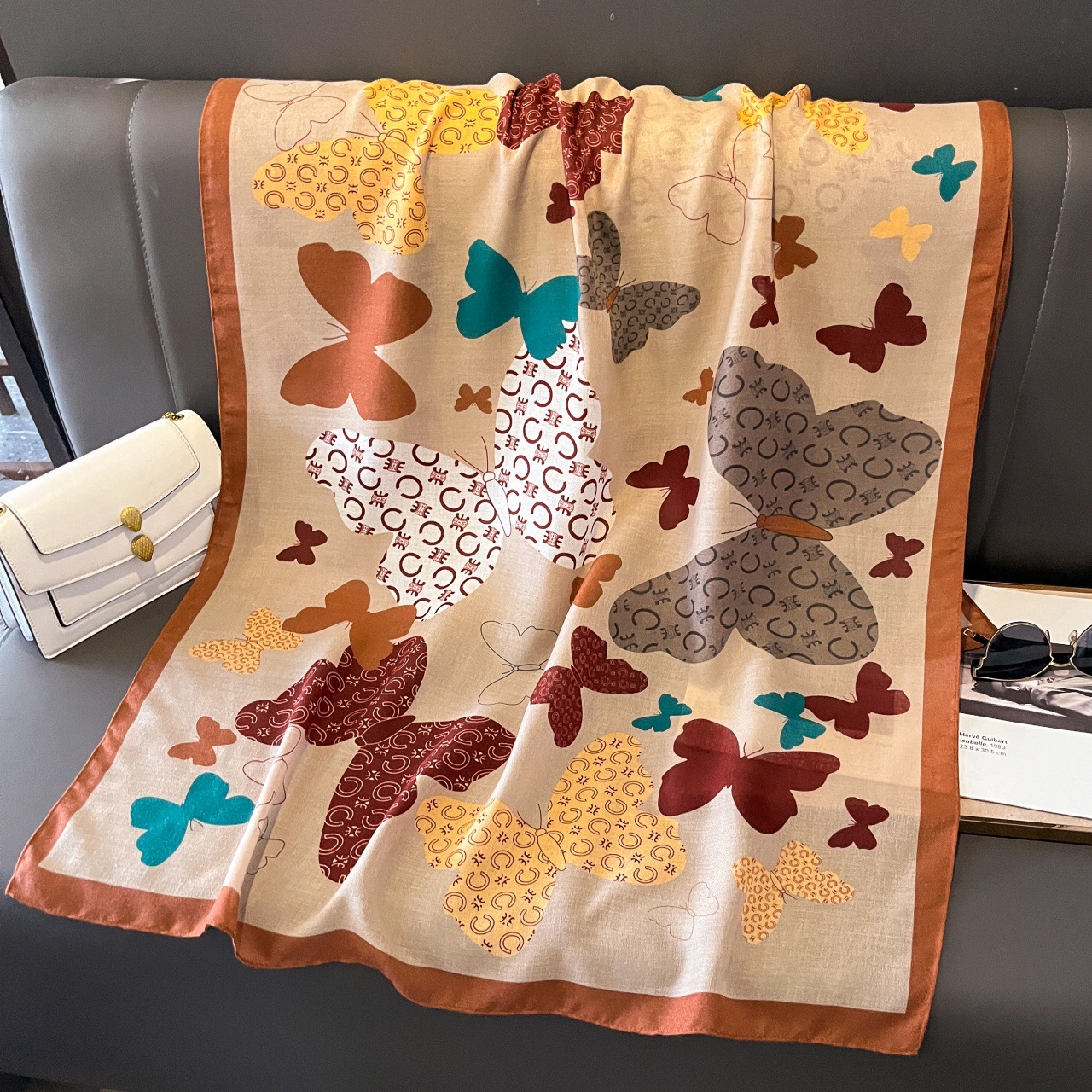 고급 나비 인쇄 면화 및 리넨 스카프 여성 사계절 예술적 경량 휴가 관광 해변 수건 목도리