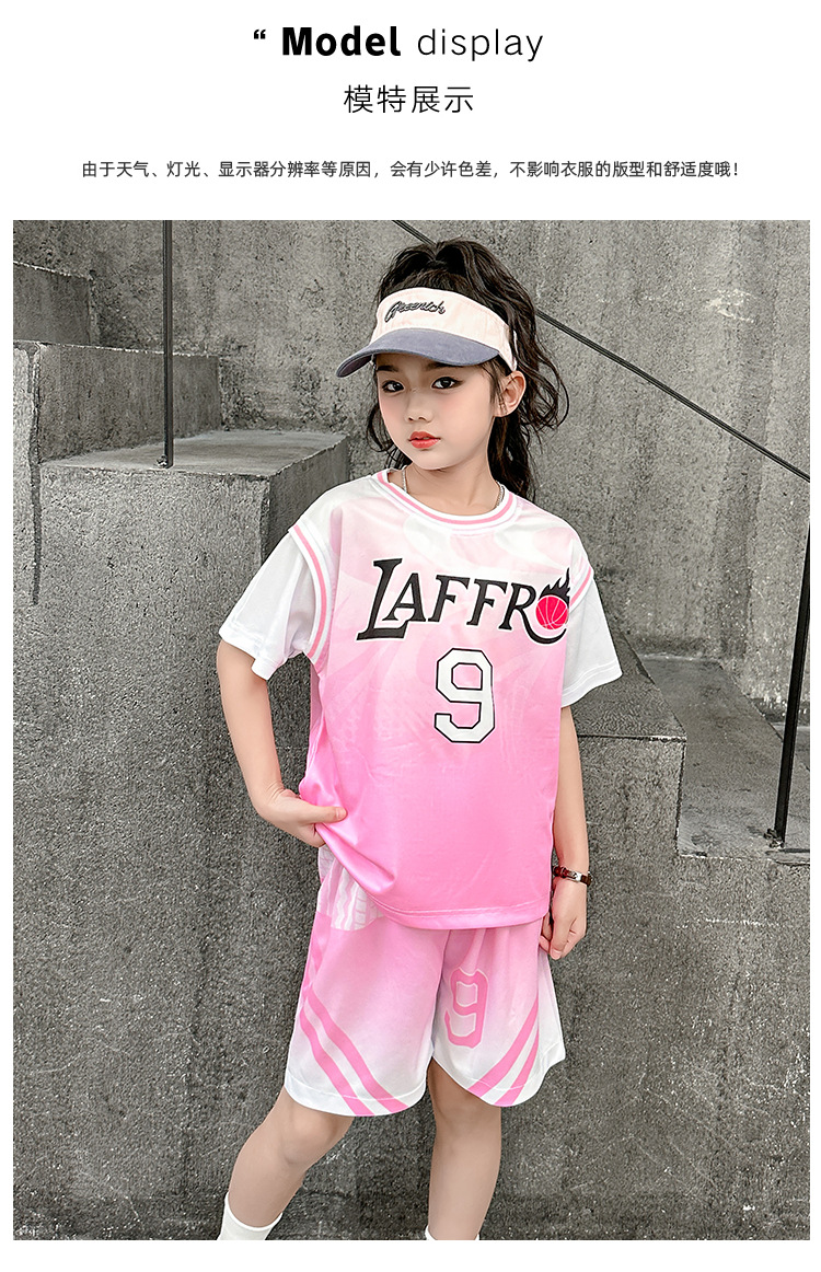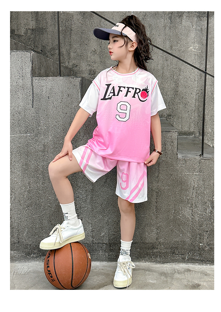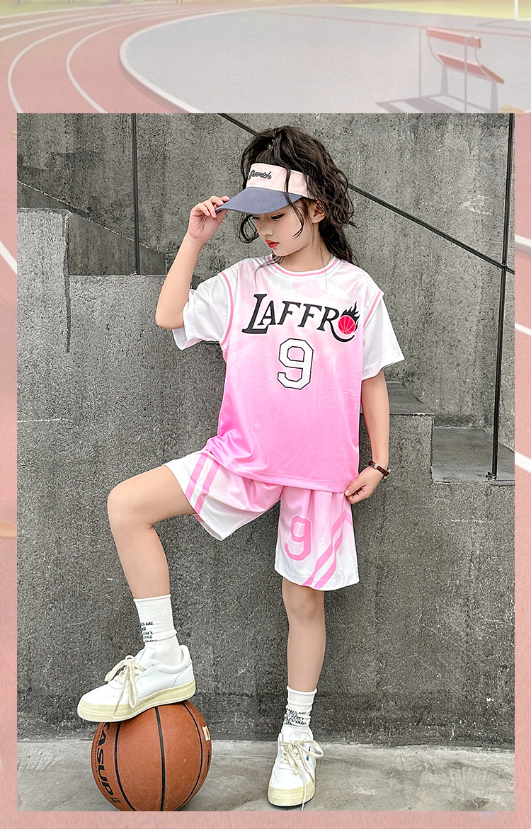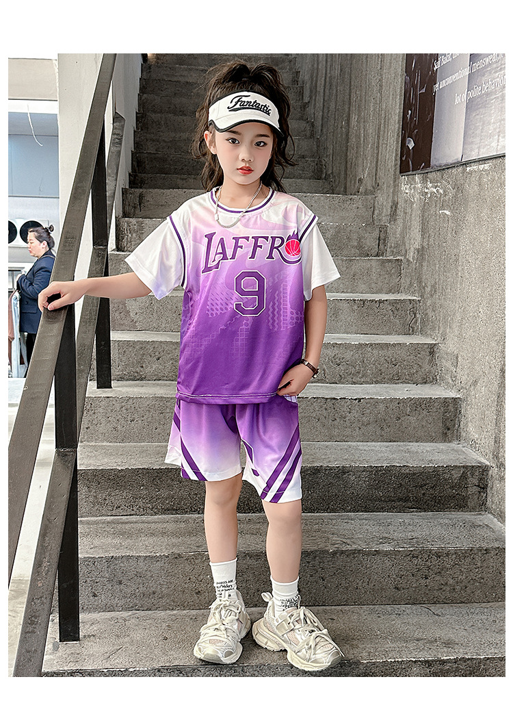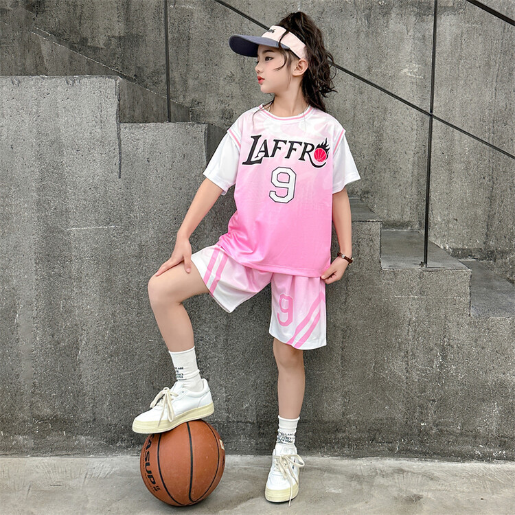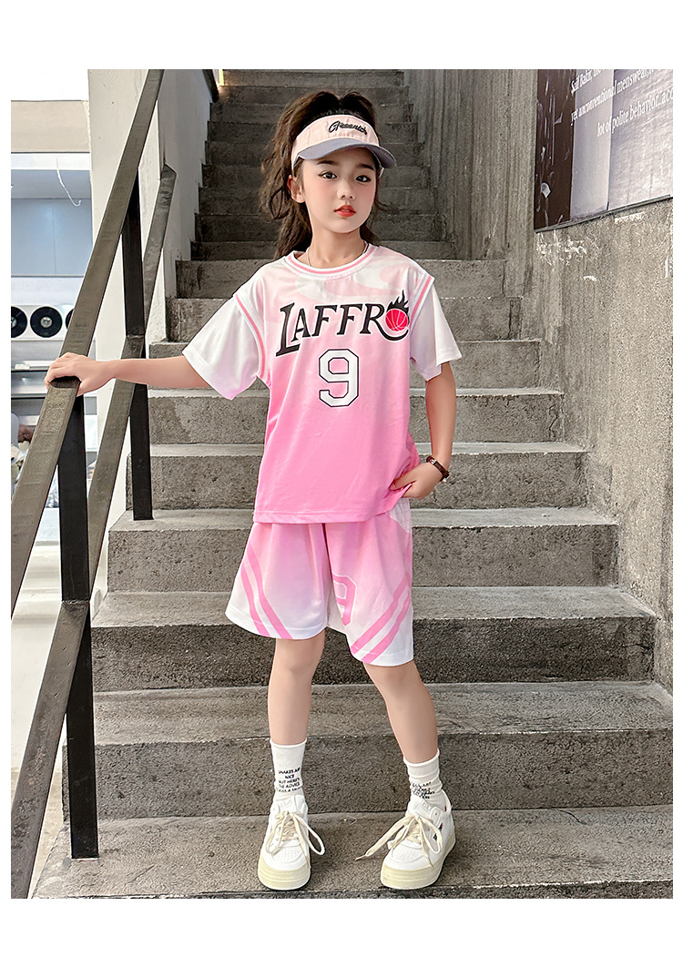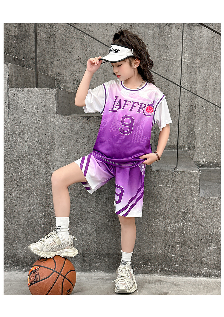 여자 여름 농구 세트 세트 어린이 신식 중대형 어린이 스포츠 빠른 건조 세트 가짜 투피스 반팔 저지 트렌디