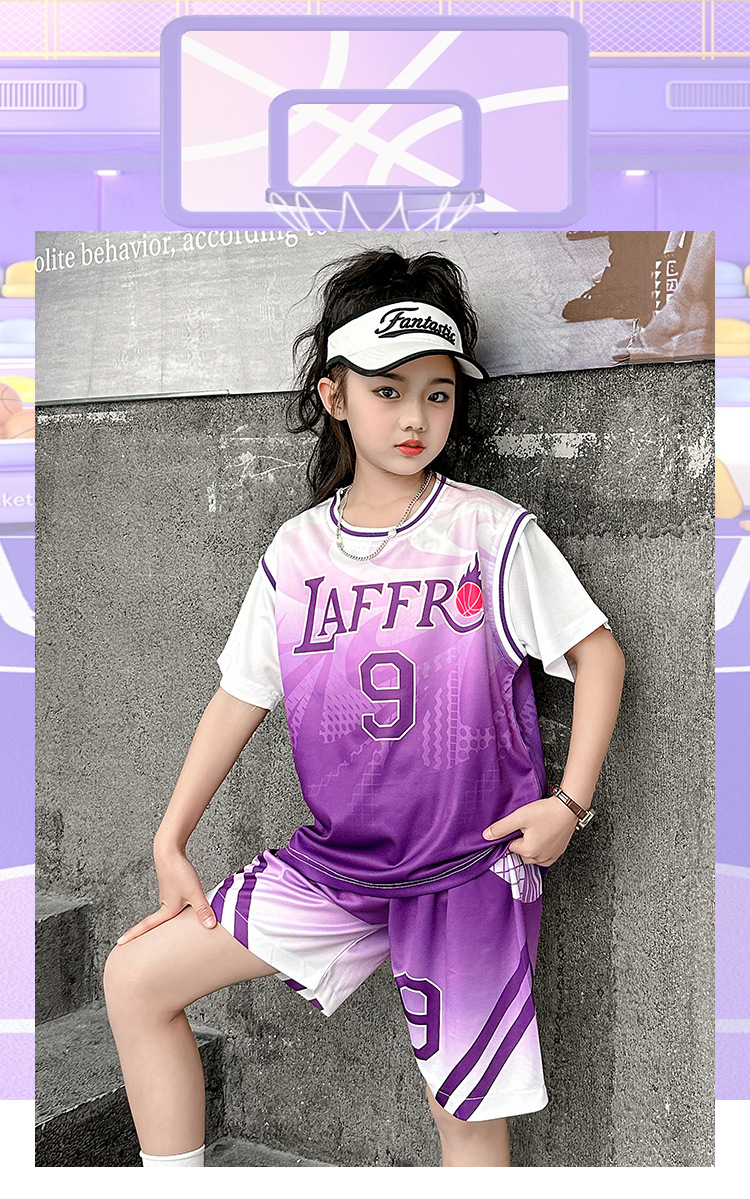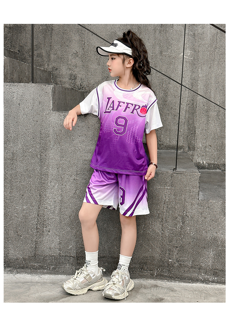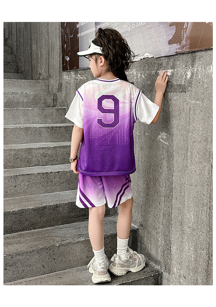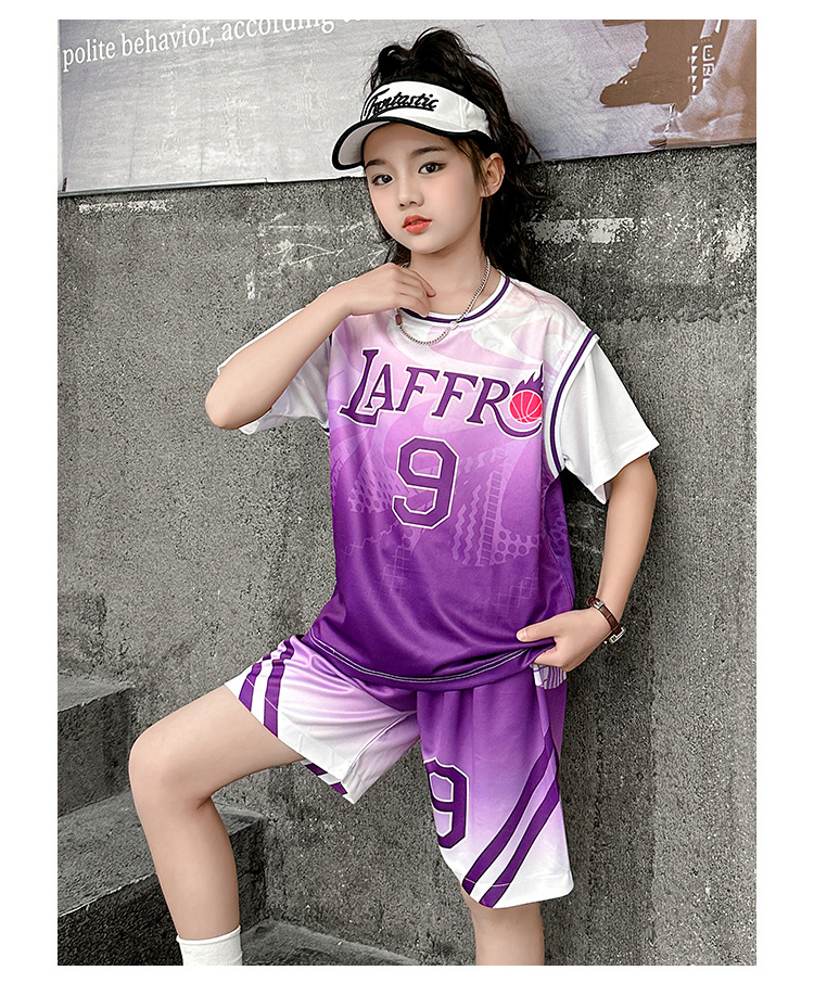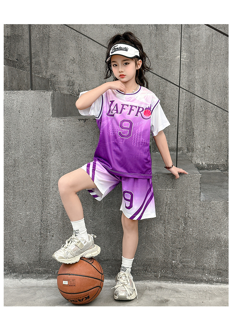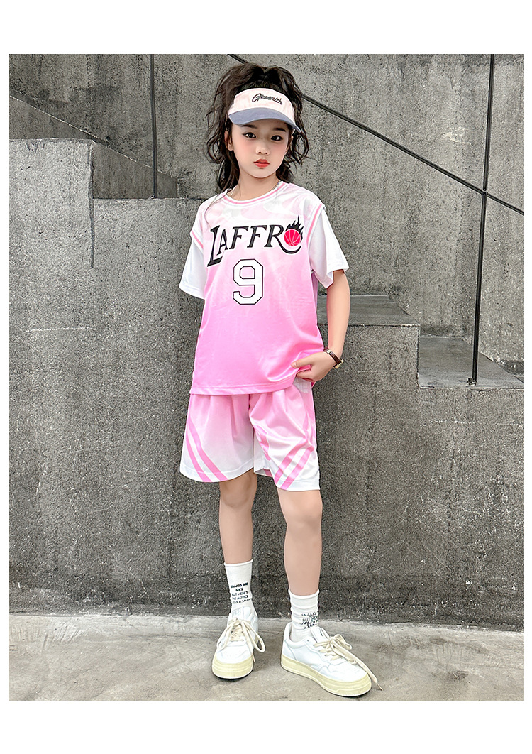 여자 여름 농구 세트 세트 어린이 신식 중대형 어린이 스포츠 빠른 건조 세트 가짜 투피스 반팔 저지 트렌디