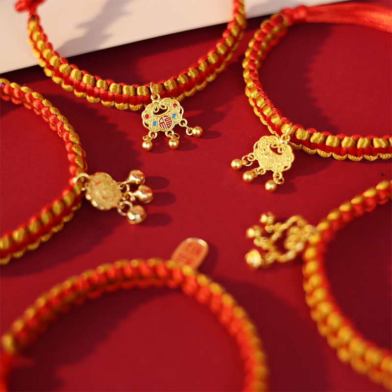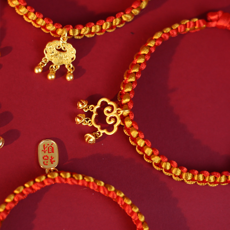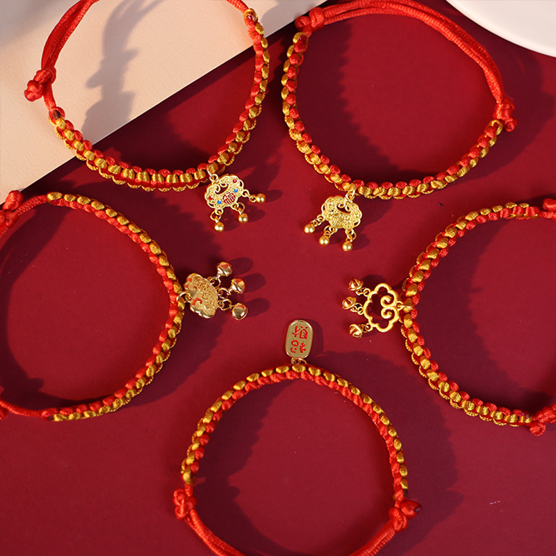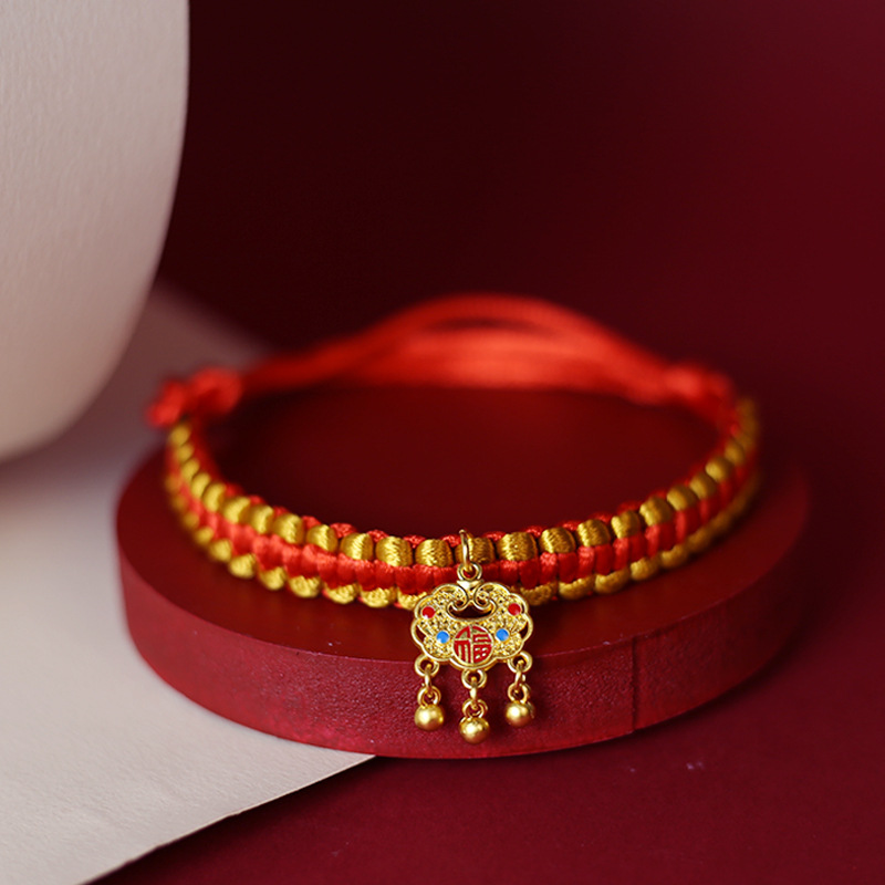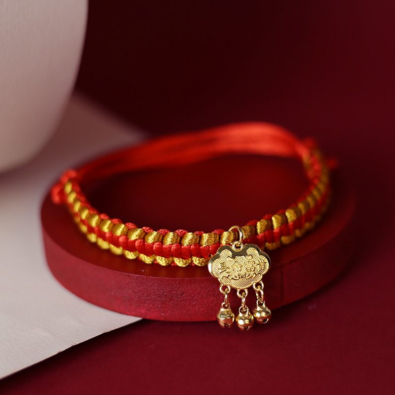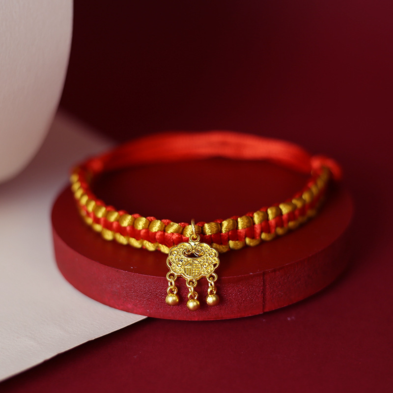 • 금색과 빨간색 밧줄로 짠 모델 - Xiao Fu 잠금 장치