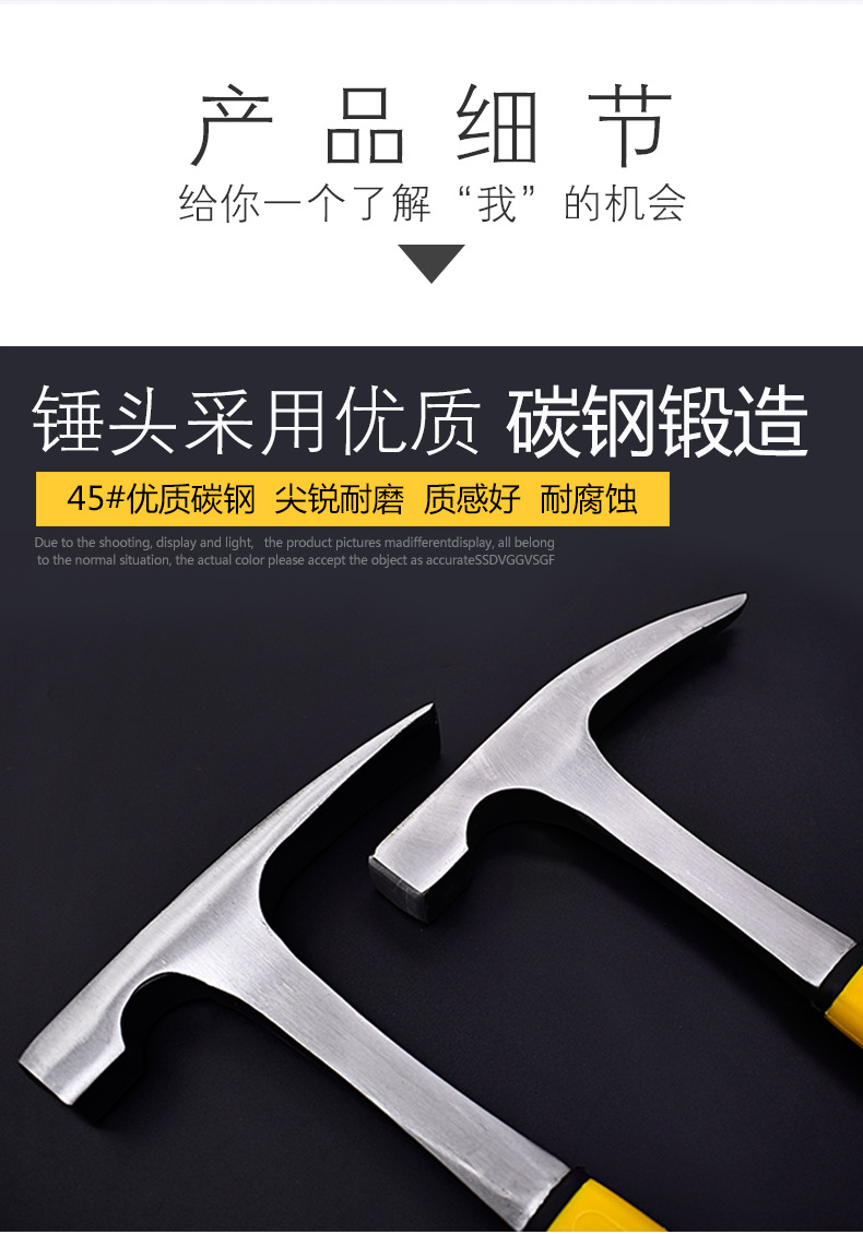 지질 해머 탐사 해머 시트 금속 망치 전문 날카로운 망치 야외 뾰족한 오리 지폐 해머 도구 플랫 헤드 다기능