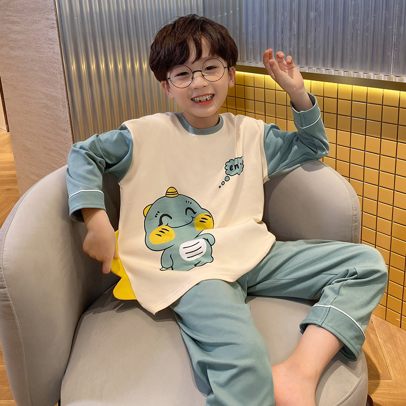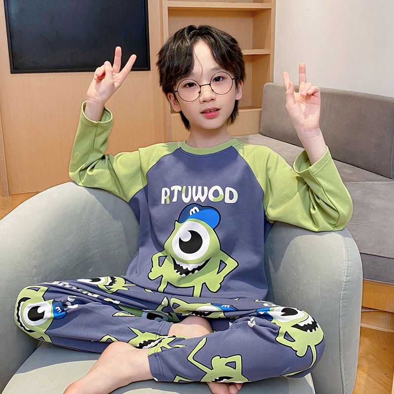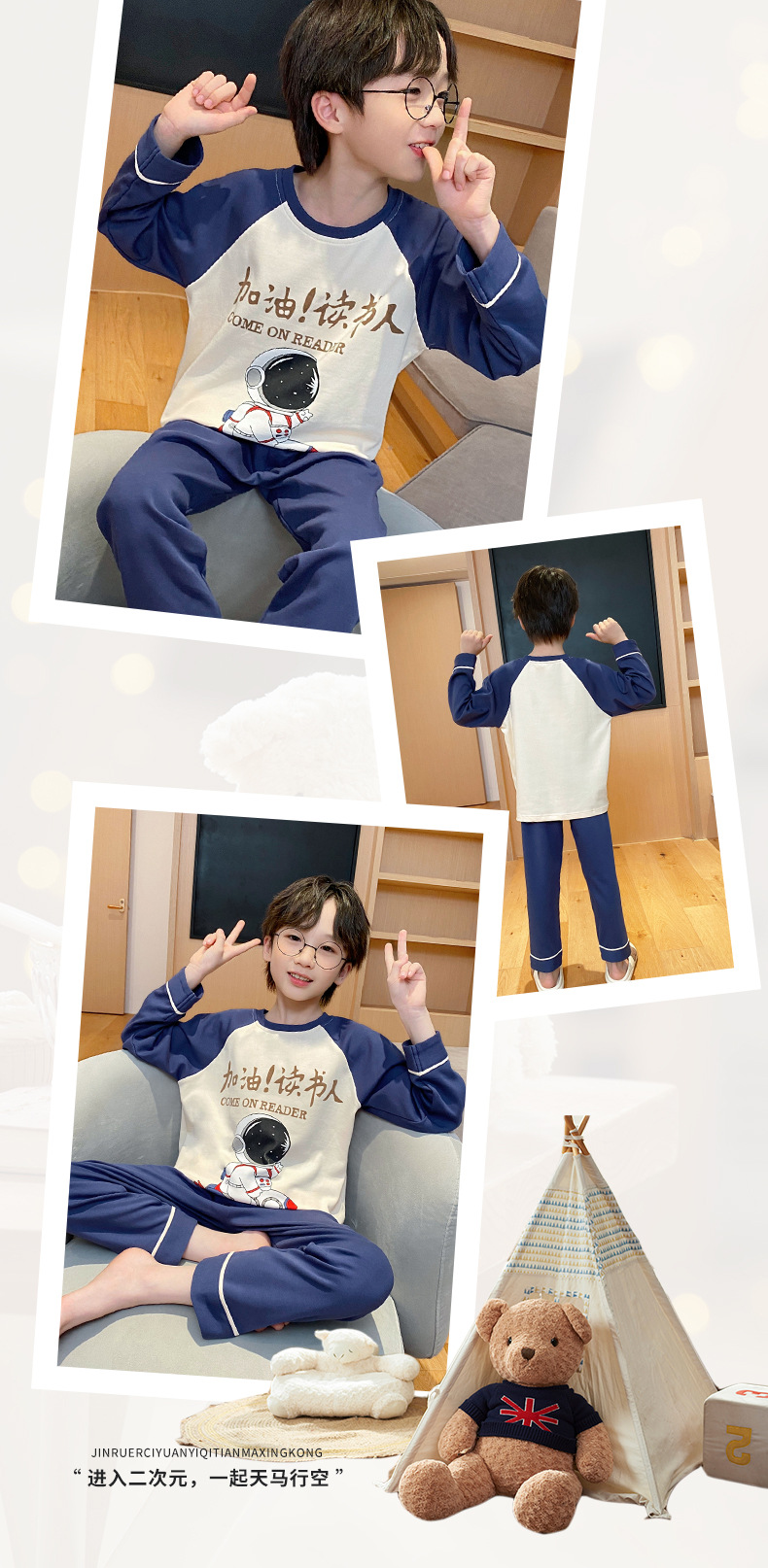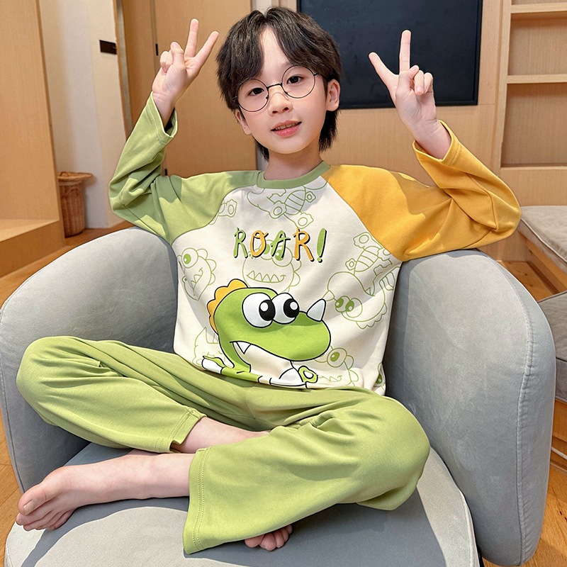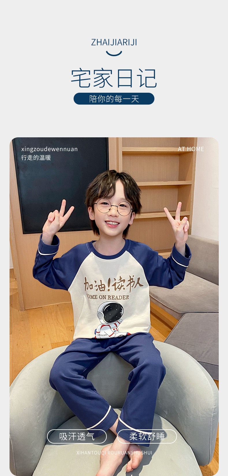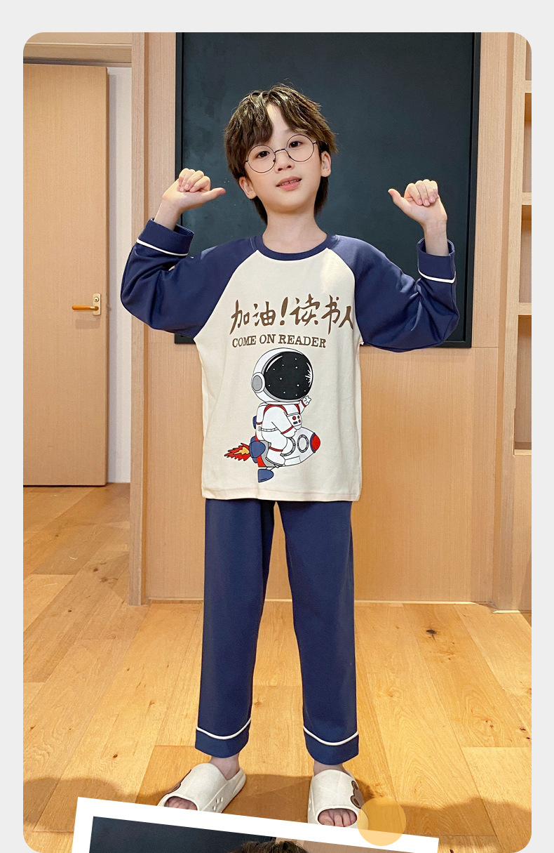 2024 년 새 소년 잠옷 봄과 가을면 긴 소매 얇은 어린이 어린 소년 십대 큰 어린이 가정 옷스토어 가기