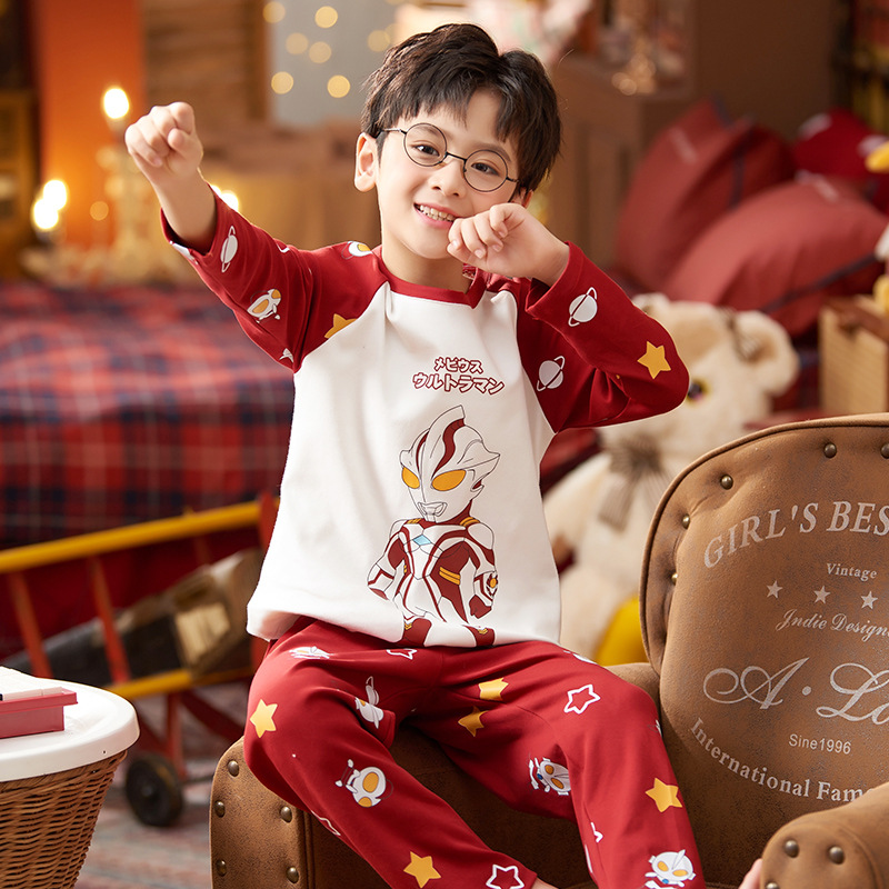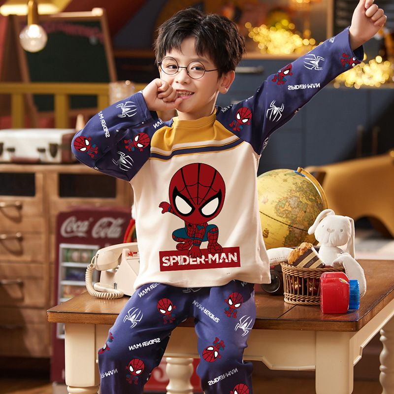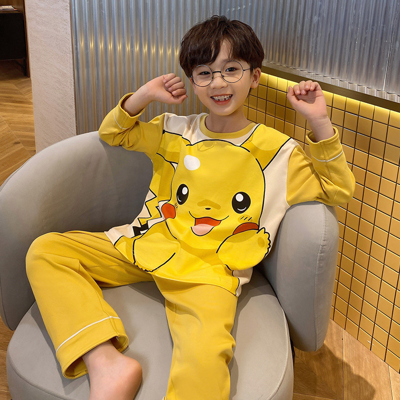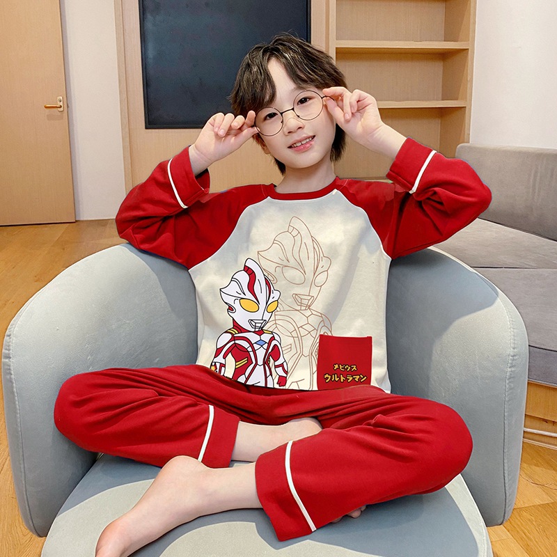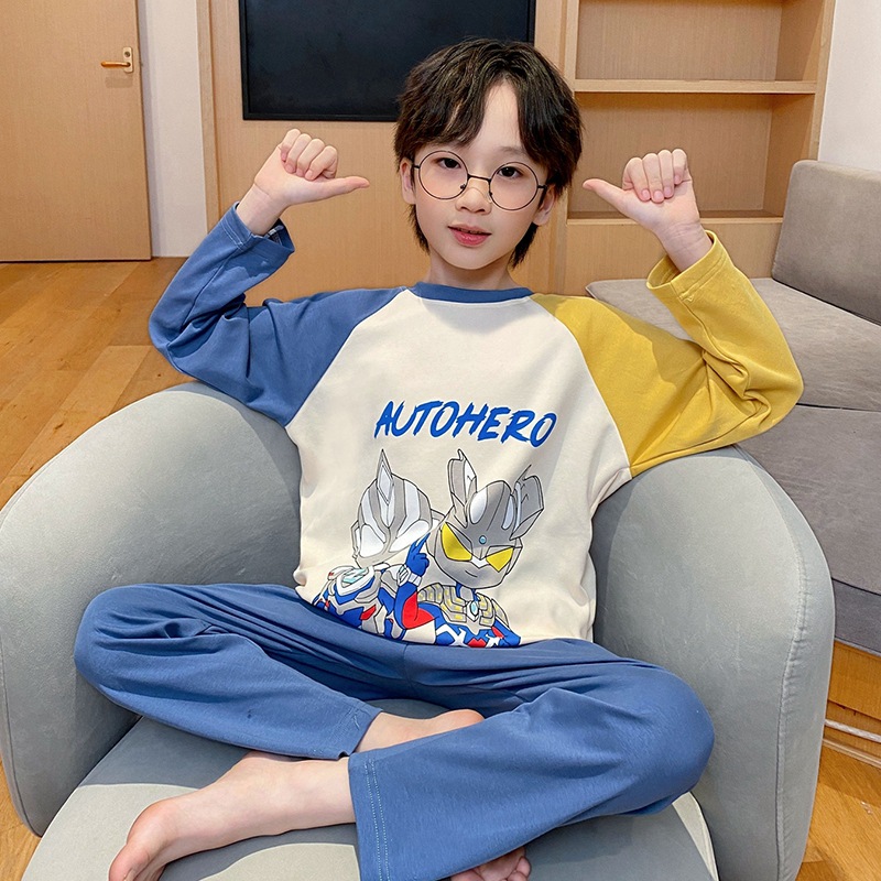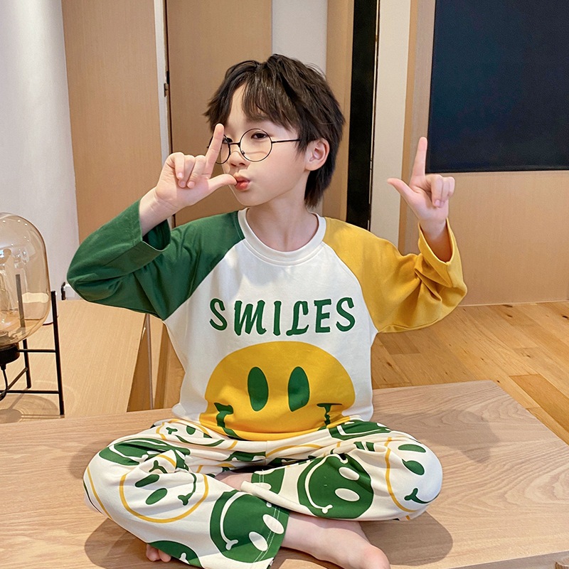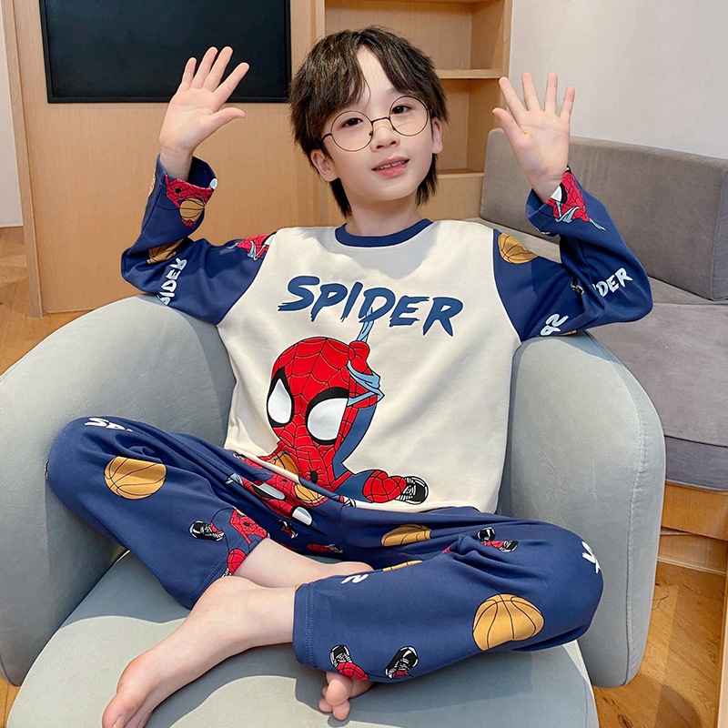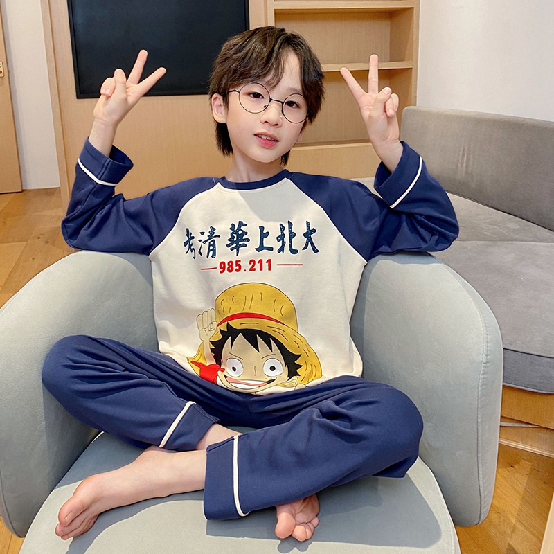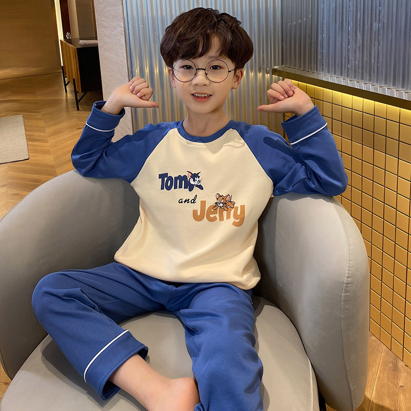 2024 년 새 소년 잠옷 봄과 가을면 긴 소매 얇은 어린이 어린 소년 십대 큰 어린이 가정 옷스토어 가기