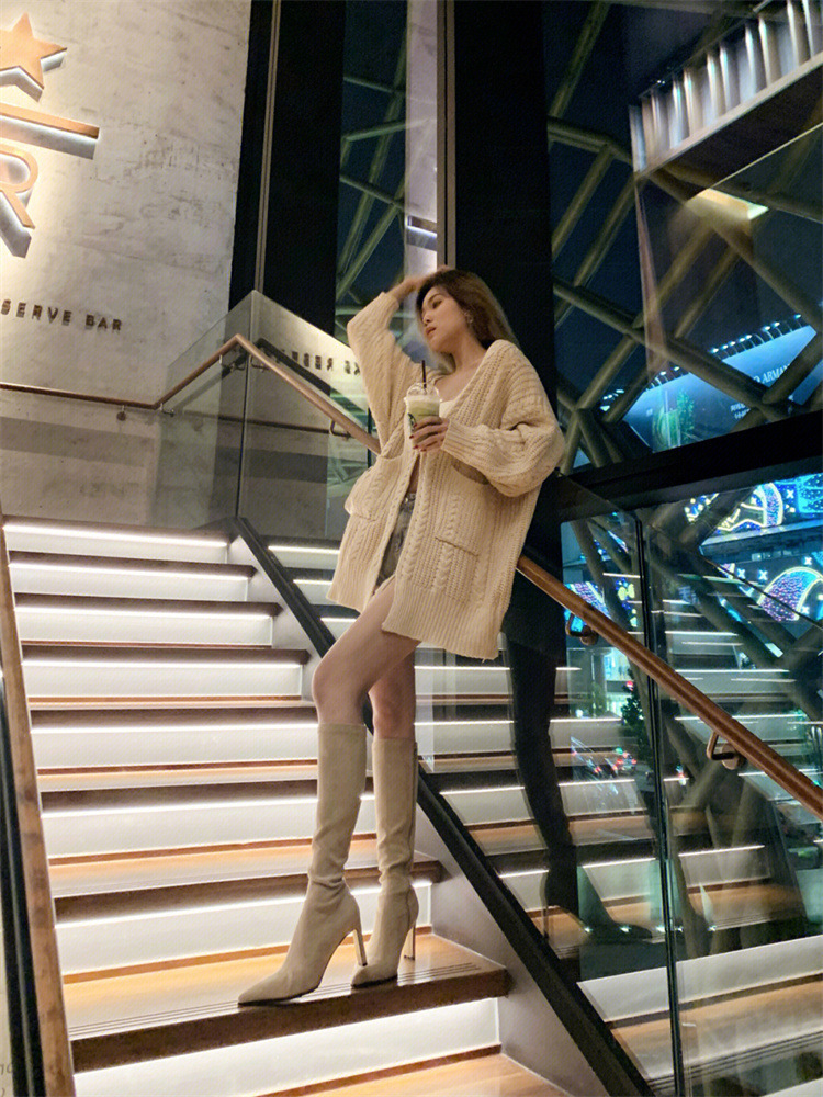 2024 년 가을 겨울 어린이를위한 하이힐 포인팅 발가락 부츠 뉴 사이드 지퍼 스웨이드 하이 배럴 스트레치 얇은 부츠 나이트 부츠스토어 가기