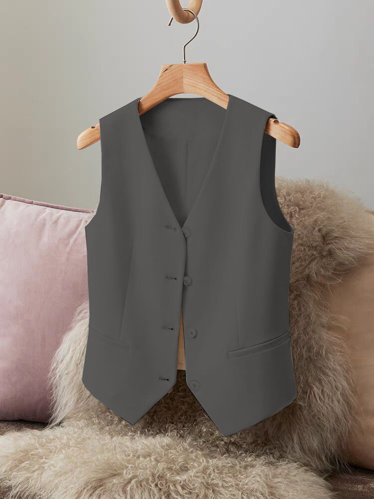 세트 조끼 여성의 2024 년 봄과 가을 새로운 슬림 핏 아우터웨어 슬리밍 스태킹 여성용 블랙 쇼트 조끼
