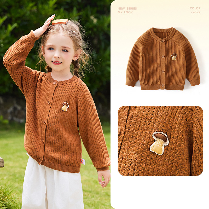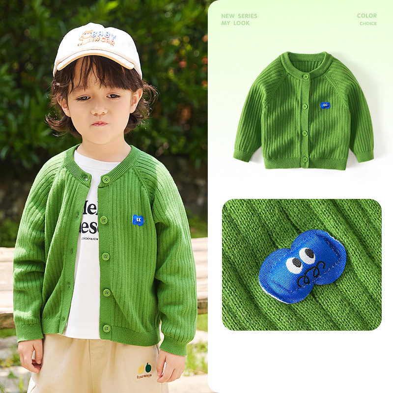 쿨와미 봄가을 신상 아동용 스웨터 귀엽고 다재다능한 니트 가디건 어린이 한국 스타일 단색 라운드넥 유아복스토어 가기