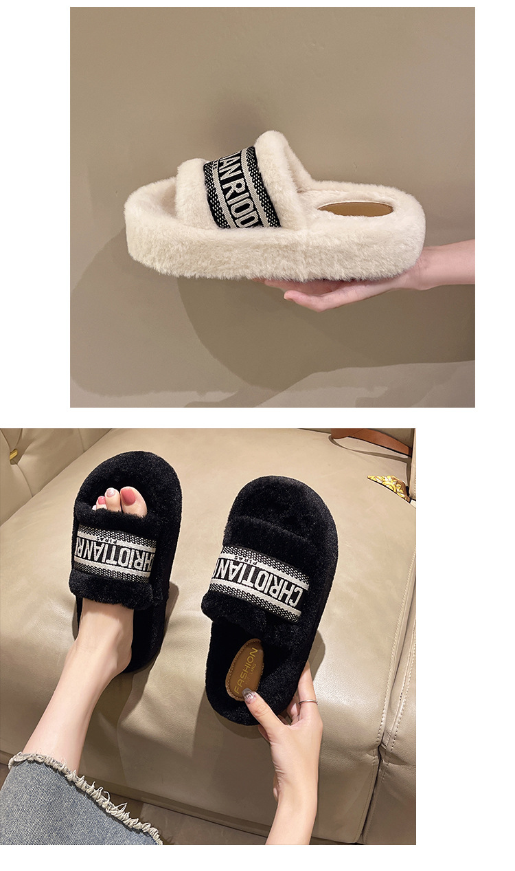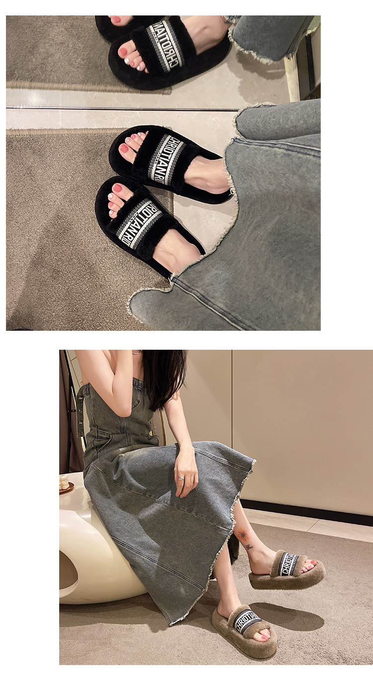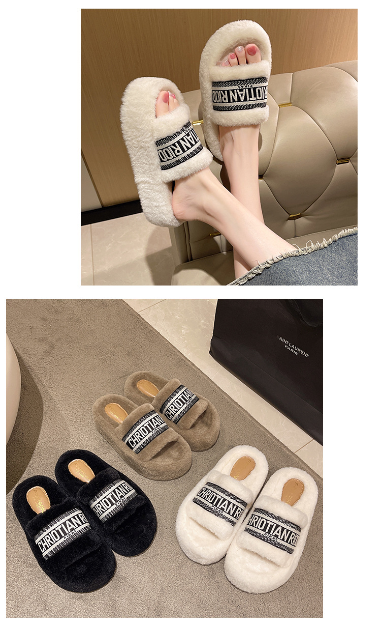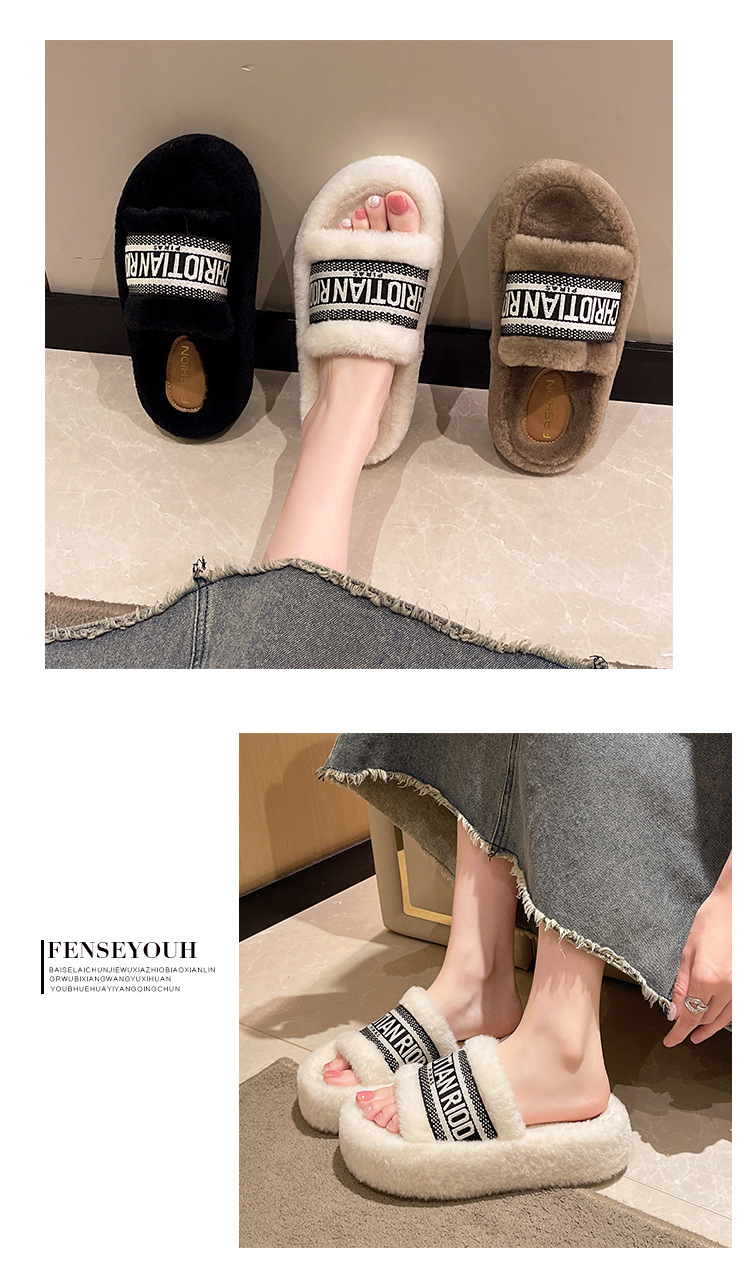 겉옷 2024 가을과 겨울 새로운 두꺼운 마오 마오 슬리퍼 여성 편지 한 단어 상점 유행 작은 높이 올리는 면 슬리퍼스토어 가기