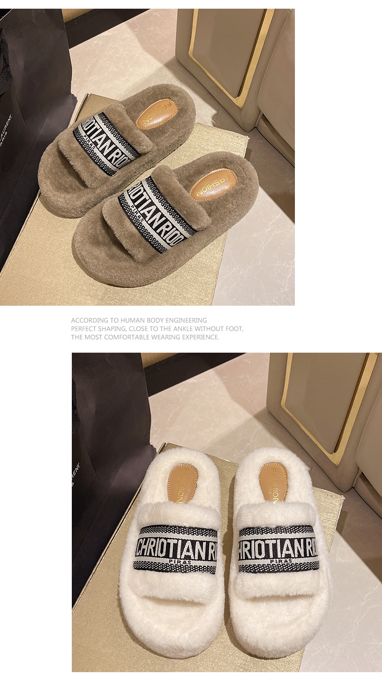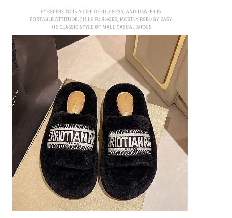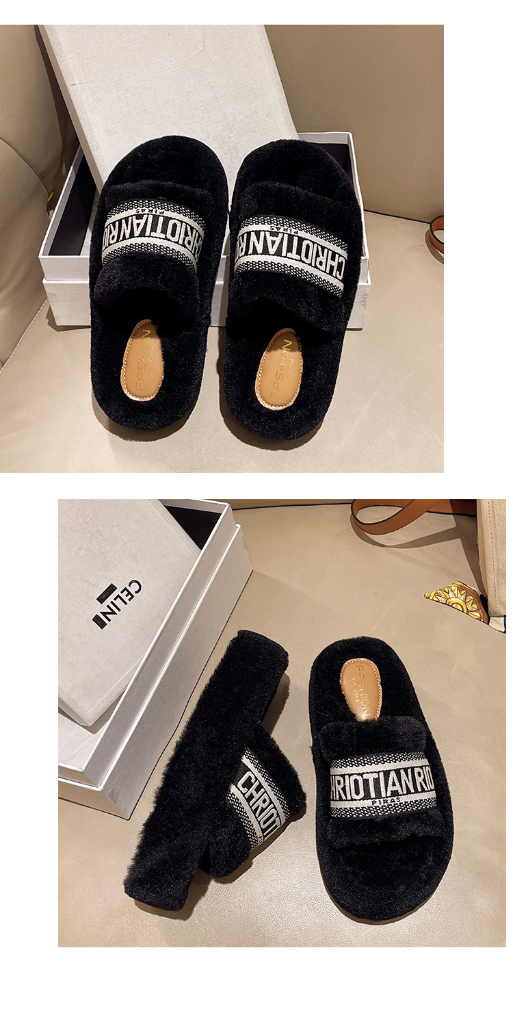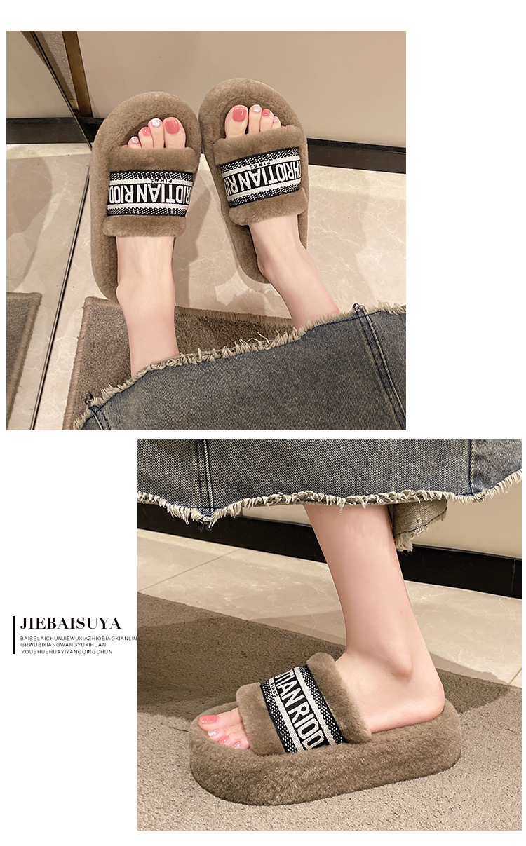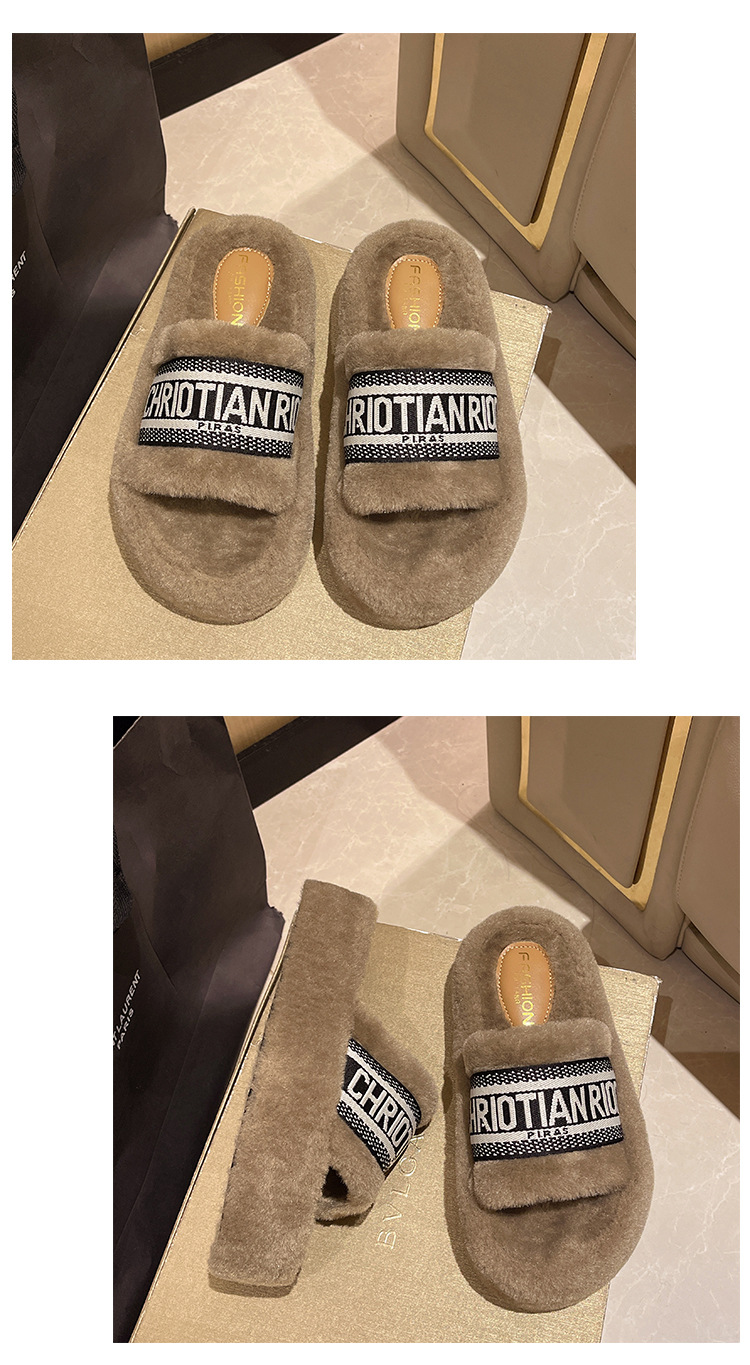 겉옷 2024 가을과 겨울 새로운 두꺼운 마오 마오 슬리퍼 여성 편지 한 단어 상점 유행 작은 높이 올리는 면 슬리퍼스토어 가기