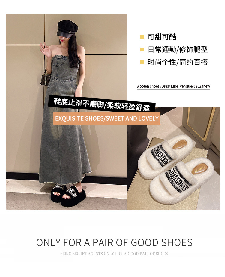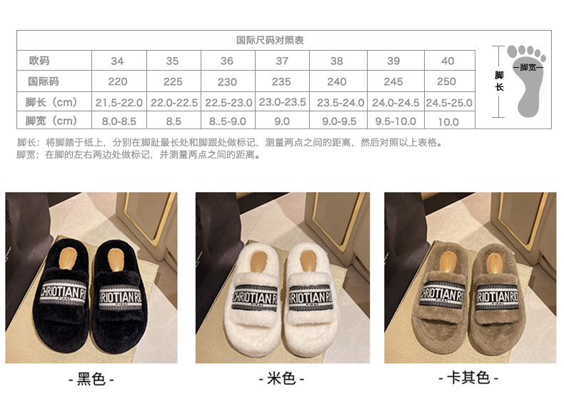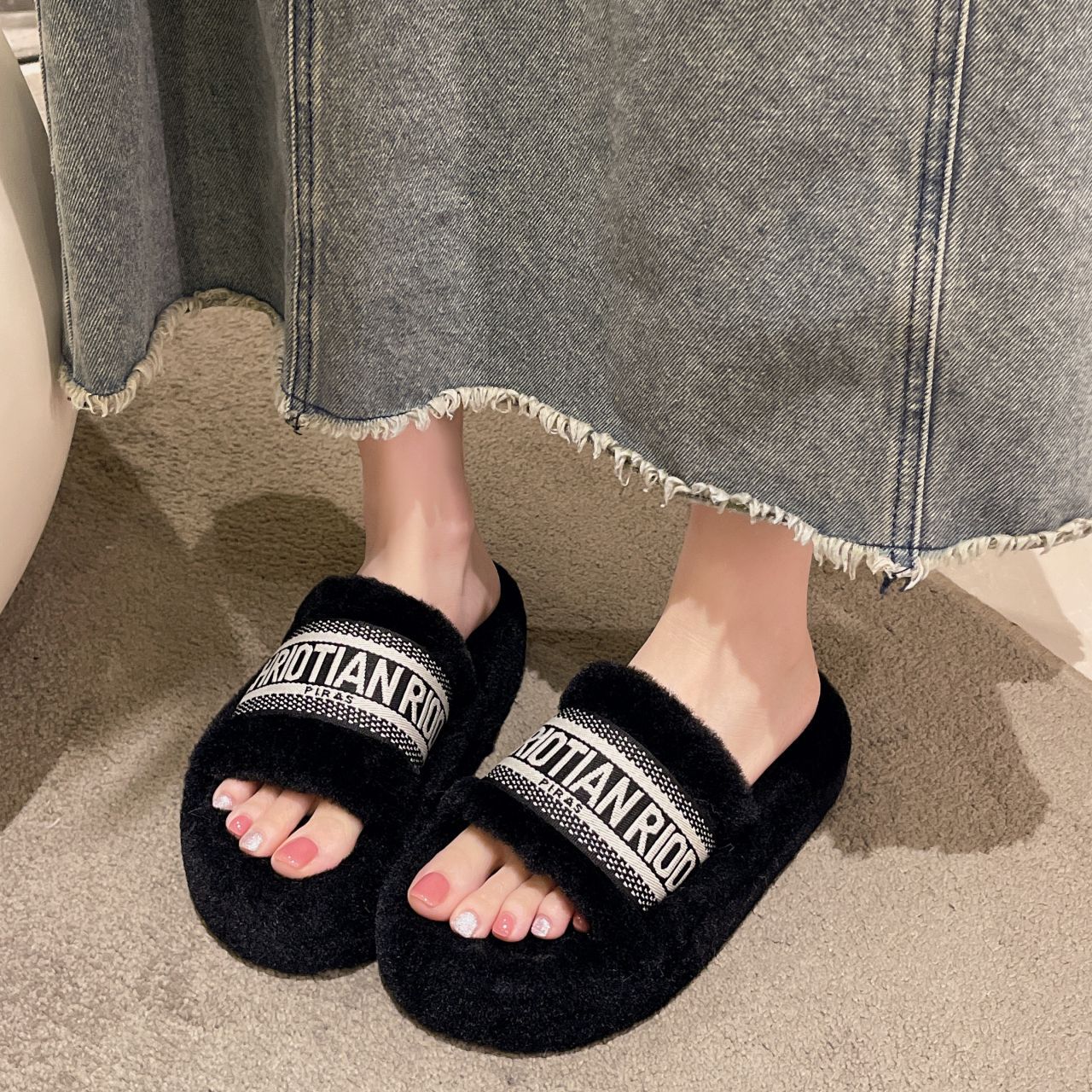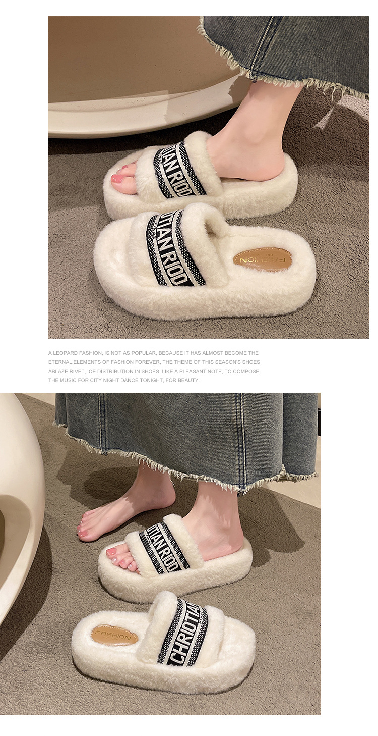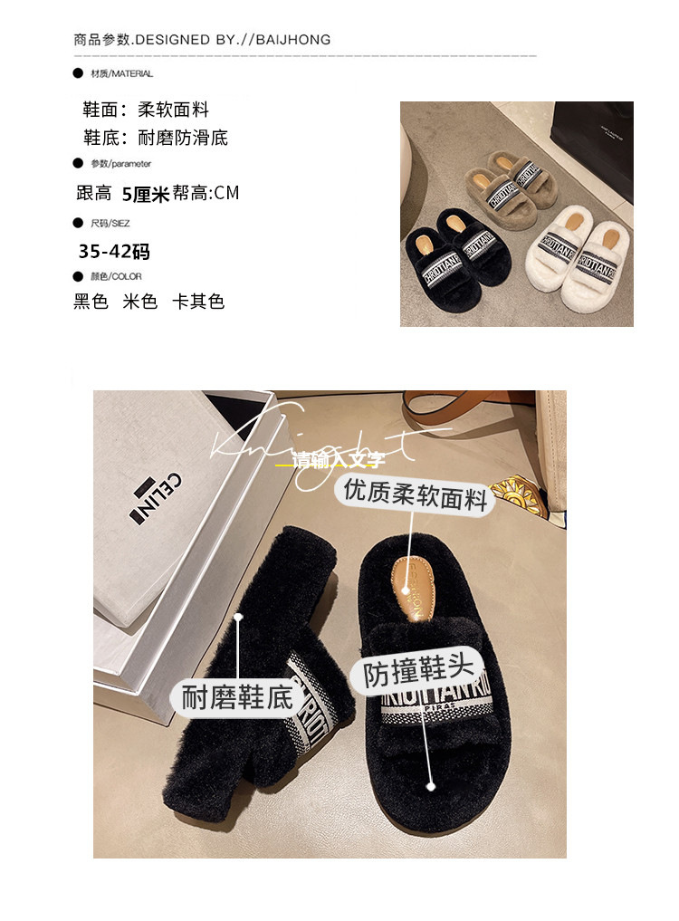 겉옷 2024 가을과 겨울 새로운 두꺼운 마오 마오 슬리퍼 여성 편지 한 단어 상점 유행 작은 높이 올리는 면 슬리퍼스토어 가기