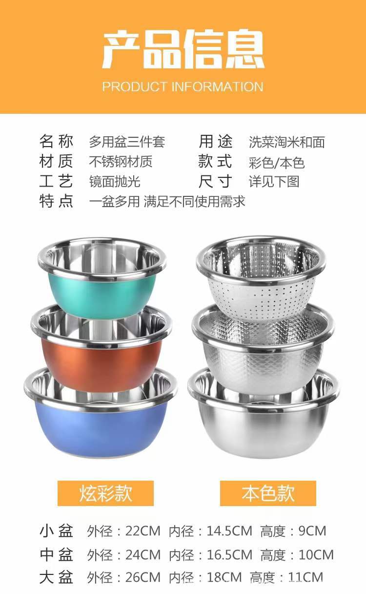 컬러 분지 대형 리버스 사이드 3 피스 세트 가정용 유럽 스타일 탱크 분지 주방 다중 사용 야채 세척 분지