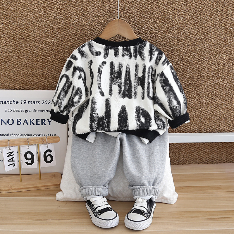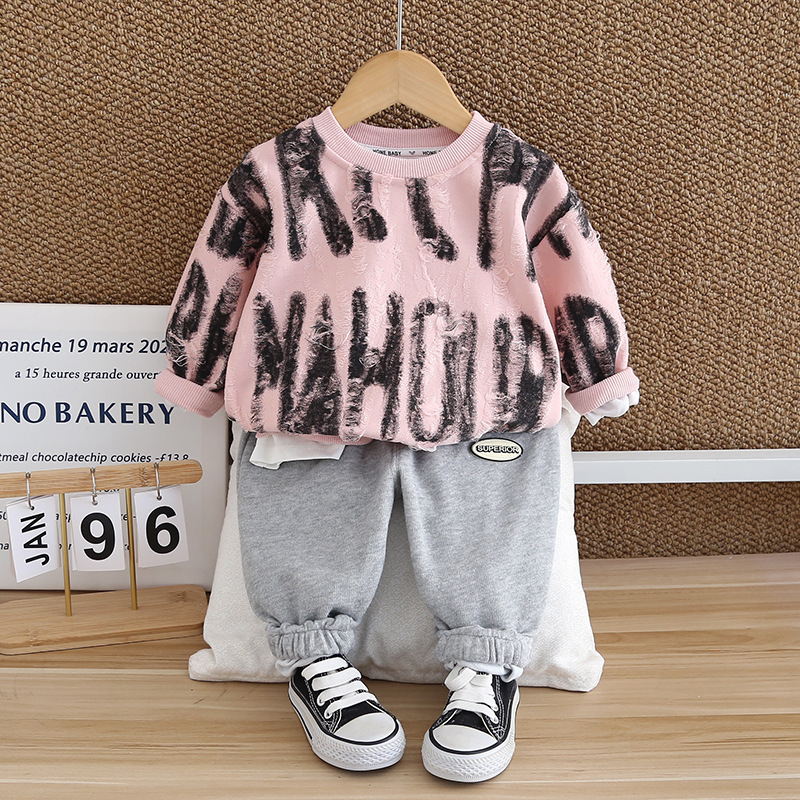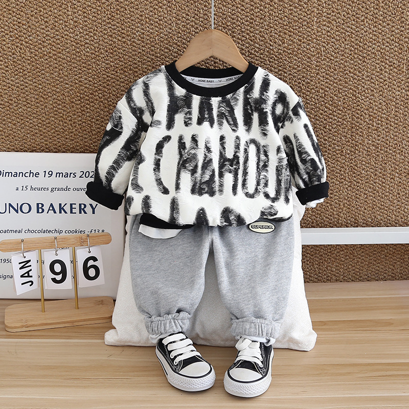 봄과 가을 만화 어린이 세트 남녀 2024 봄과 가을 스웨터 넥타이 염색 세트 아기 잘 생긴 스웨터 가을스토어 가기