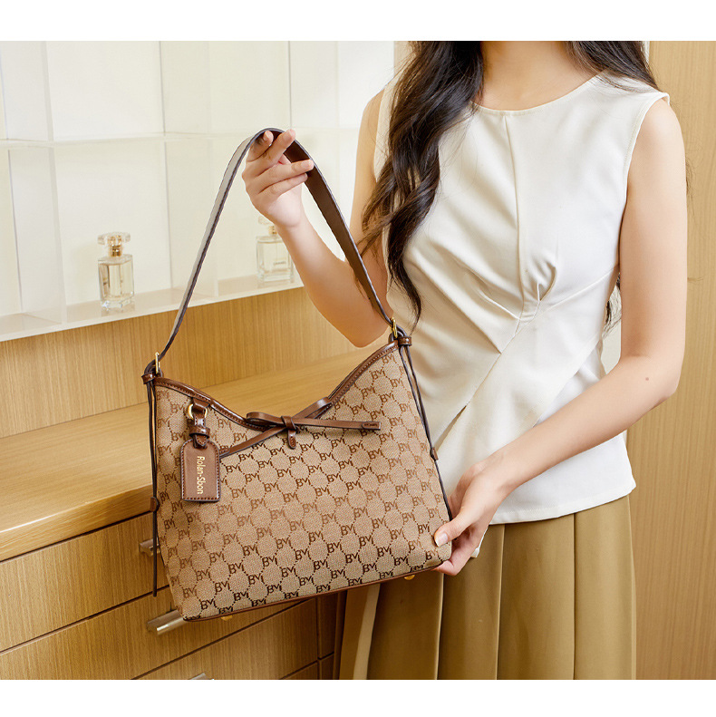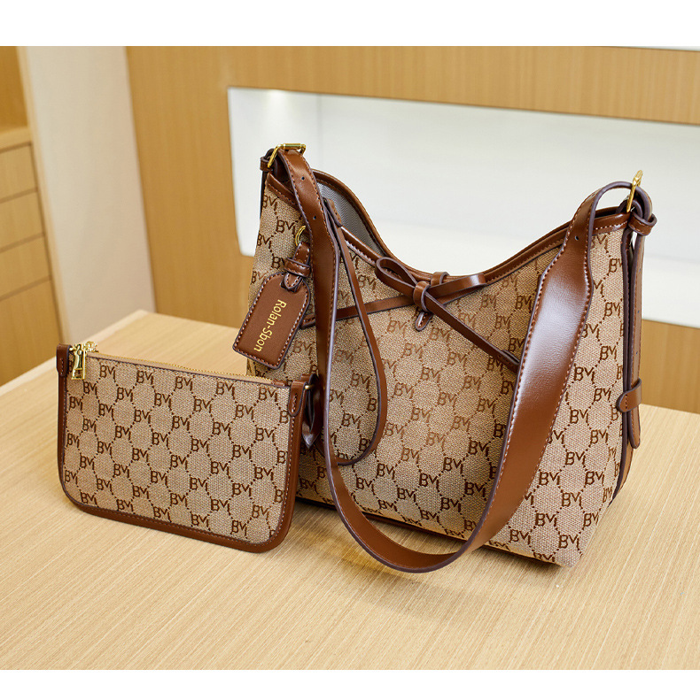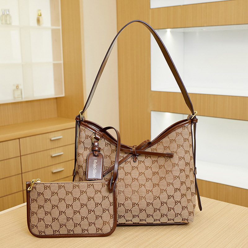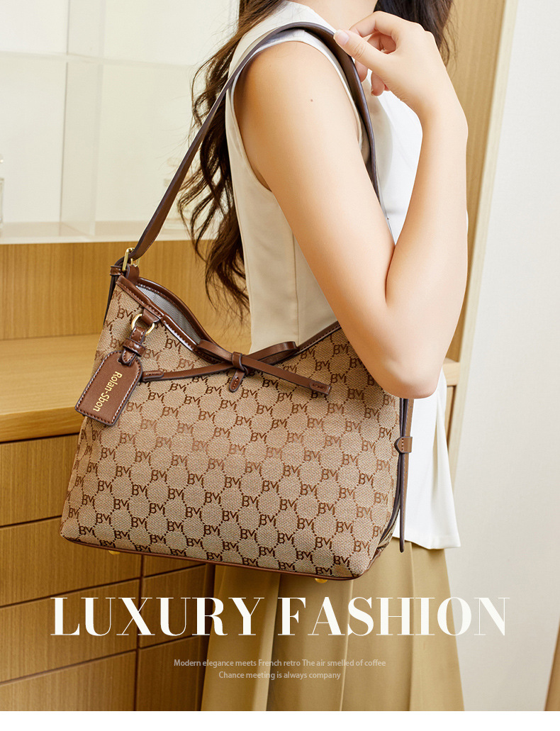 가방 여성의 2024 새로운 통근 빈티지 인쇄 된 토트 백 하이 엔드 센스 대용량 유행 어깨 크로스 바디 백