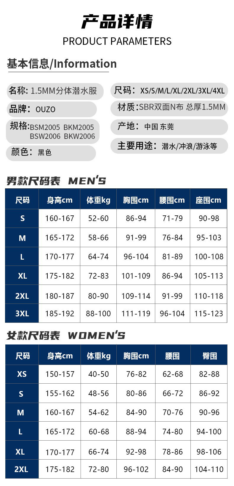 1.5mm 다이빙 세트 우조 스플릿 다이빙 세트 남녀 젖은 옷 긴팔 바지 차가운 따뜻한 태양 보호 서핑 세트스토어 가기