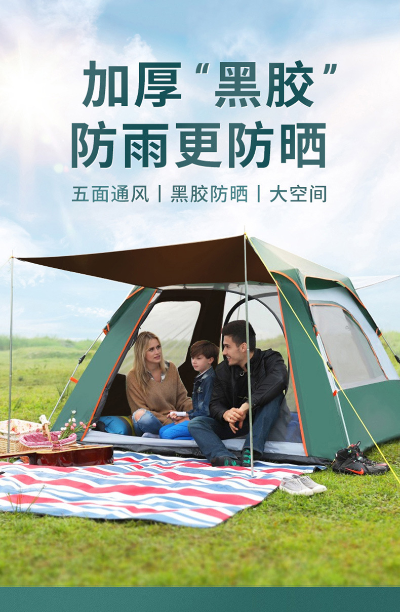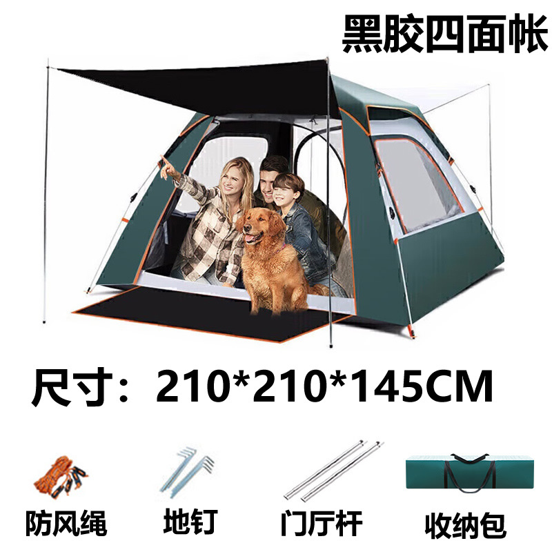 검은 고무 4 면 텐트 야외 자동 텐트 방수 안티 모기 대형 공간 야외 캠핑 텐트 세대