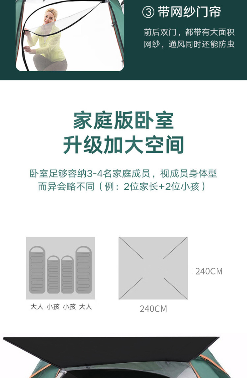 검은 고무 4 면 텐트 야외 자동 텐트 방수 안티 모기 대형 공간 야외 캠핑 텐트 세대스토어 가기