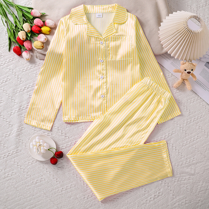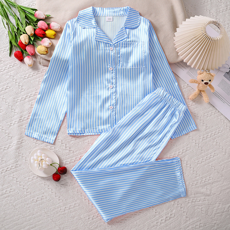 중다 어린이 홈웨어 국경 소녀 세트 2025 유럽과 미국의 봄 새로운 긴 소매 재킷 줄무늬 바지 파자마