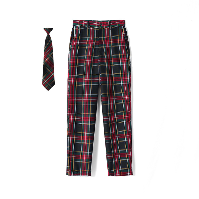• 바지(짙은 녹색 체크무늬) + 넥타이