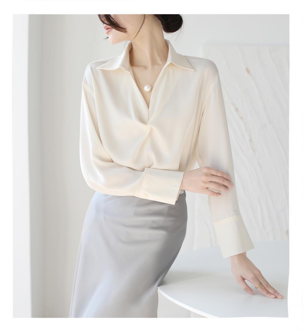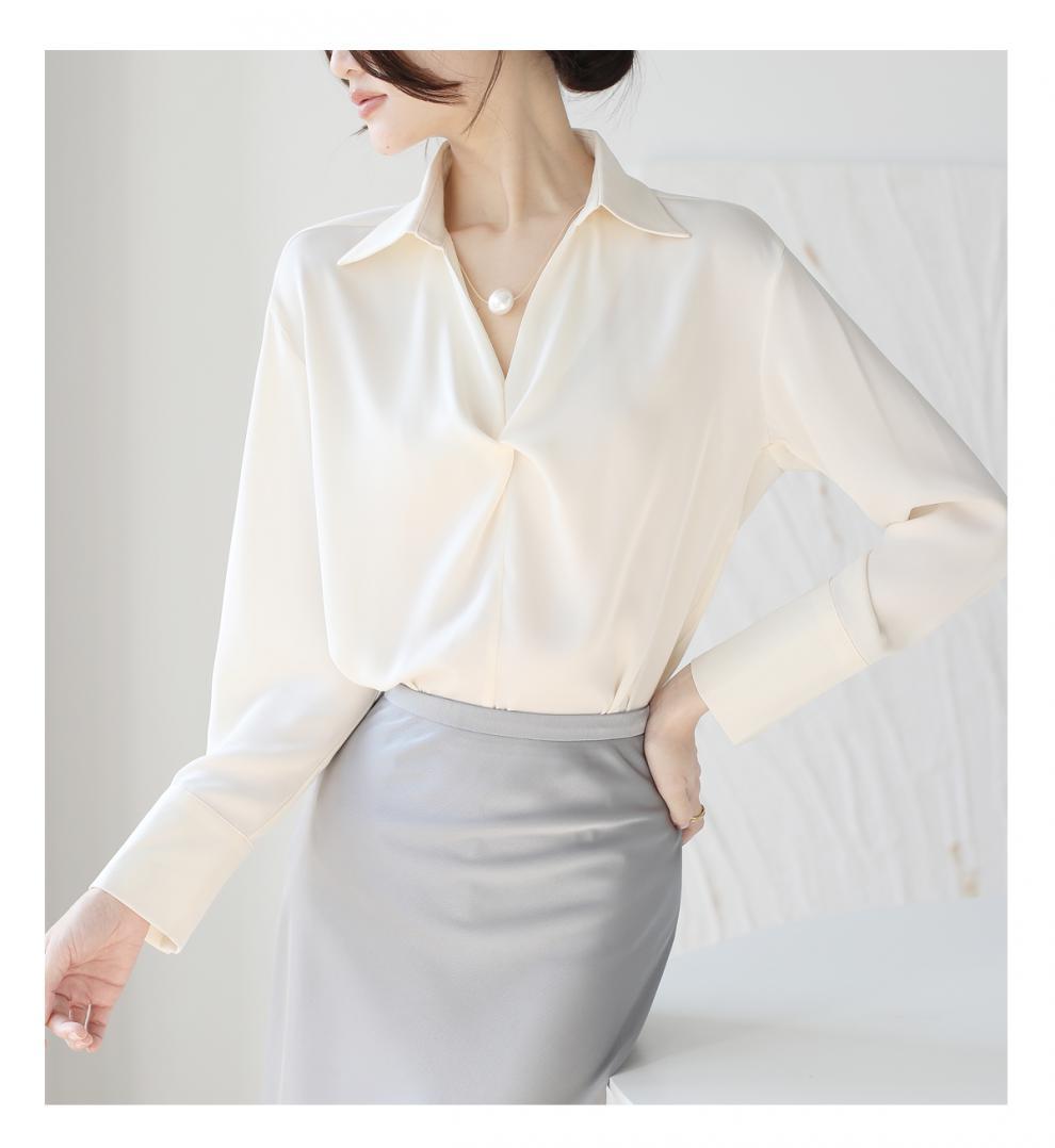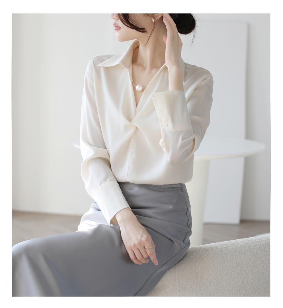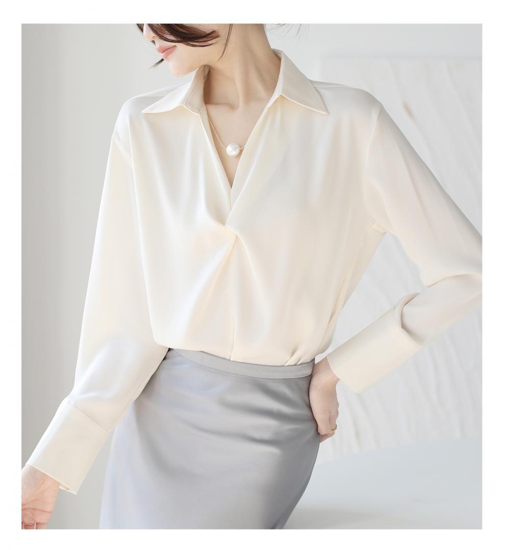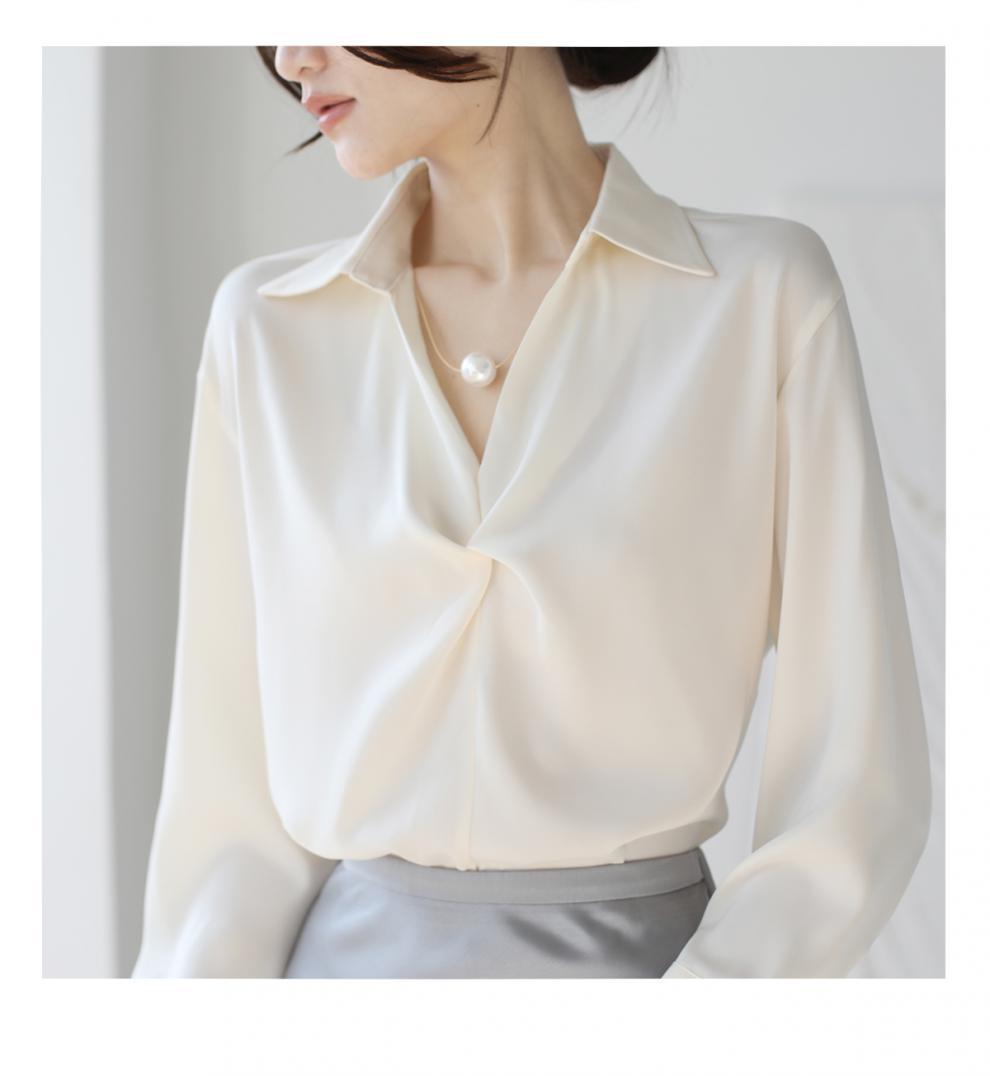 엄선된 프렌치 디자인 기질 여성용 새틴 셔츠 2025 봄 신작 통근 슬리밍 진주 목걸이 전문가용스토어 가기