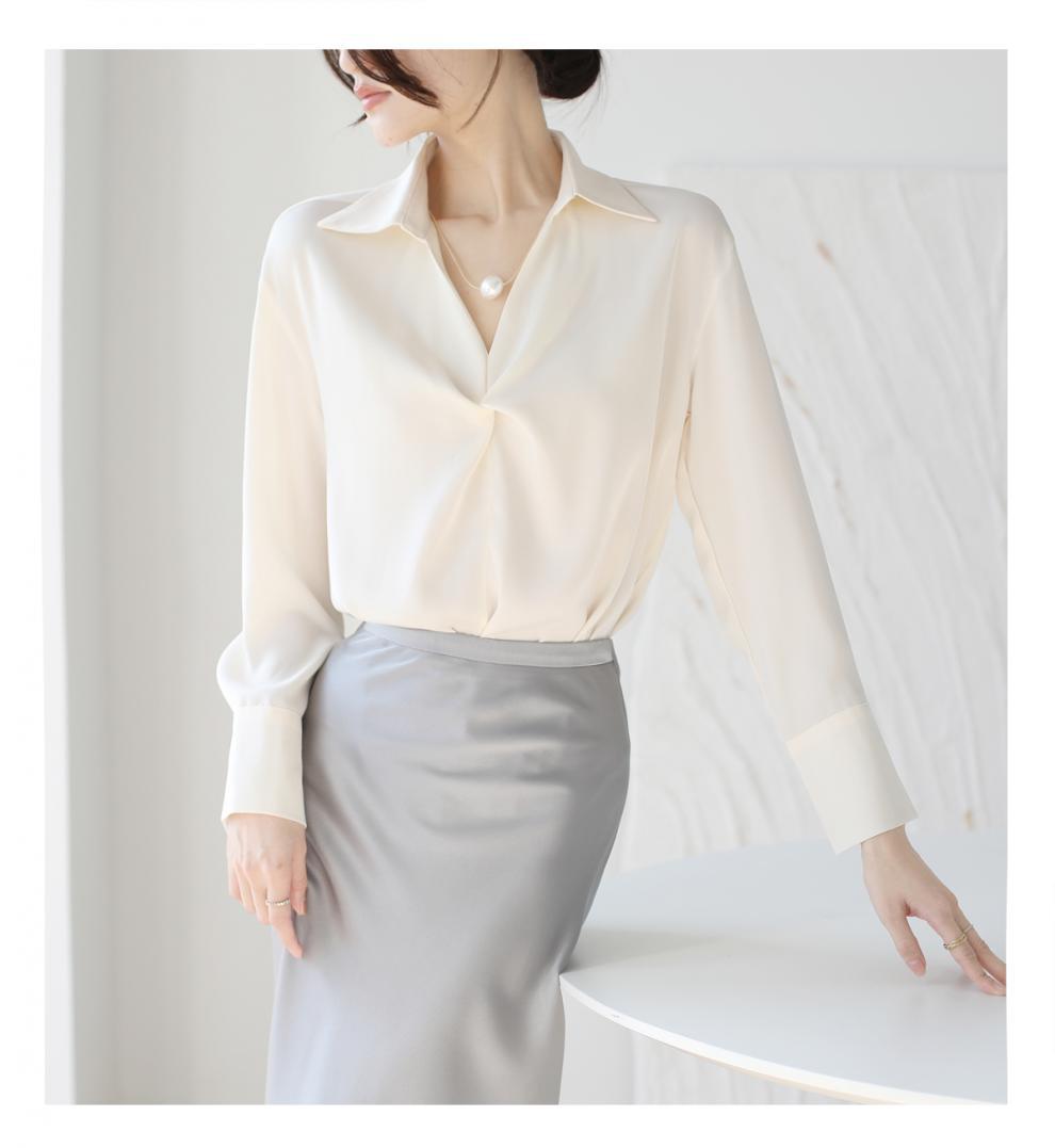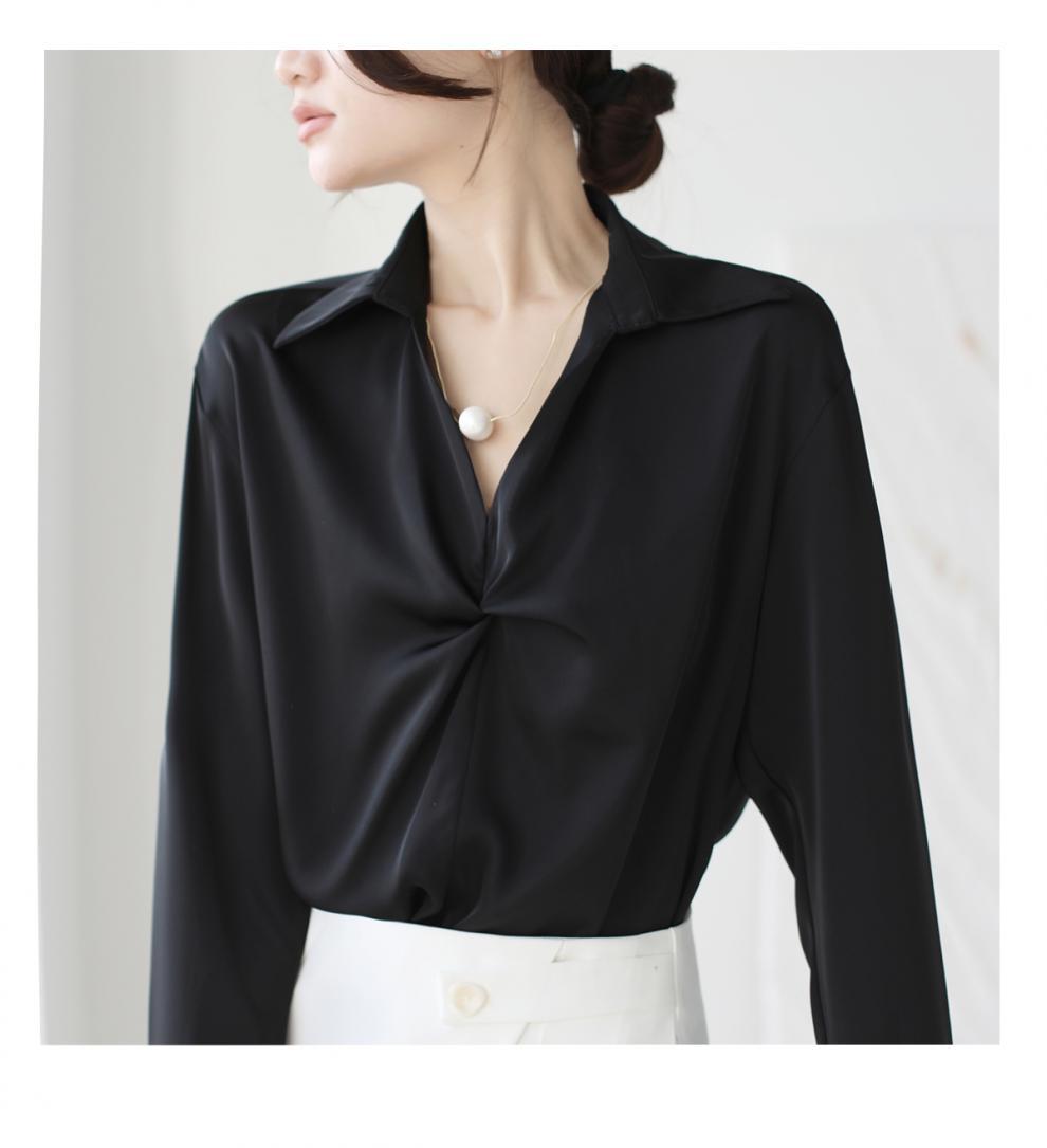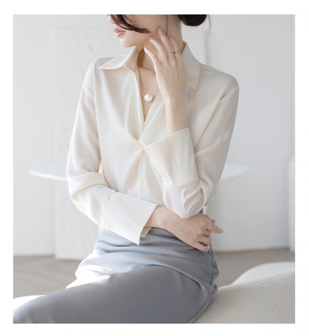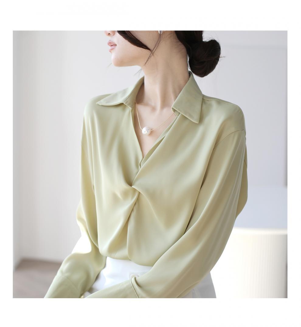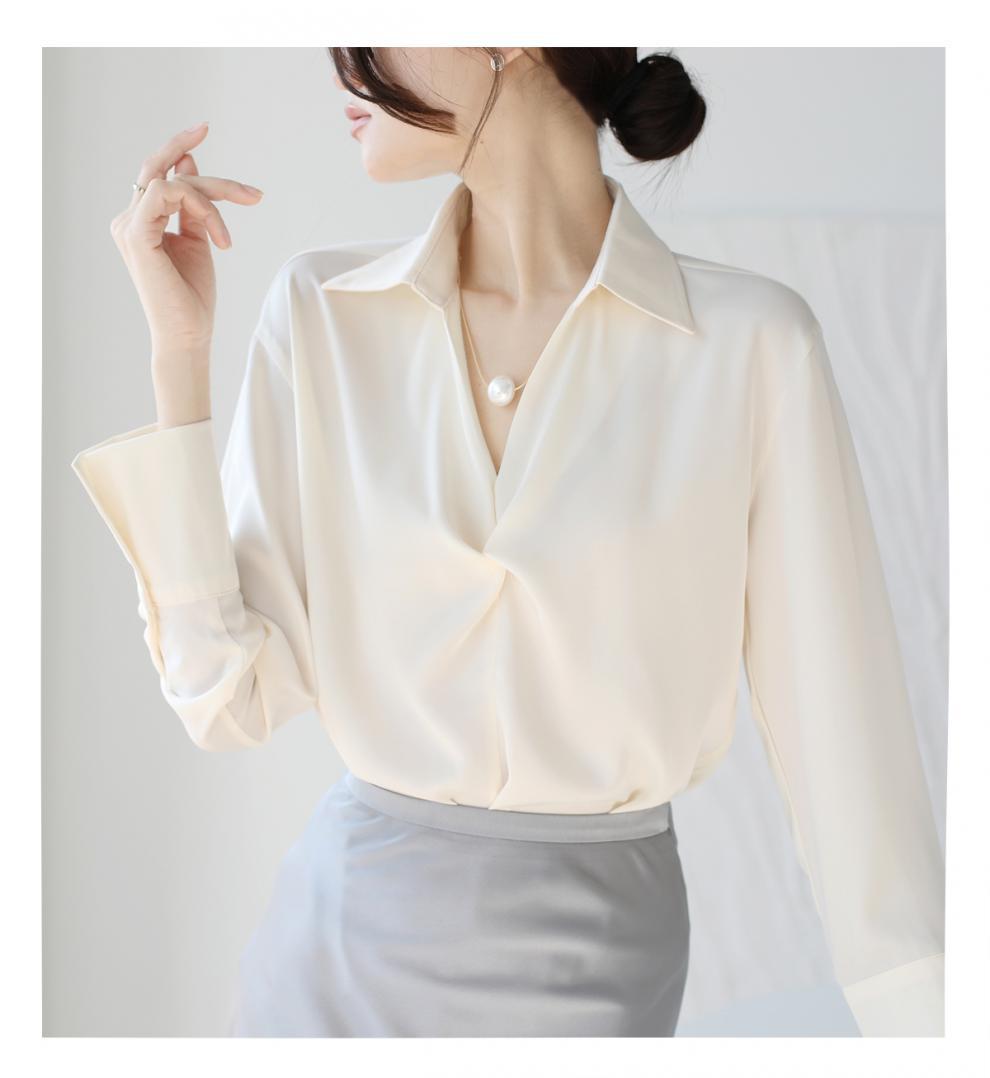 엄선된 프렌치 디자인 기질 여성용 새틴 셔츠 2025 봄 신작 통근 슬리밍 진주 목걸이 전문가용스토어 가기