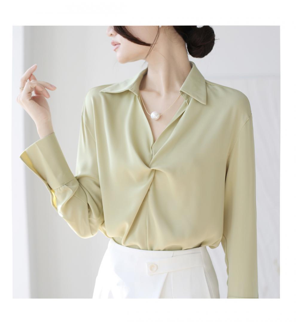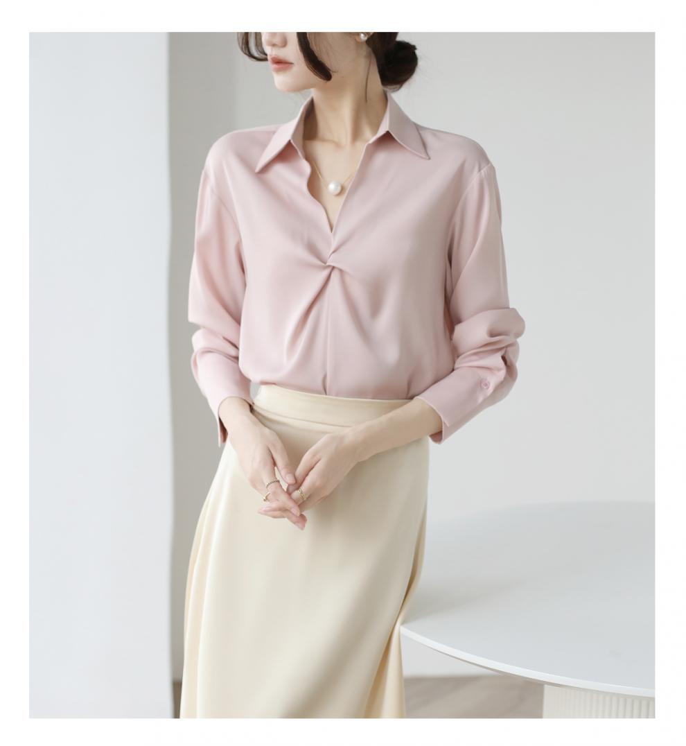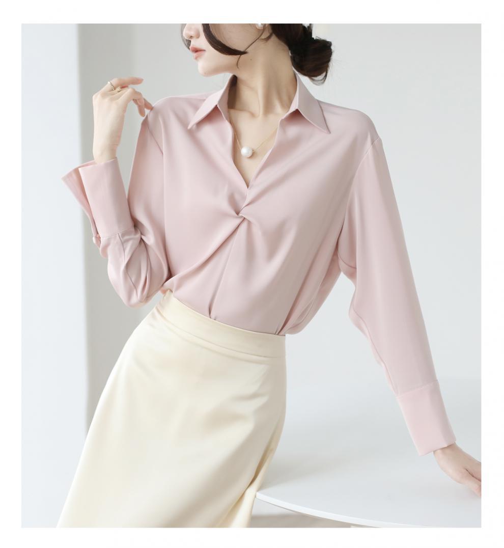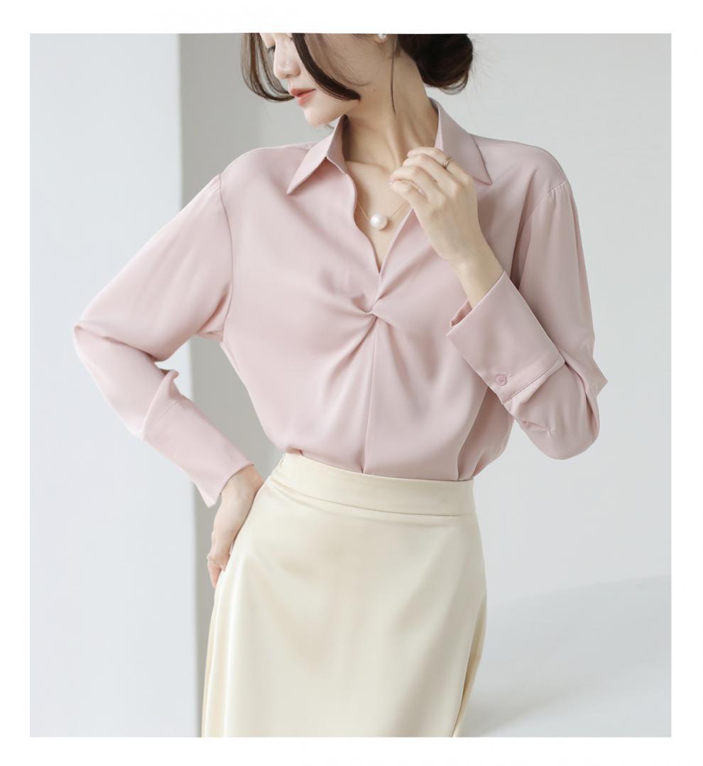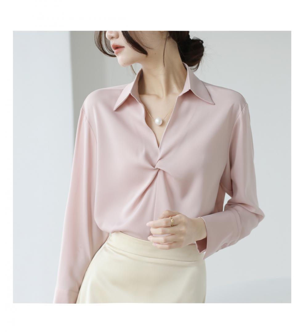 엄선된 프렌치 디자인 기질 여성용 새틴 셔츠 2025 봄 신작 통근 슬리밍 진주 목걸이 전문가용스토어 가기