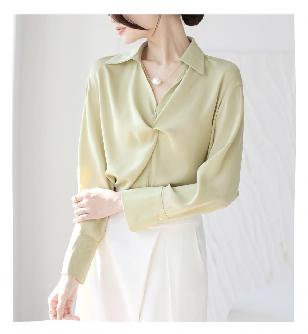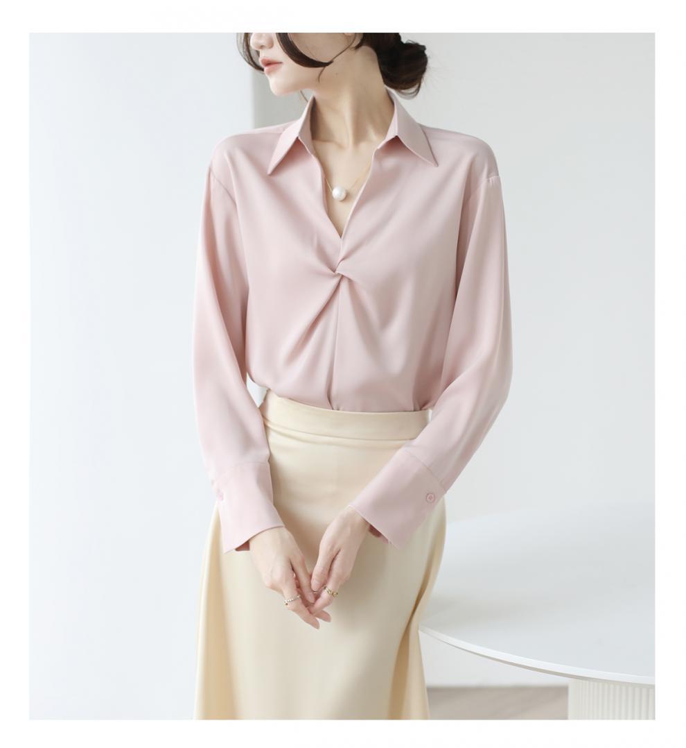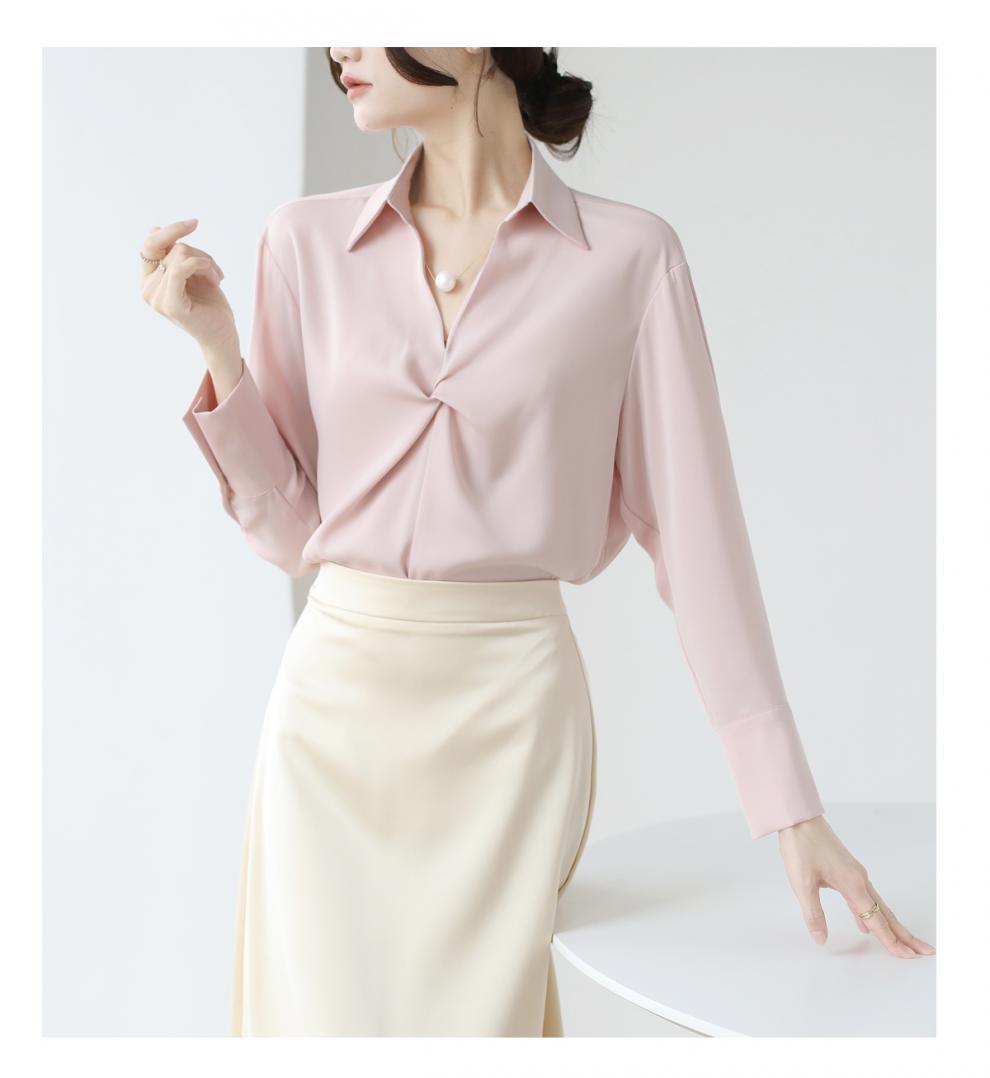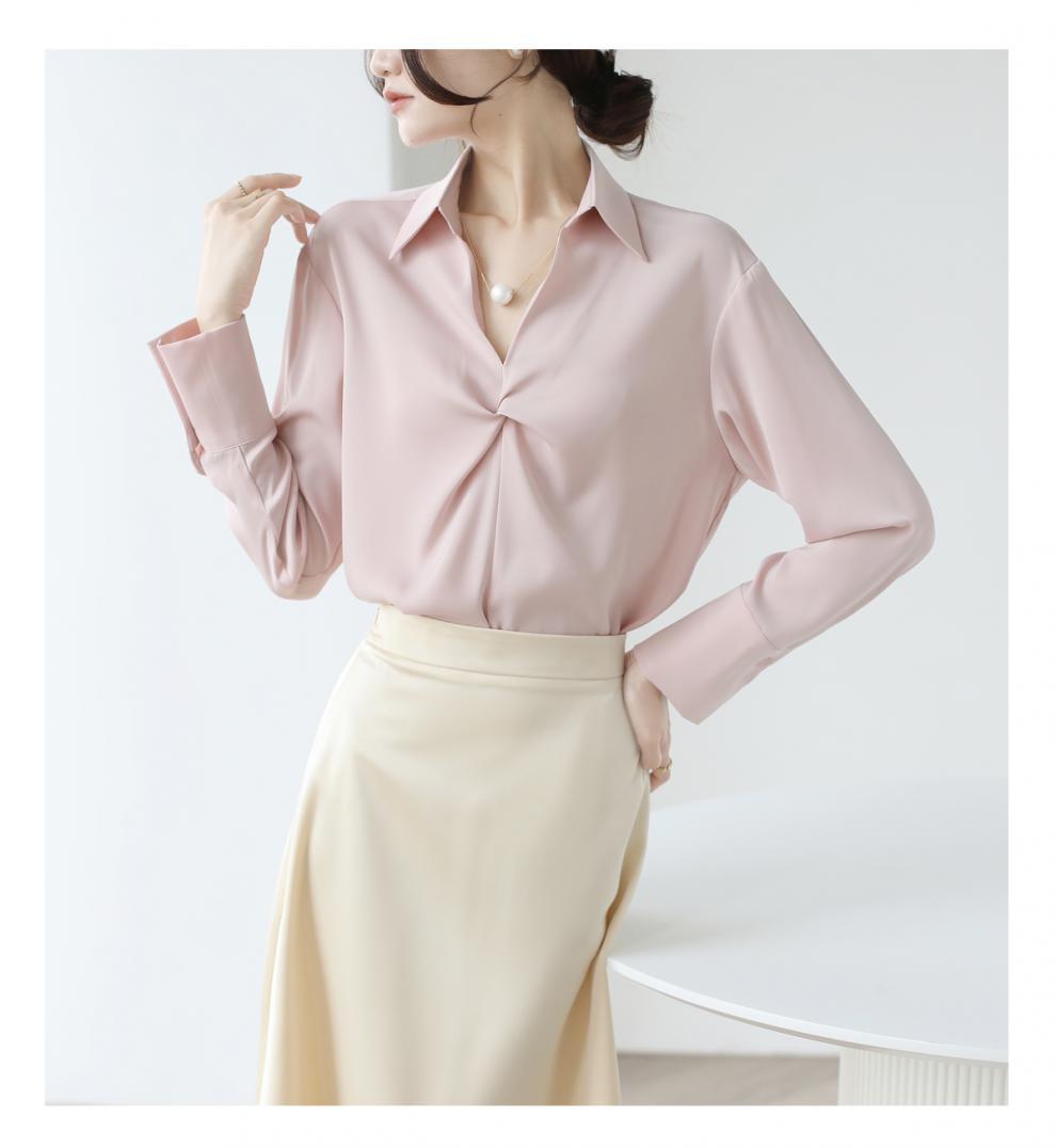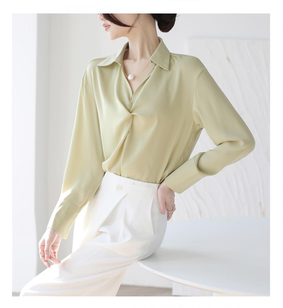 엄선된 프렌치 디자인 기질 여성용 새틴 셔츠 2025 봄 신작 통근 슬리밍 진주 목걸이 전문가용스토어 가기