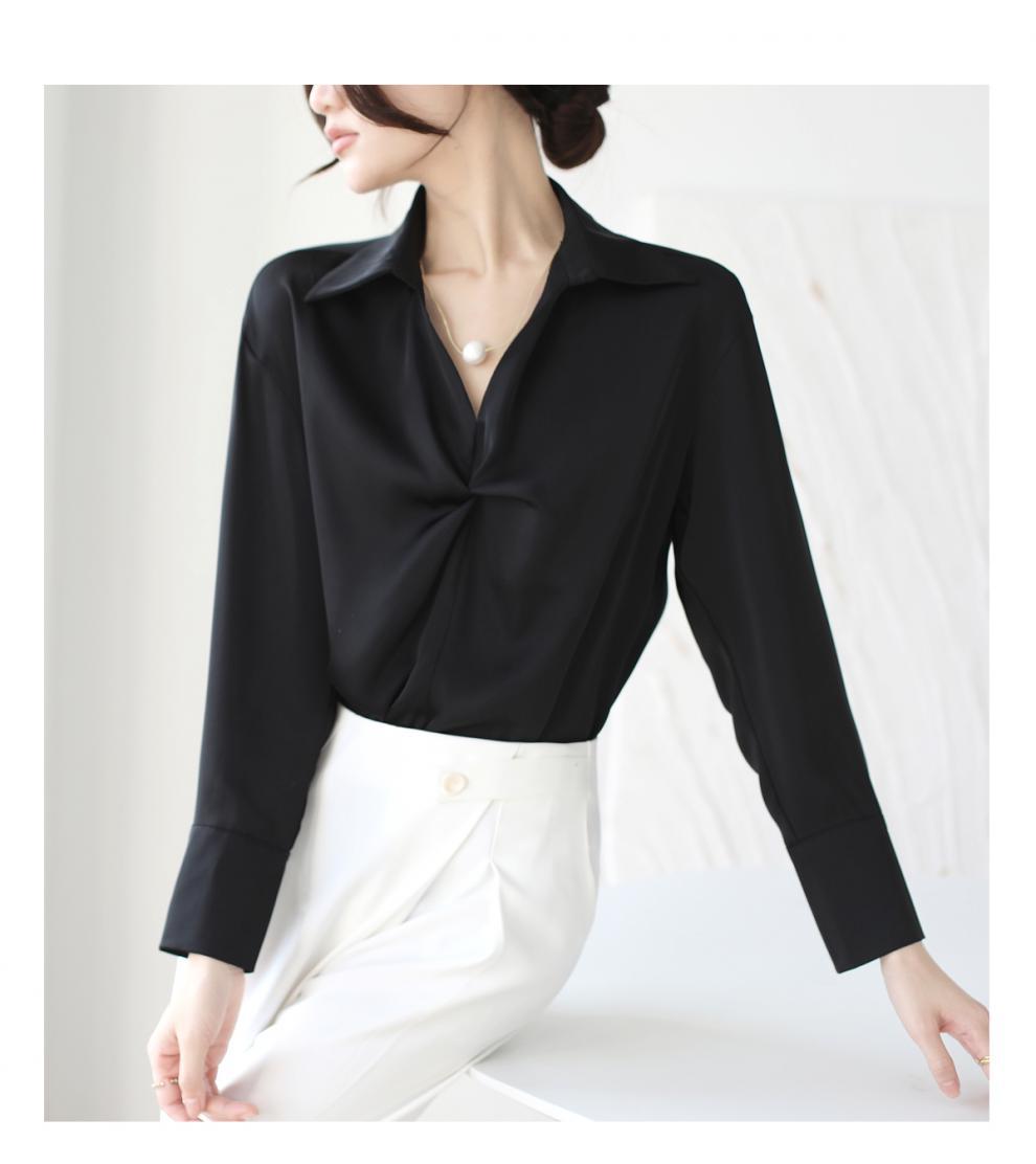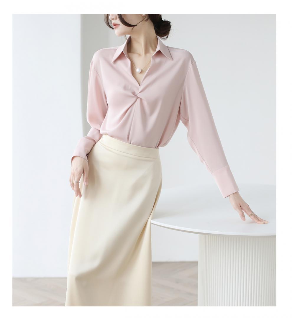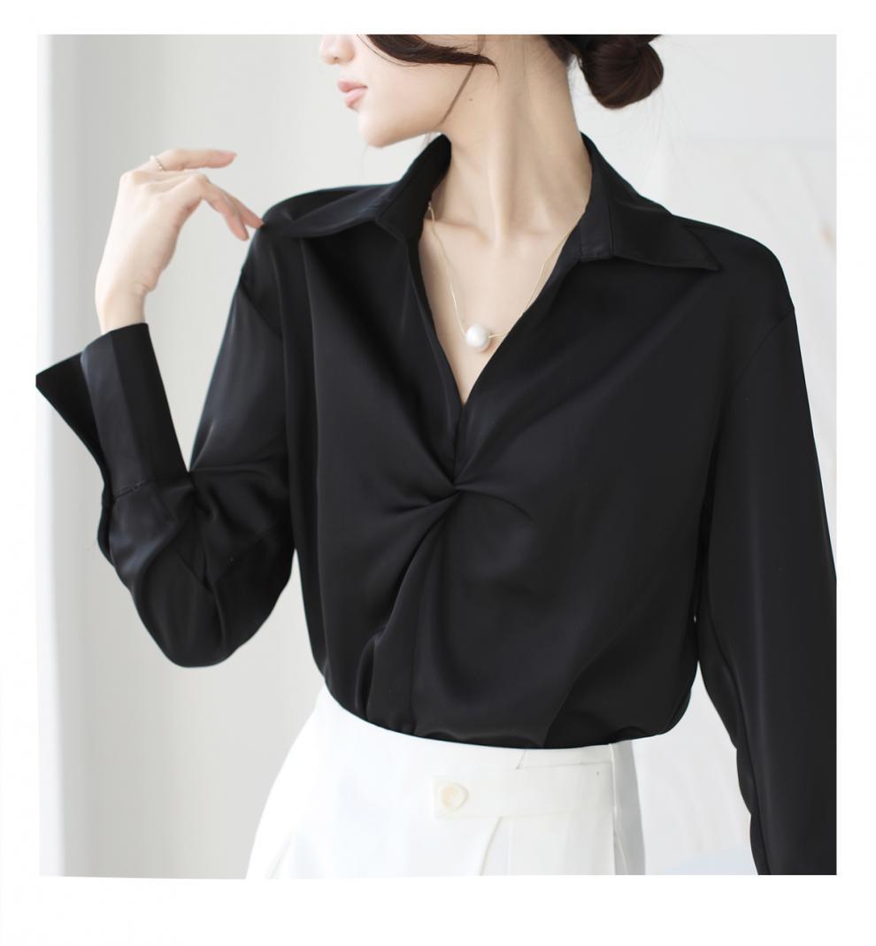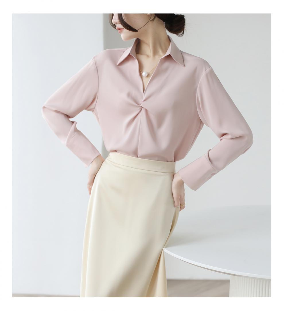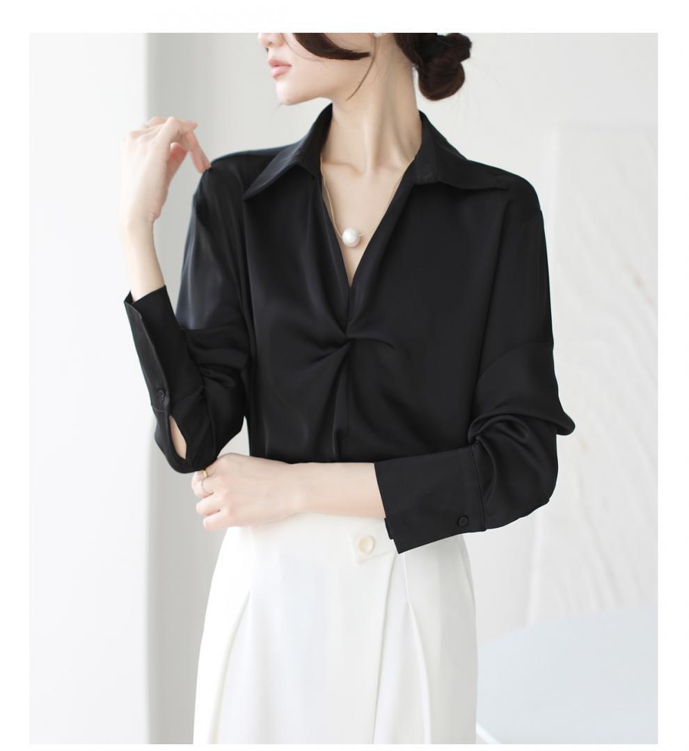 엄선된 프렌치 디자인 기질 여성용 새틴 셔츠 2025 봄 신작 통근 슬리밍 진주 목걸이 전문가용스토어 가기