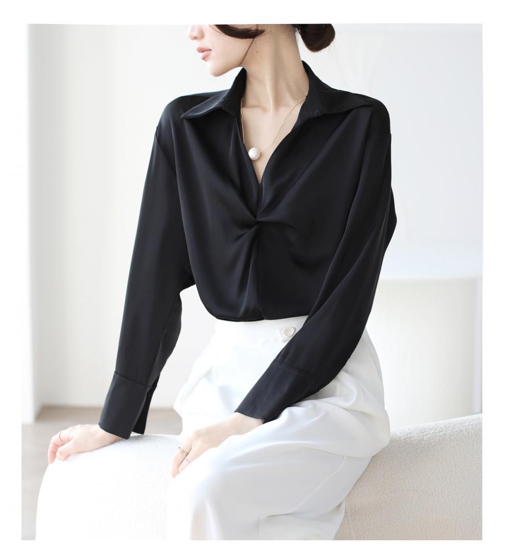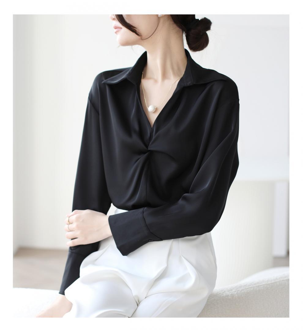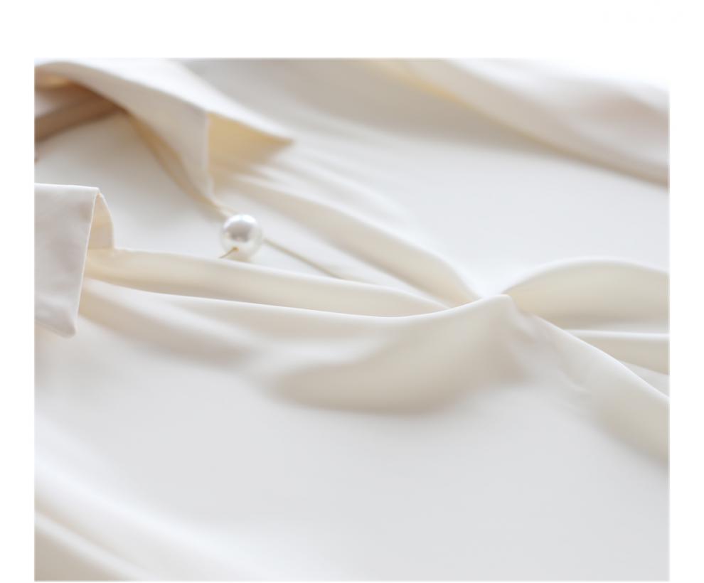 엄선된 프렌치 디자인 기질 여성용 새틴 셔츠 2025 봄 신작 통근 슬리밍 진주 목걸이 전문가용