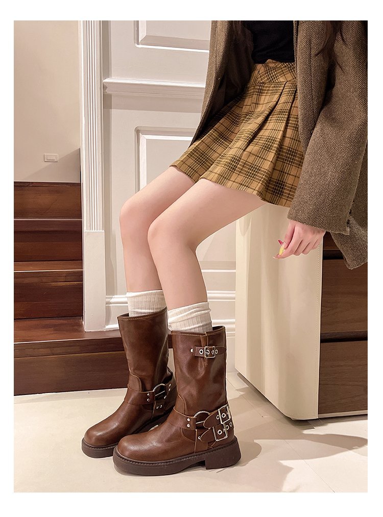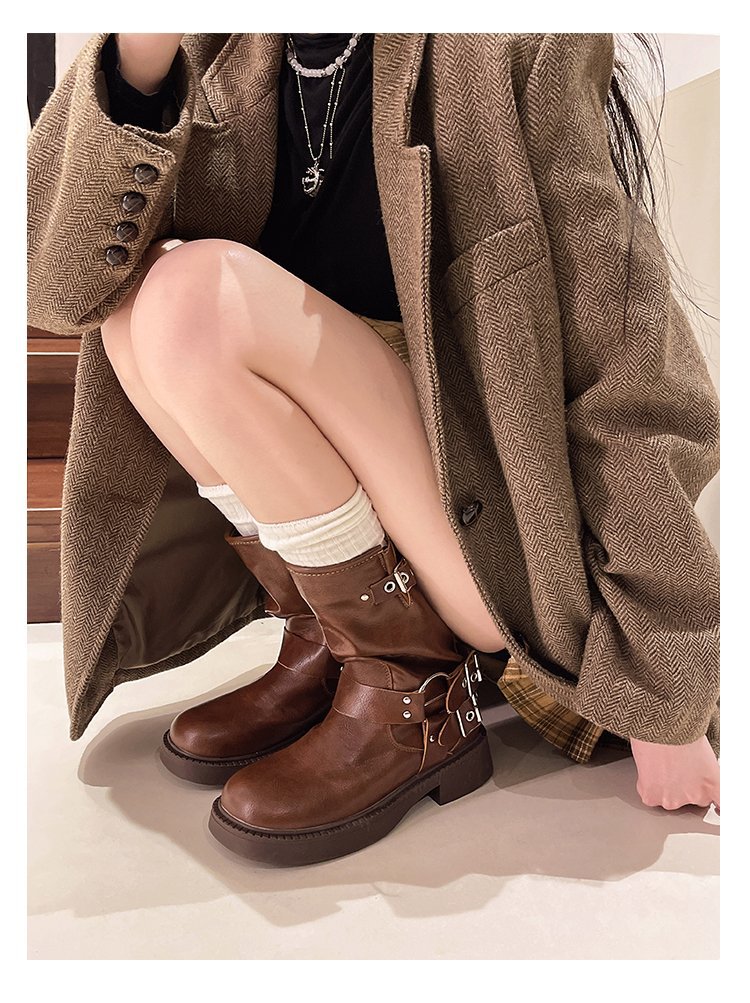 [셰이이 수 이닌] Mengling 같은 모델 ~ Amiu 가죽 중고 서부 카우보이 부츠 기사 부츠