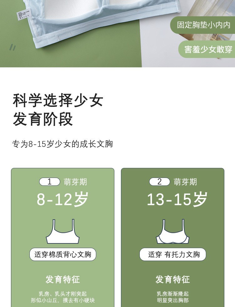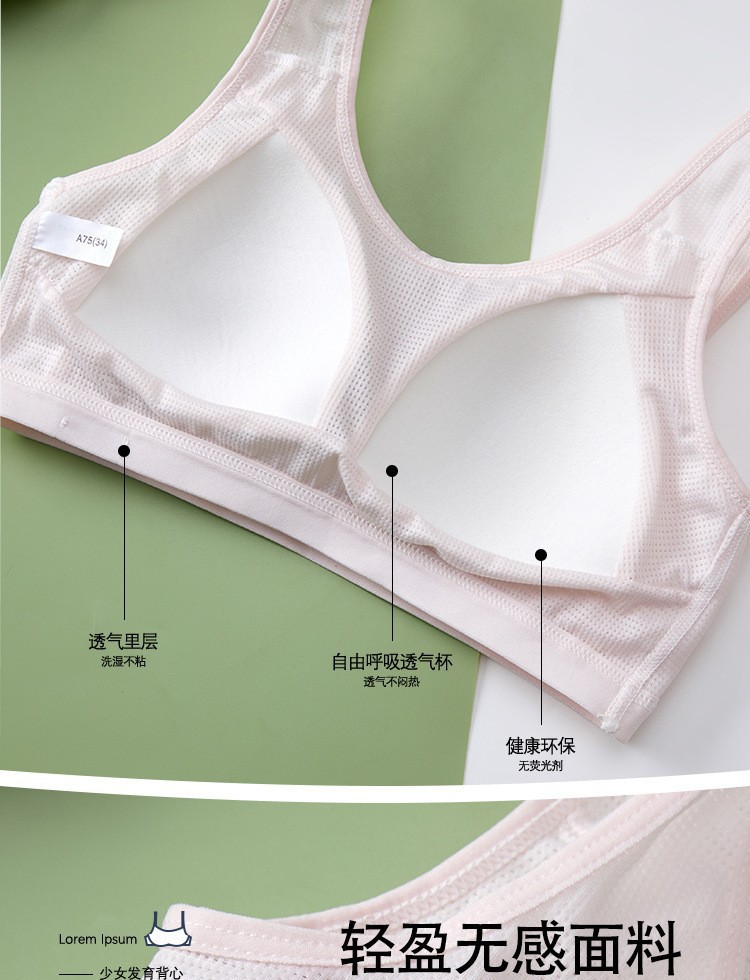 발달기 소녀 속옷 고정 일체형 컵 스포츠 브라 통기성 메쉬 소녀 및 여학생 노출 방지 조끼스토어 가기