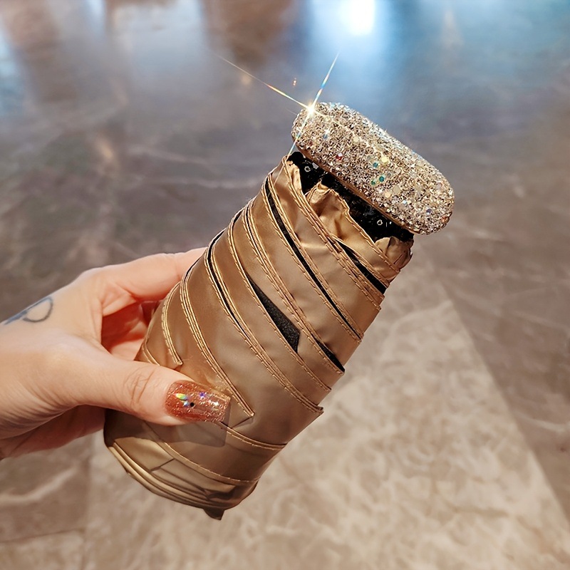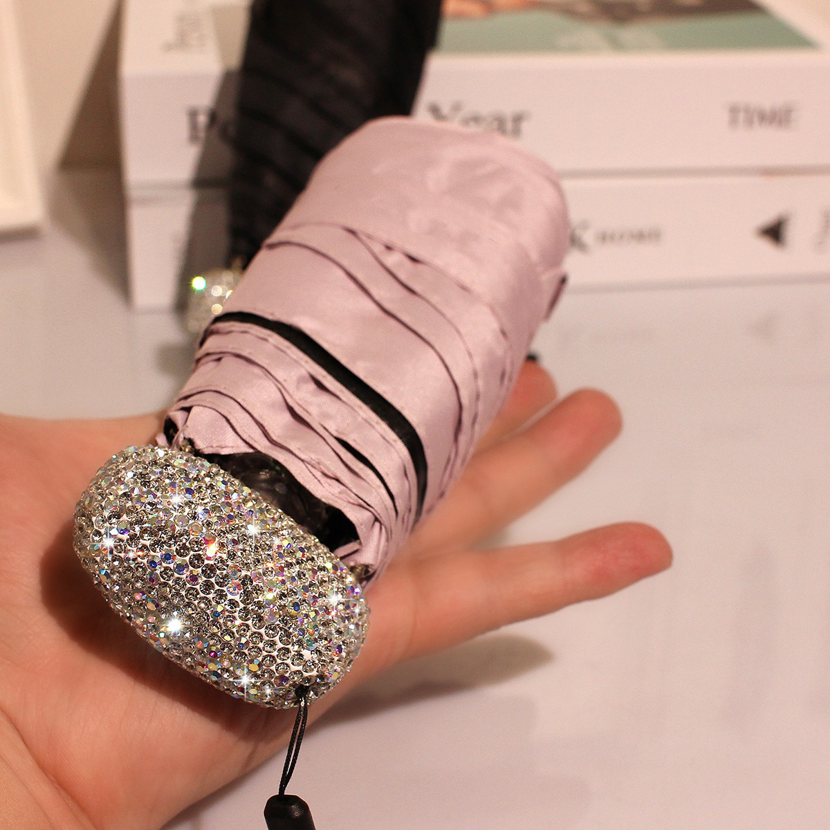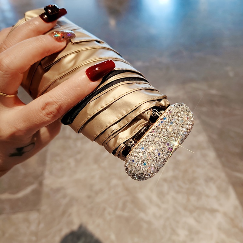 높은 가격의 자외선 차단제 UV 보호 이중층 태양 우산 빛 고급 다이아몬드가 박힌 이중 목적 차양 우산 검은 고무 접이식 우산스토어 가기