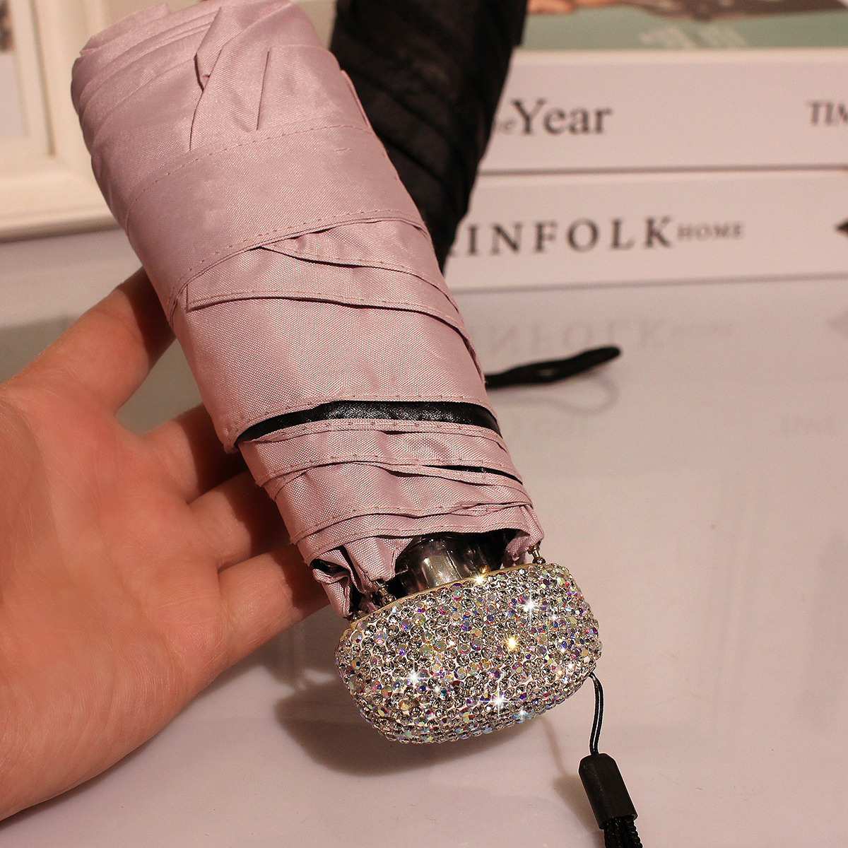 • 다이아몬드가 박힌 작은 우산: 핑크