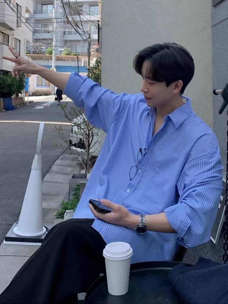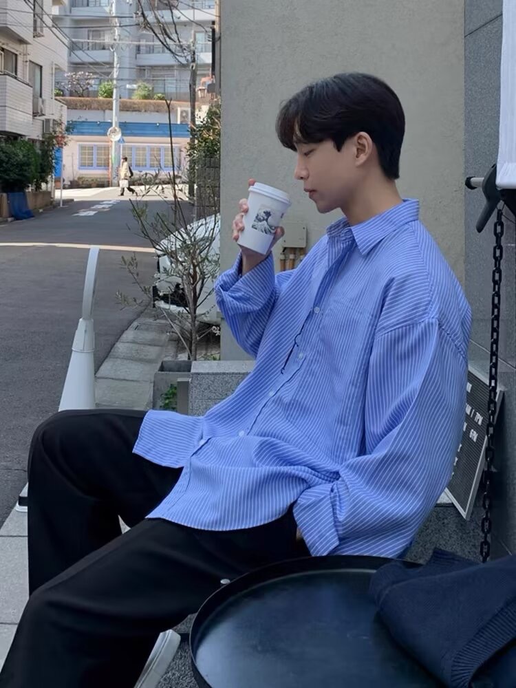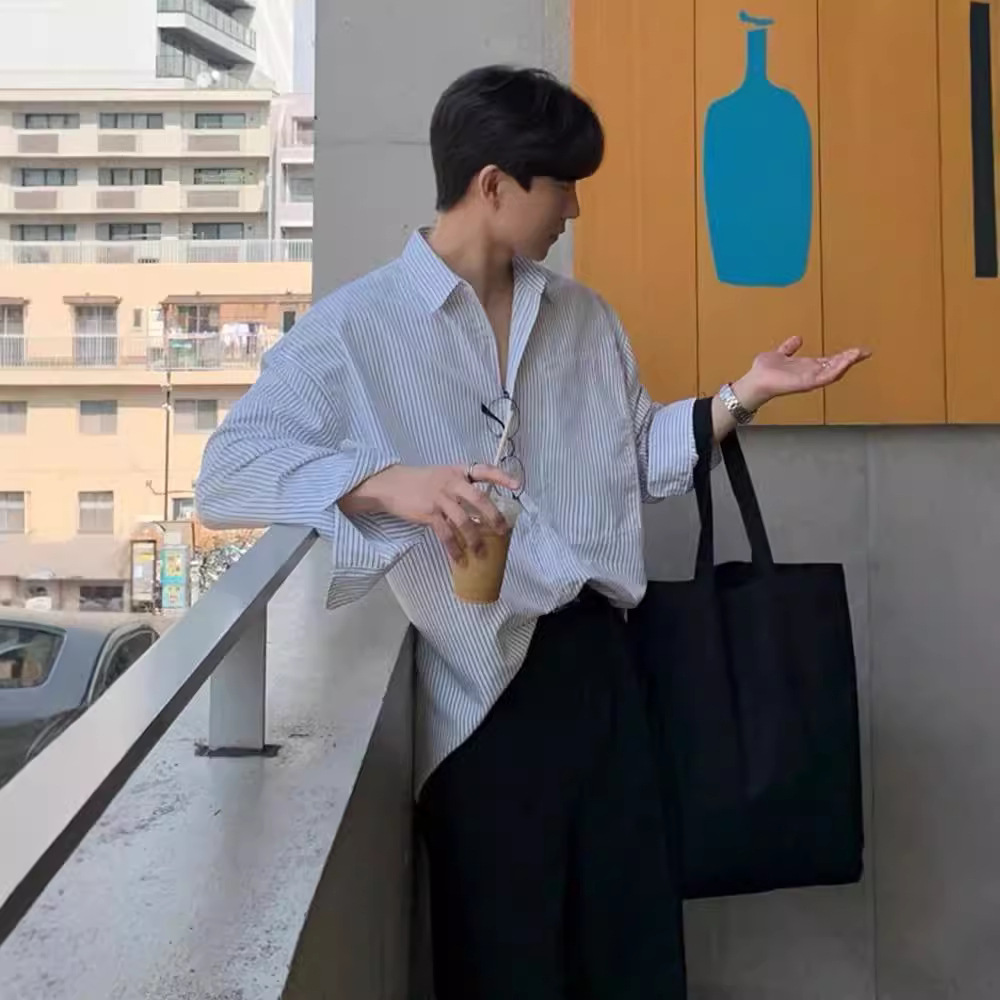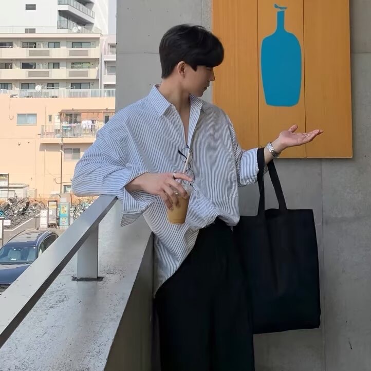 2024 레트로 셔츠 남자 여름 홍콩 스타일 학생 느슨한 틈새 디자인 감각 재미있는 새로운 남성 탑스토어 가기
