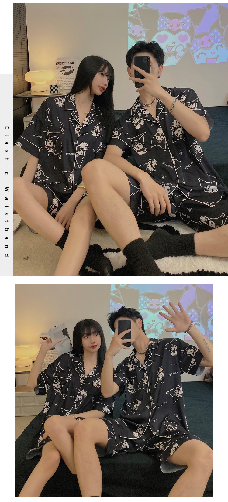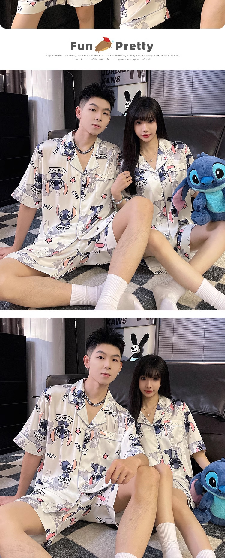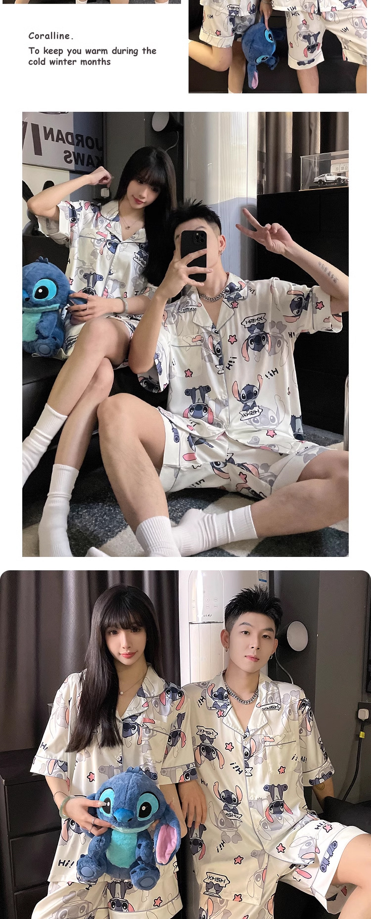 새로운 커플 잠옷 여성 여름 아이스 실크 하이 엔드 반팔 인터넷 인기 스타일 남성 홈 의류 세트 여성 여름스토어 가기