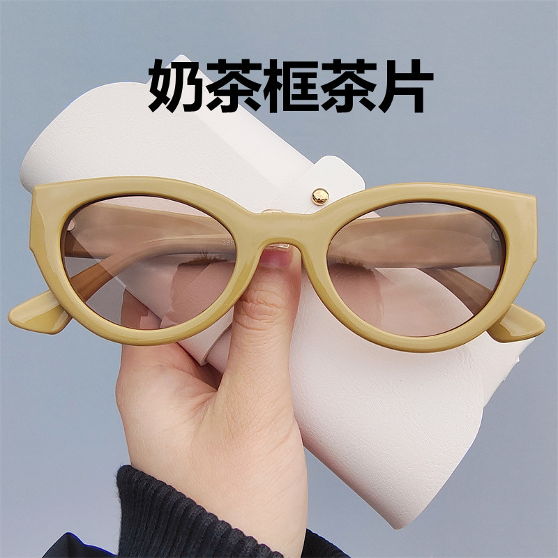여성을위한 복고풍 패션 선글라스 여름 태양 보호 2024 남성용 새로운 타원형 고양이 눈 자외선 방지 선글라스스토어 가기