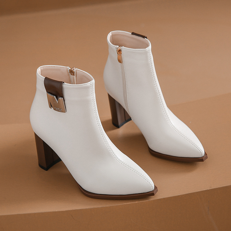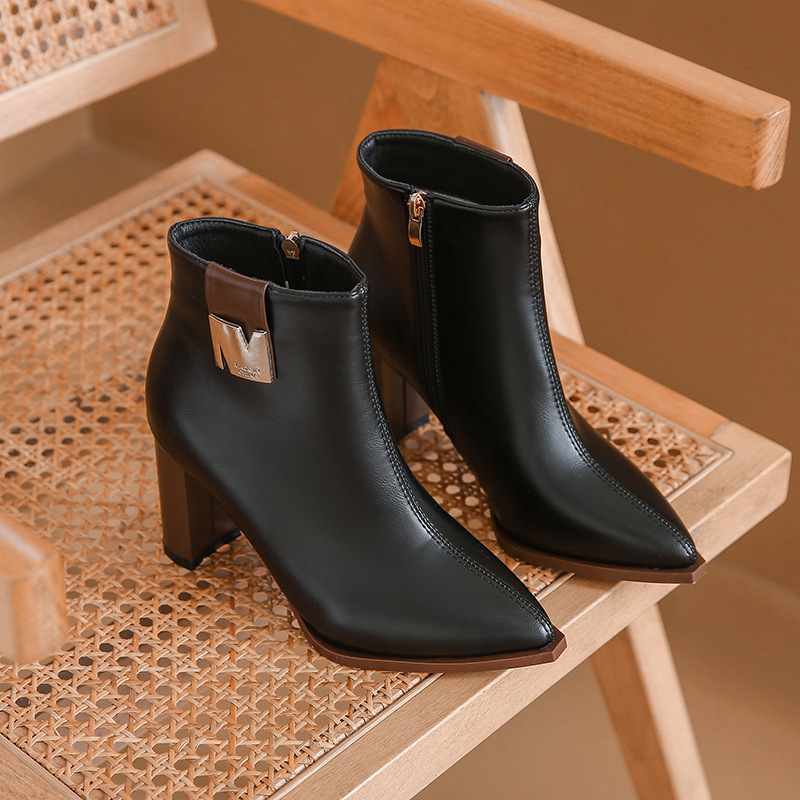대외 무역 가죽 부츠 도매 2024 가을 새로운 패션 부츠 첼시 누드 부츠 뾰족한 금속 장식 하이힐 짧은 부츠 여성스토어 가기