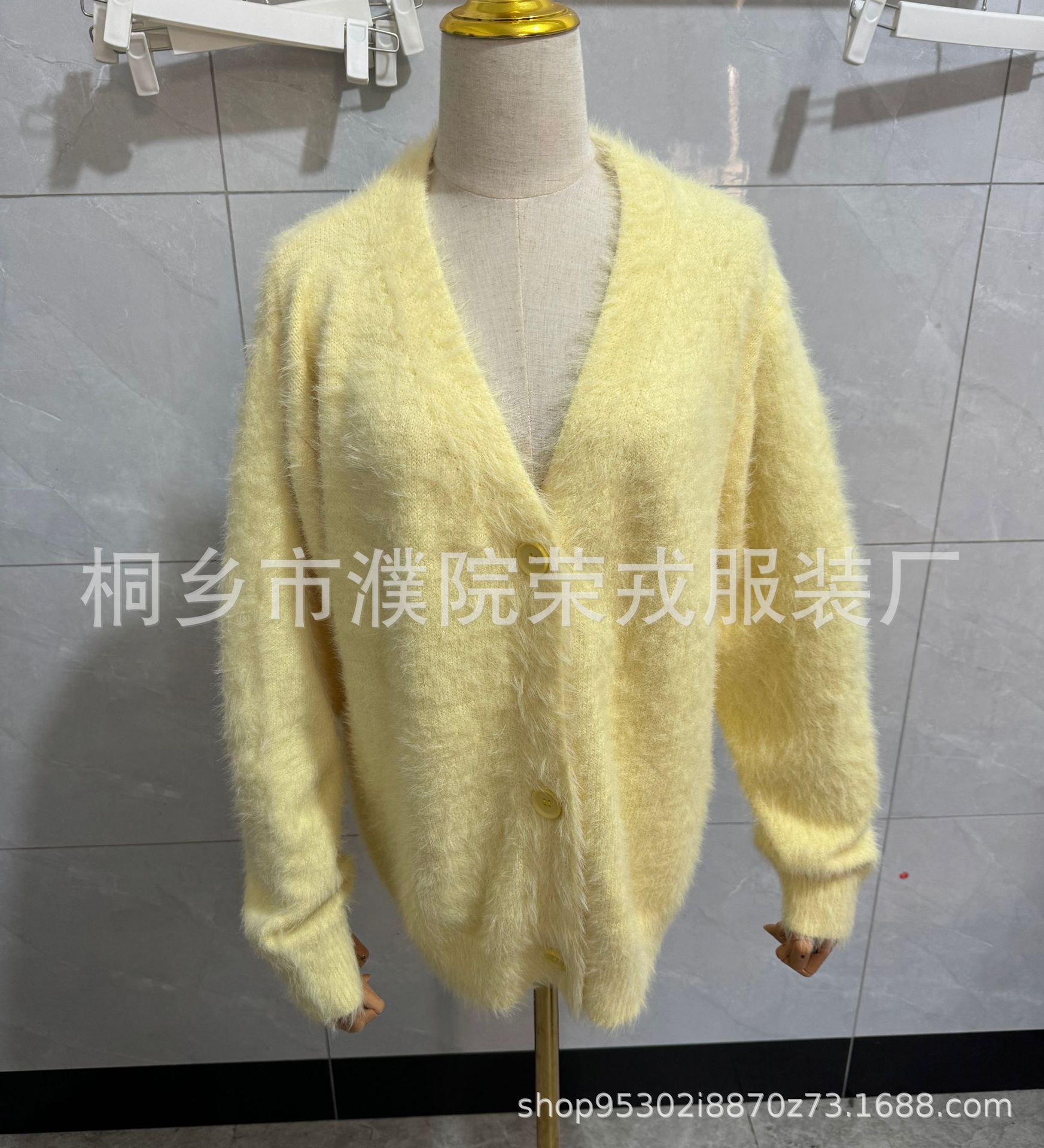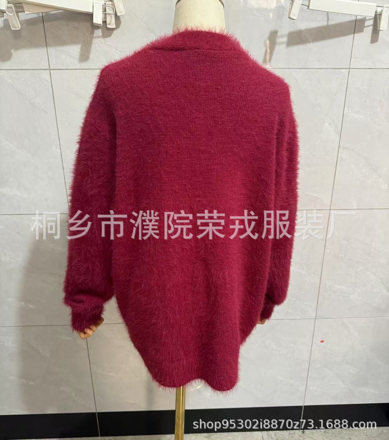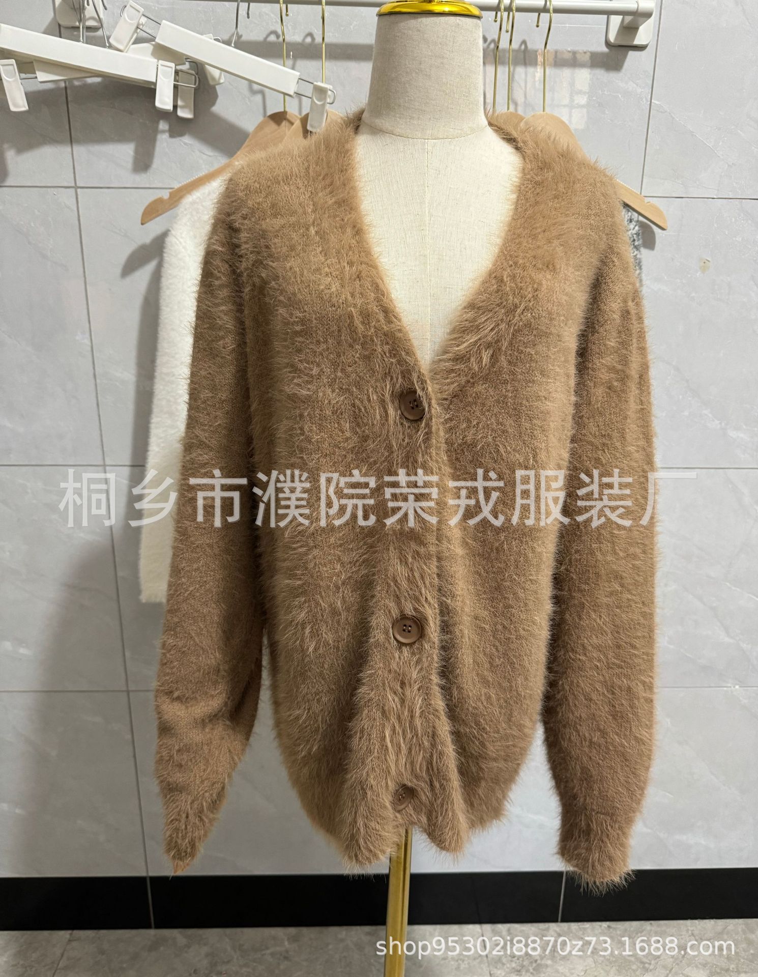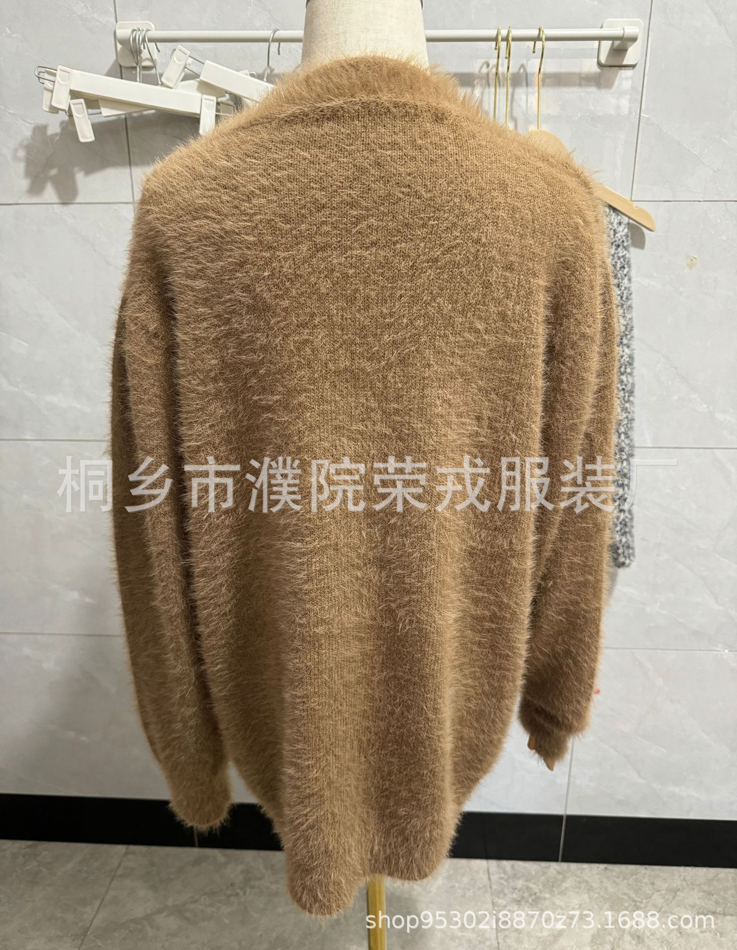 국경 간 모조 밍크 울 니트 스웨터 카디건 유럽과 미국 2025 가을과 겨울 게으른 느슨한 긴 소매 V 넥 스웨터 코트스토어 가기