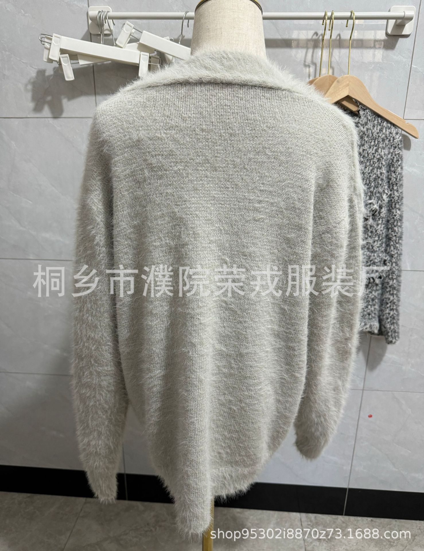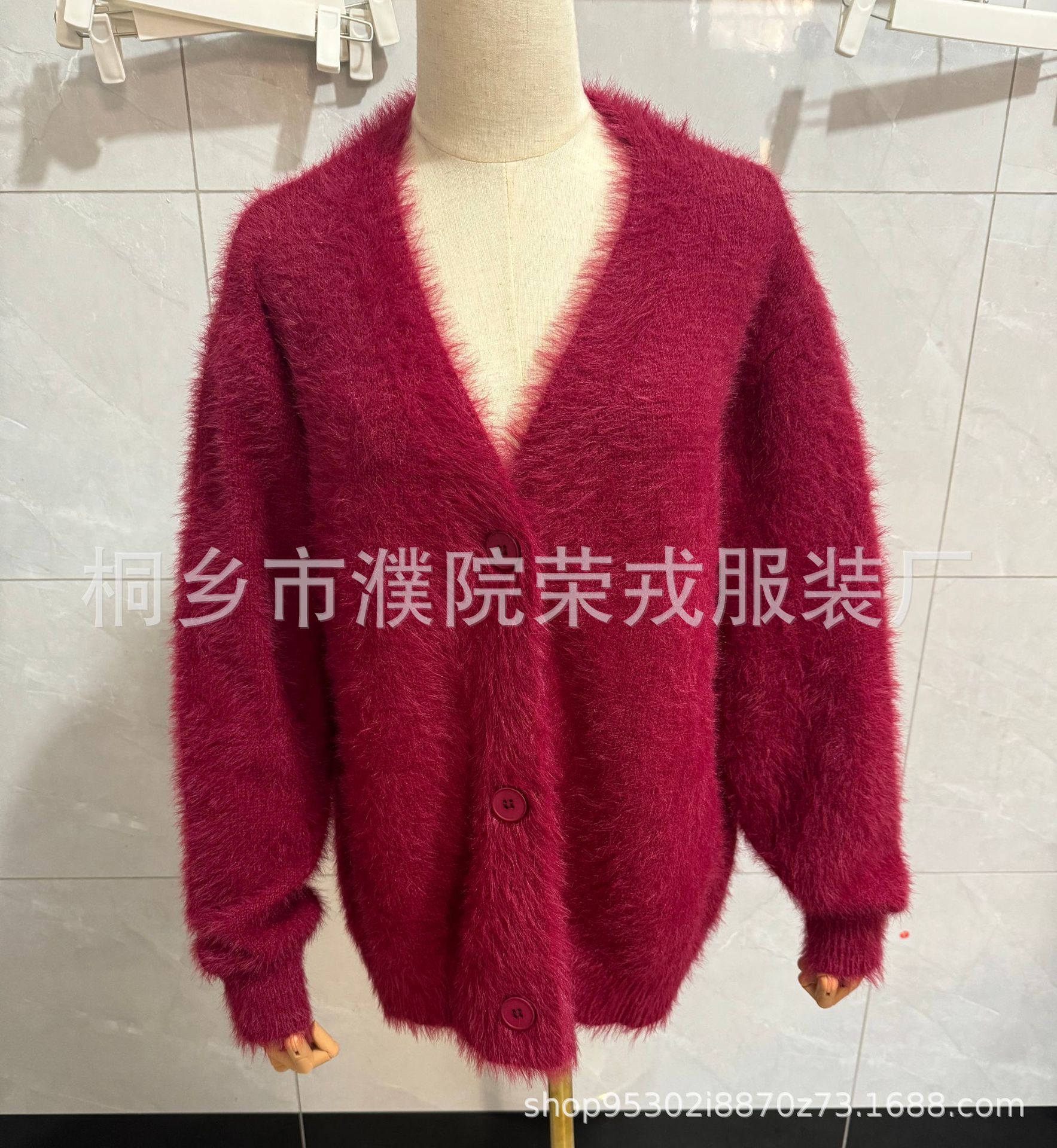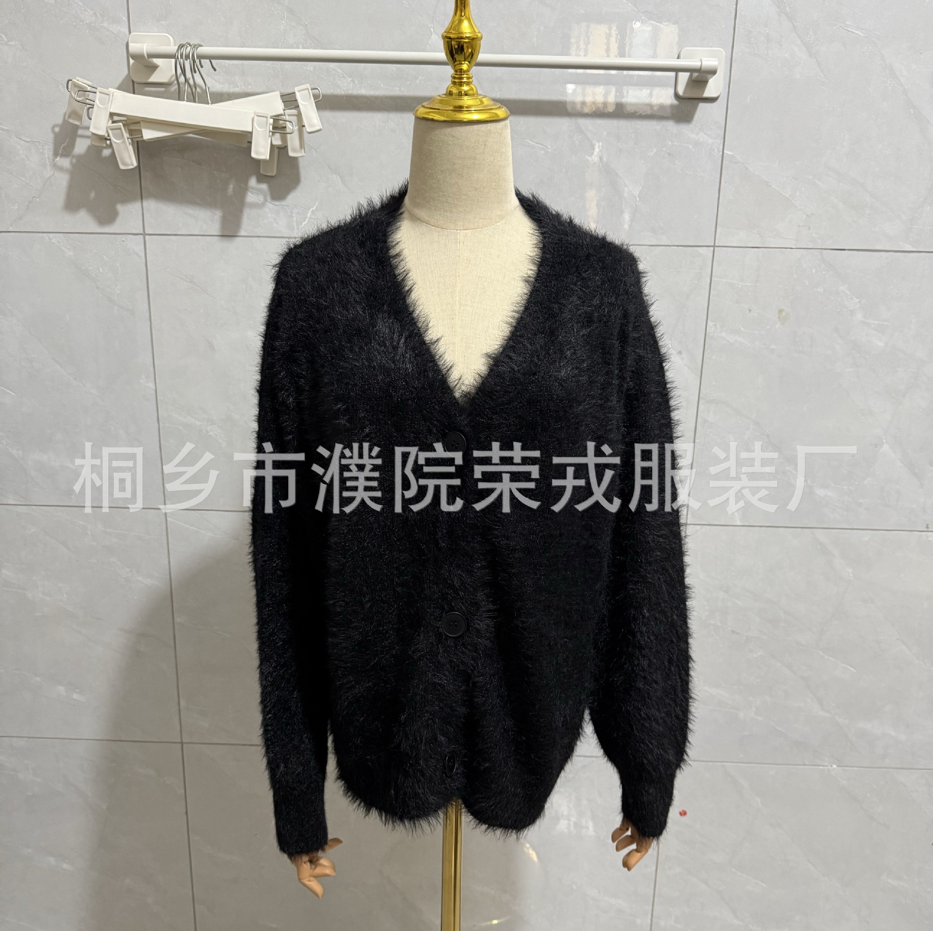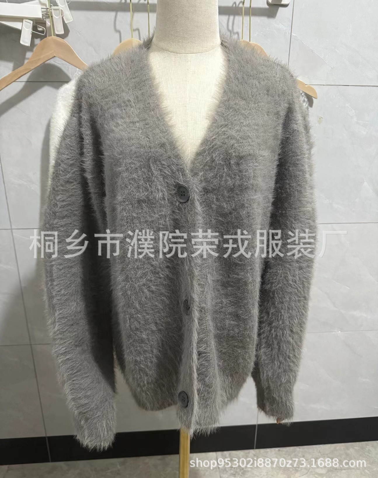 국경 간 모조 밍크 울 니트 스웨터 카디건 유럽과 미국 2025 가을과 겨울 게으른 느슨한 긴 소매 V 넥 스웨터 코트스토어 가기