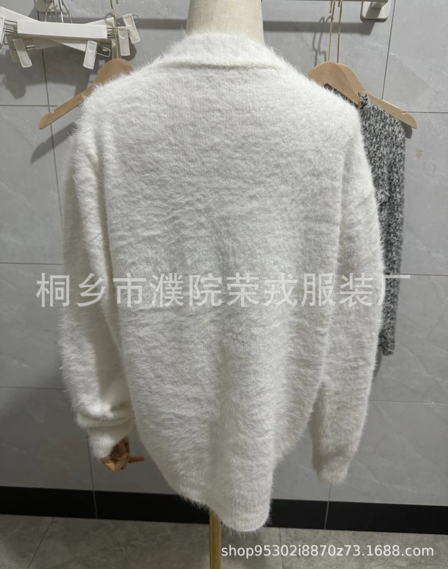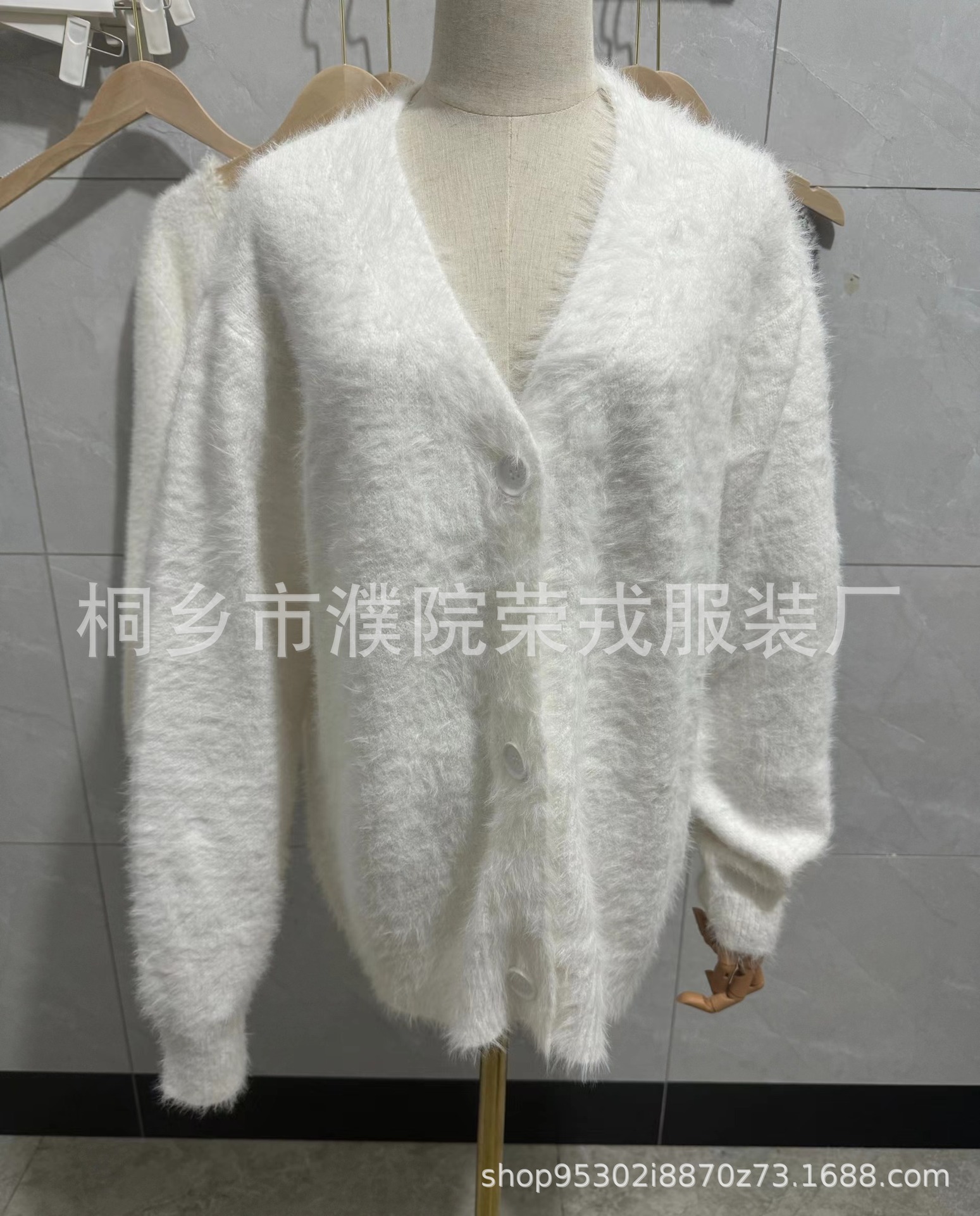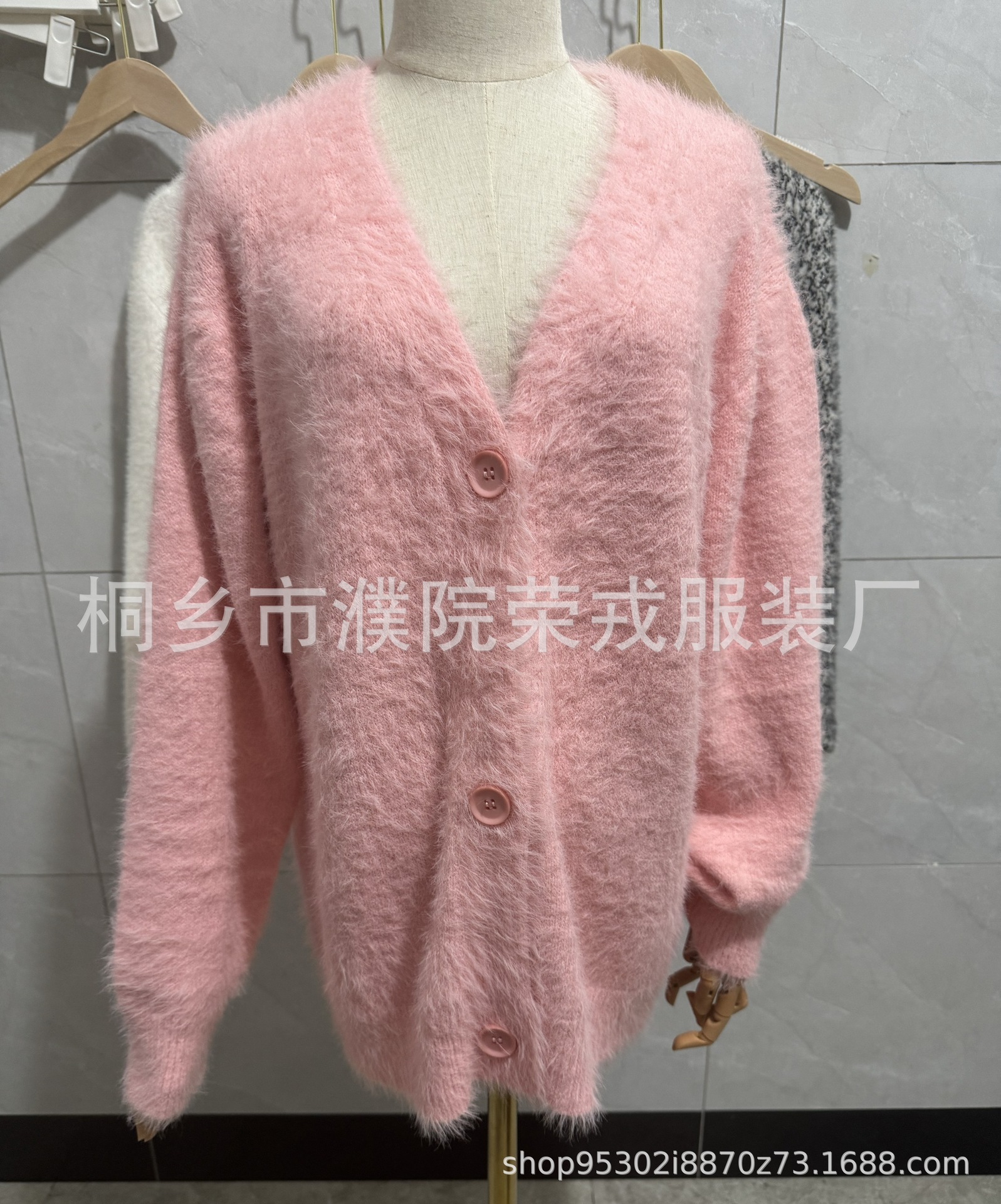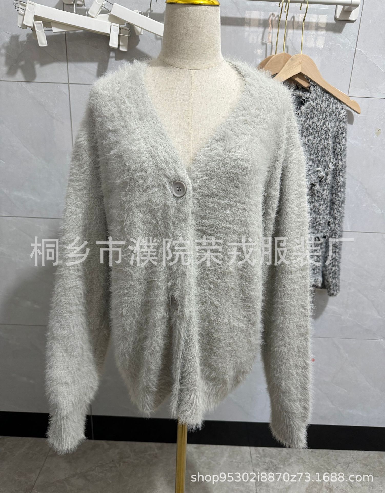 국경 간 모조 밍크 울 니트 스웨터 카디건 유럽과 미국 2025 가을과 겨울 게으른 느슨한 긴 소매 V 넥 스웨터 코트스토어 가기