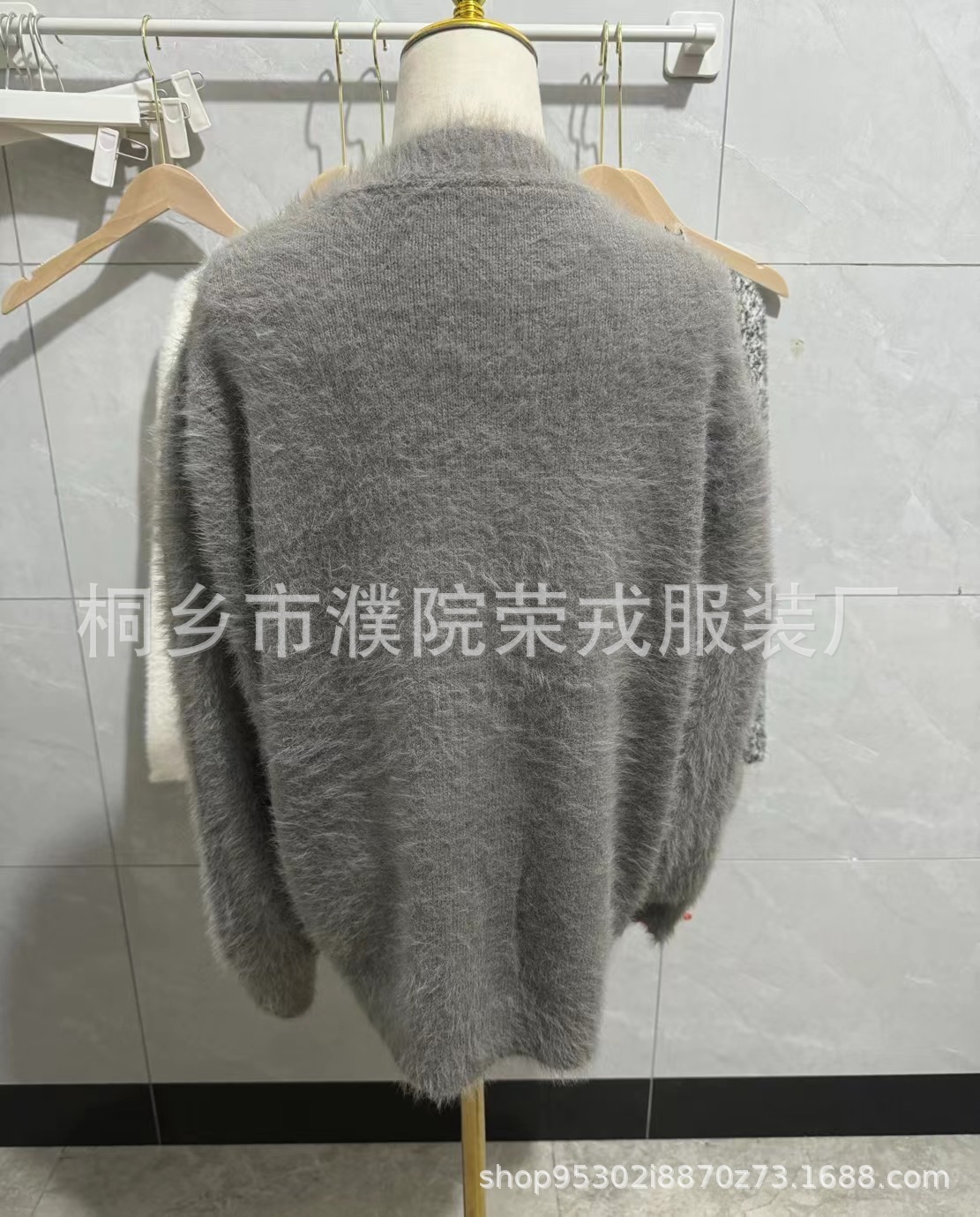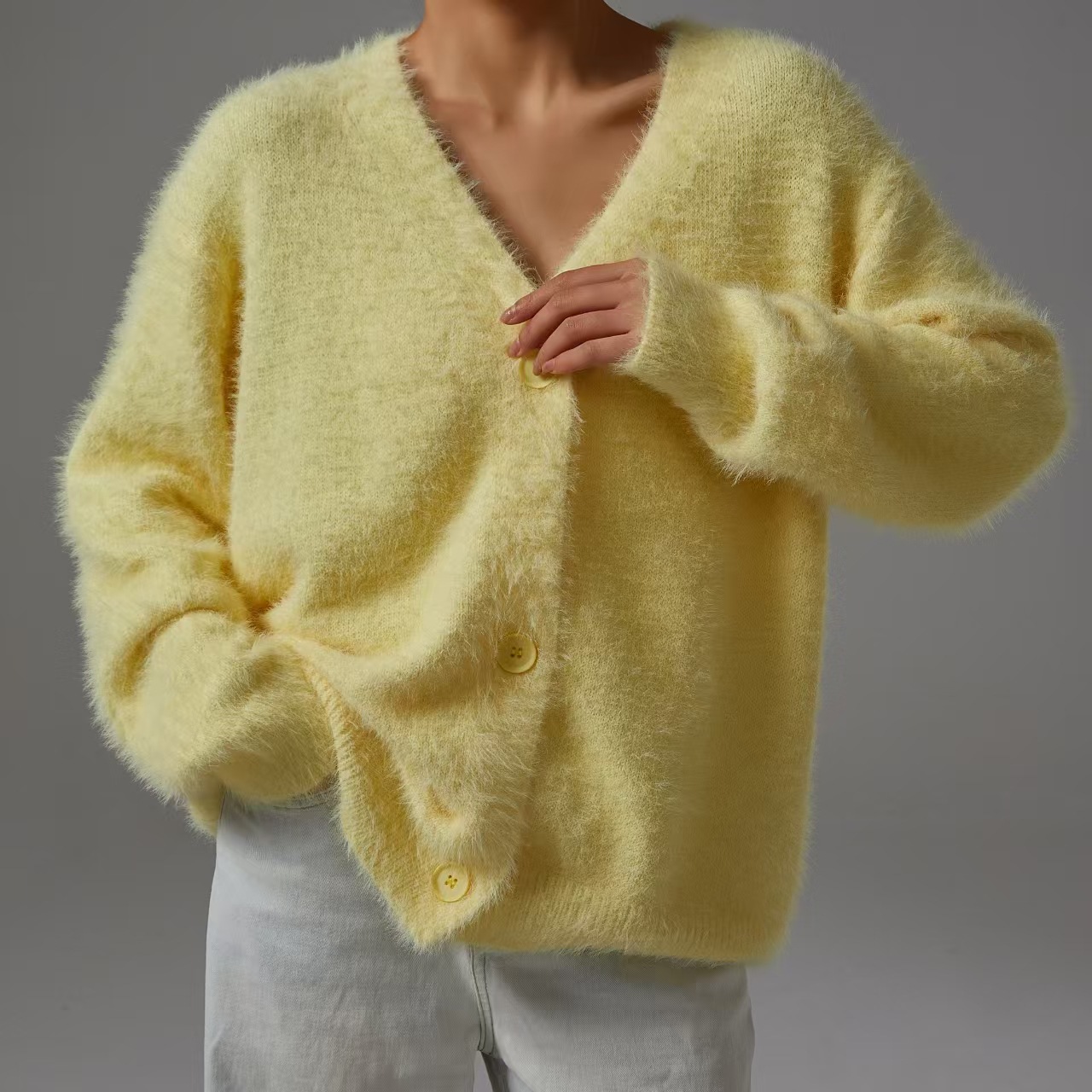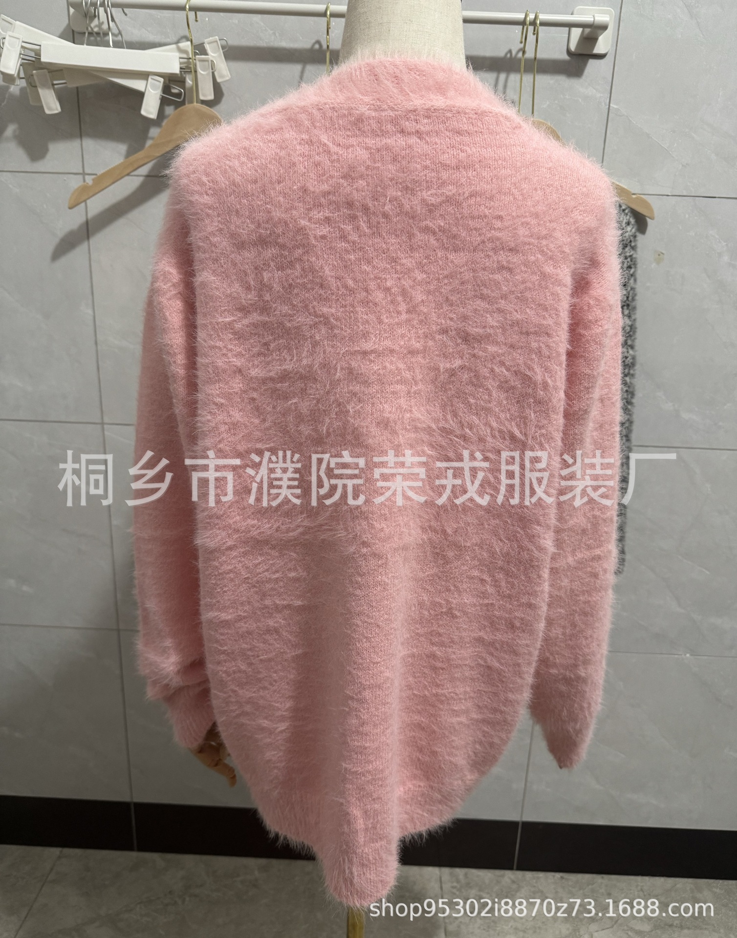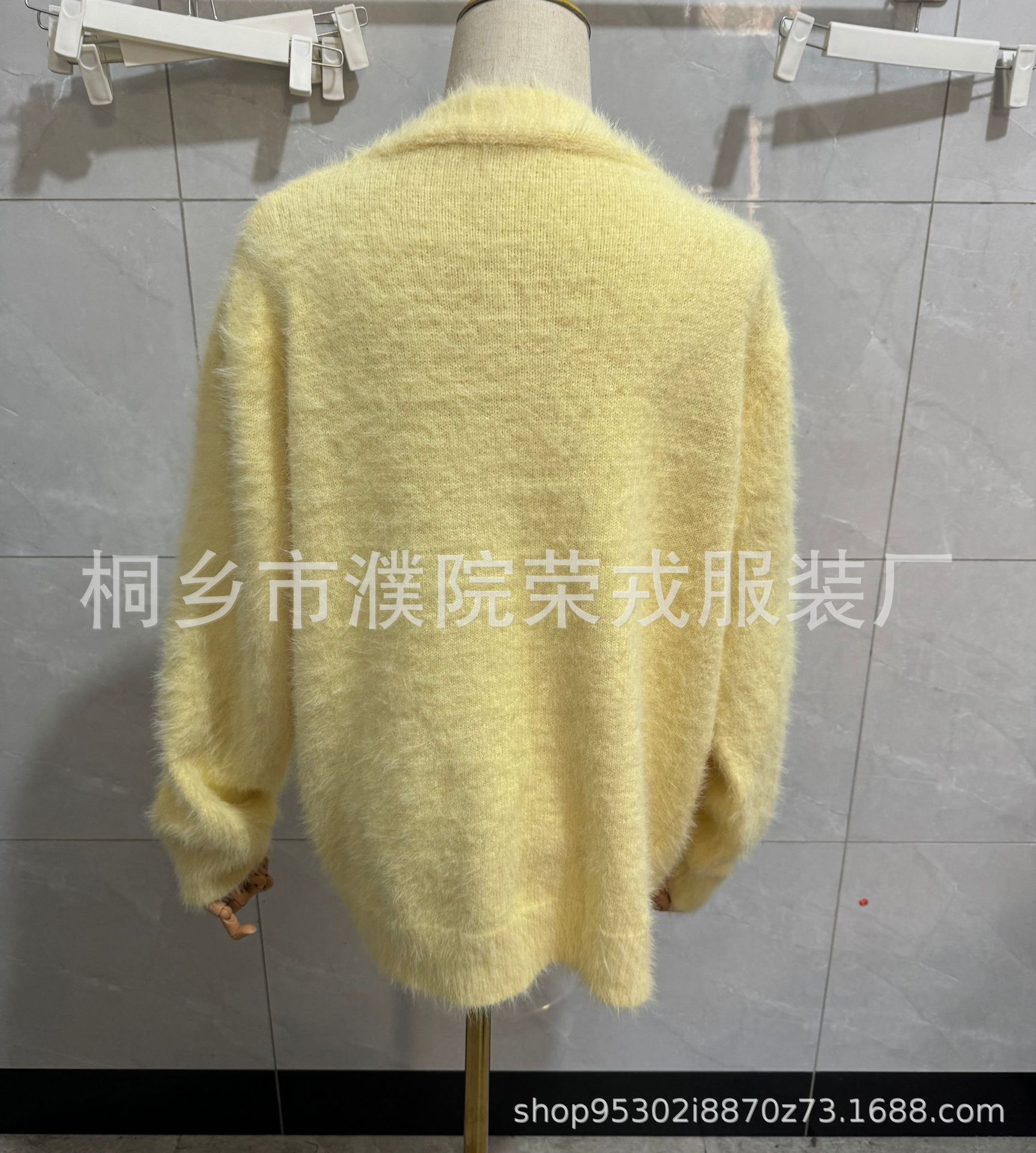 국경 간 모조 밍크 울 니트 스웨터 카디건 유럽과 미국 2025 가을과 겨울 게으른 느슨한 긴 소매 V 넥 스웨터 코트스토어 가기