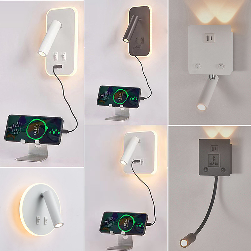 새로운 국경 창조적 인 벽 램프 LED 호텔 독서 램프 USB 침실 침대 옆 램프 현대 간단한 플러그 램프