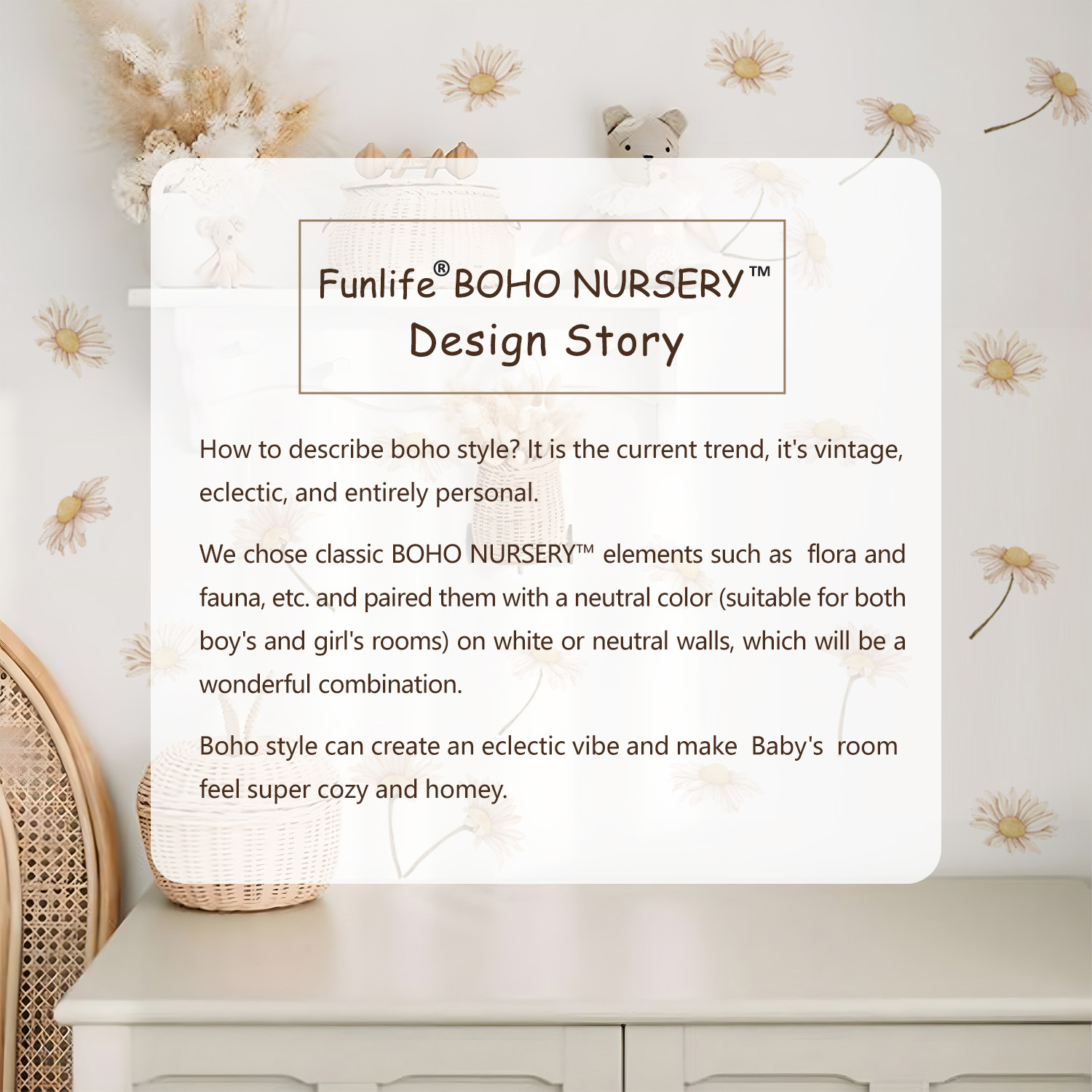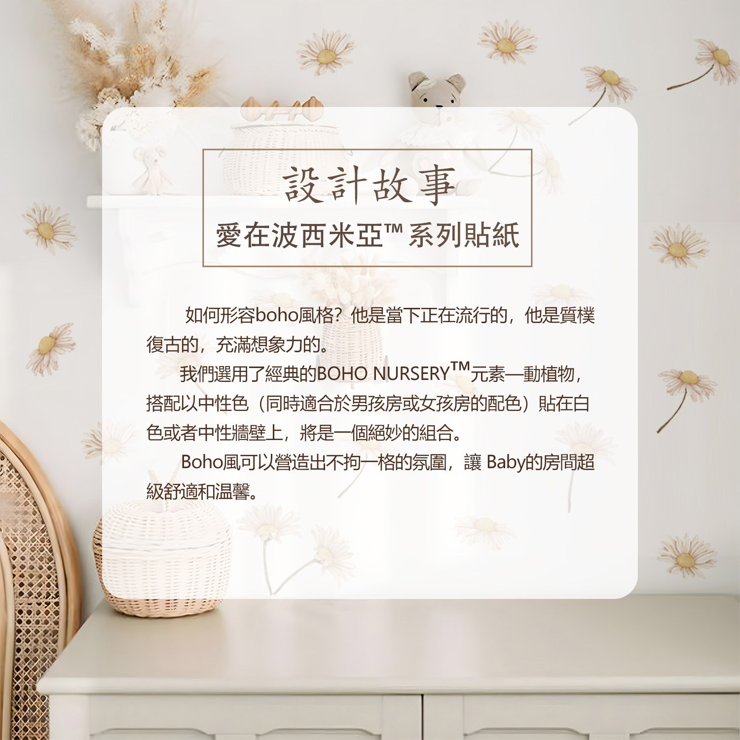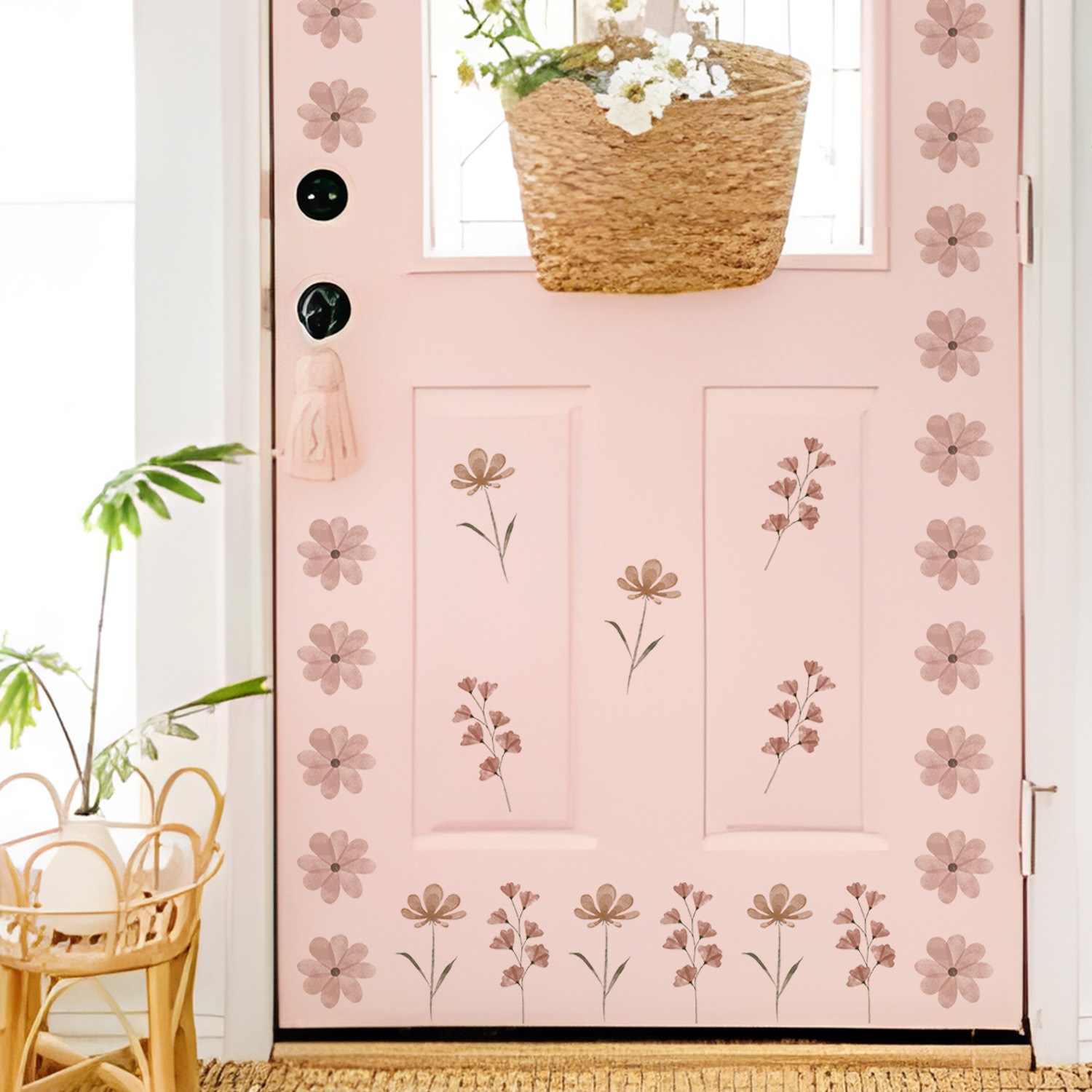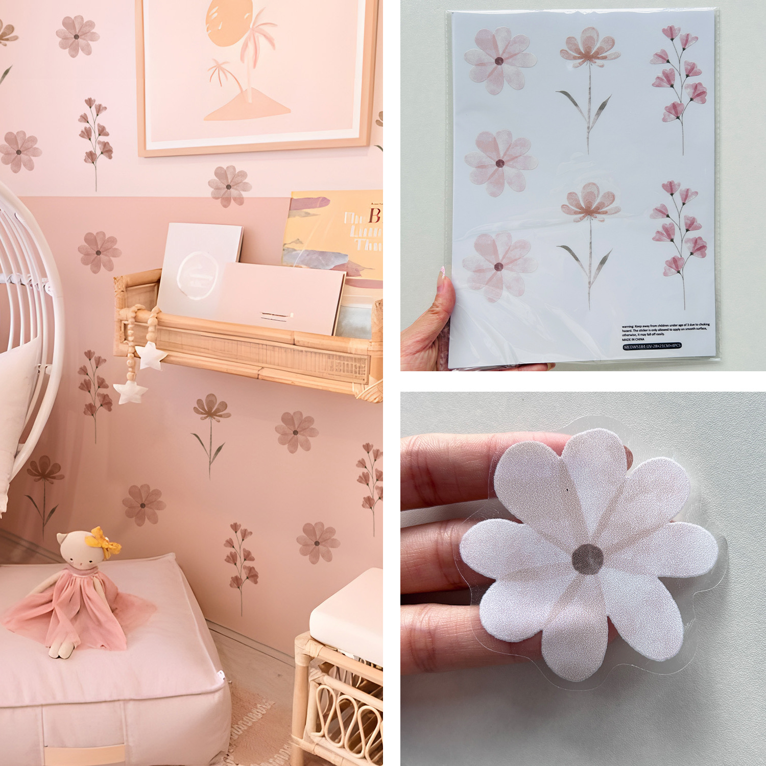 보헤미아의 장례식 사랑 수채화 핑크 데이지 패턴 PVC 만화 자기 접착 벽 스티커 MEDWS184