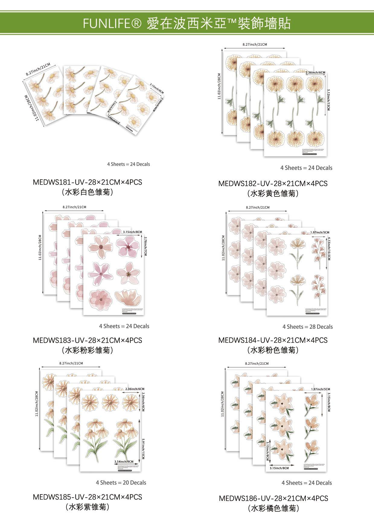 보헤미아의 장례식 사랑 수채화 핑크 데이지 패턴 PVC 만화 자기 접착 벽 스티커 MEDWS184스토어 가기