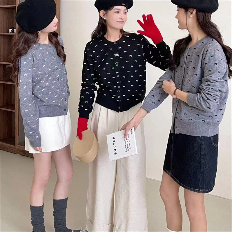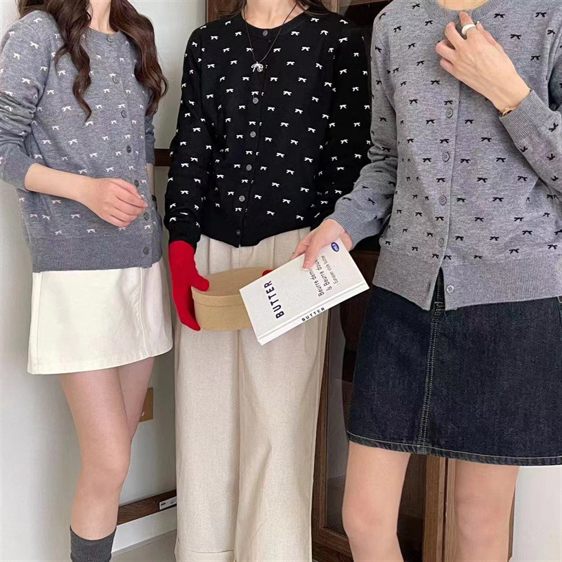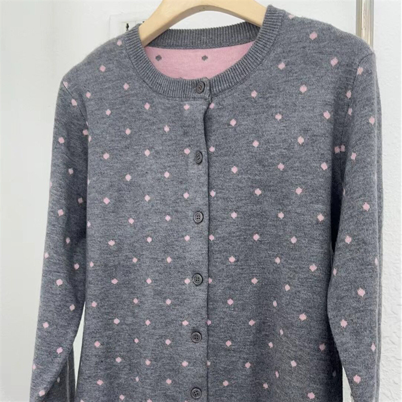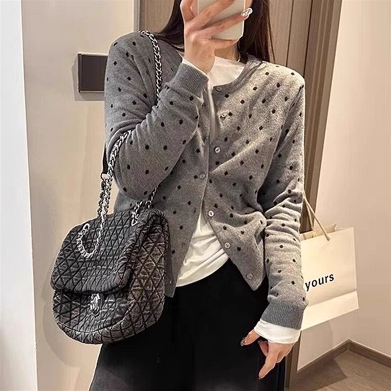 한국 스타일 폴로 도트 니트 카디건 여성 가을 2024 새로운 여성 스태킹웨어 디자인 센스 슬리밍 긴 소매 탑 여성 패션스토어 가기