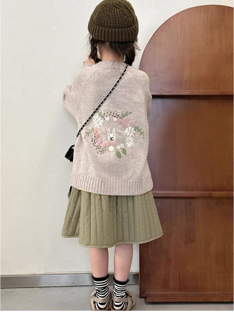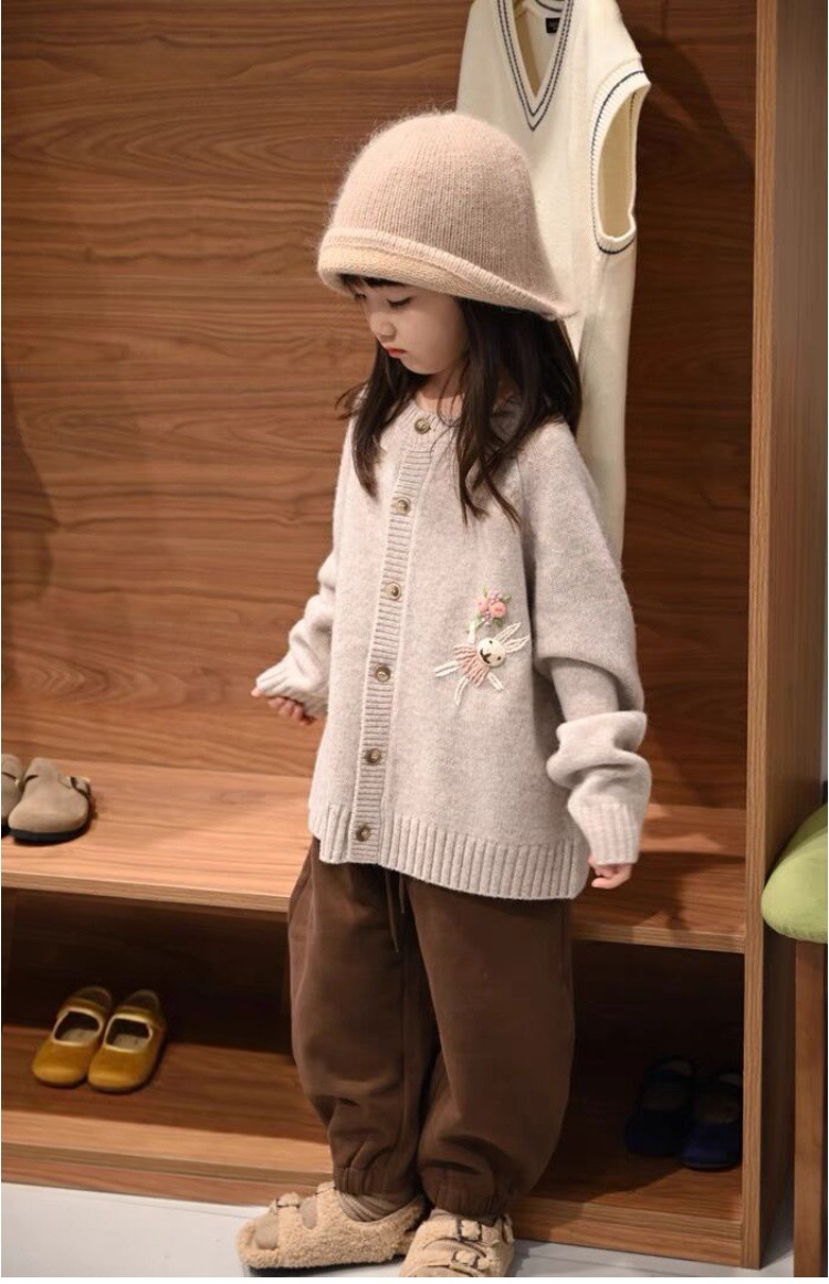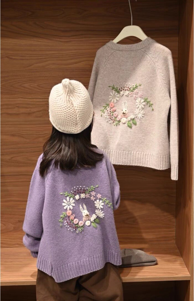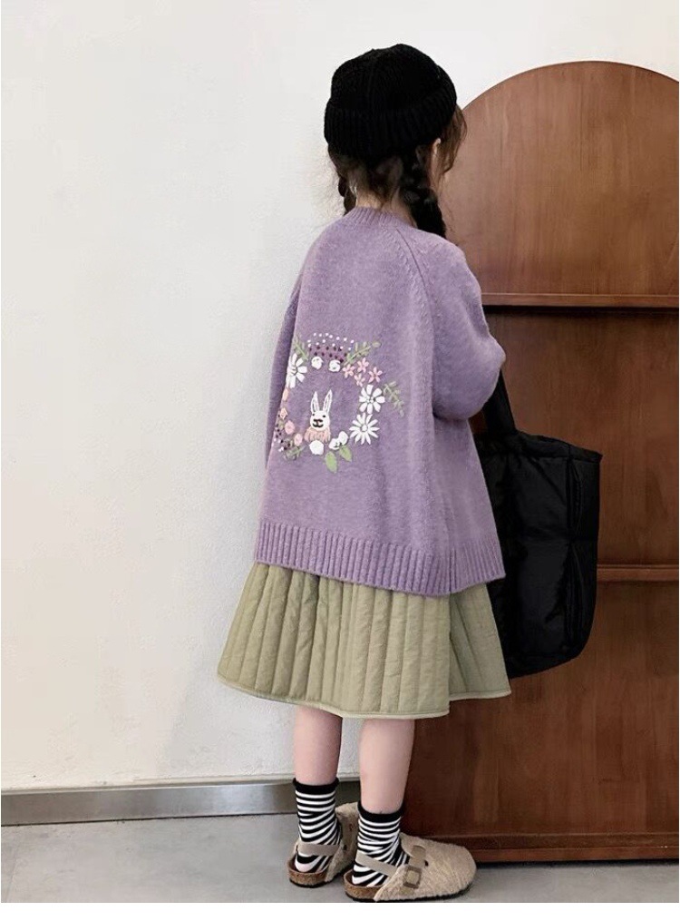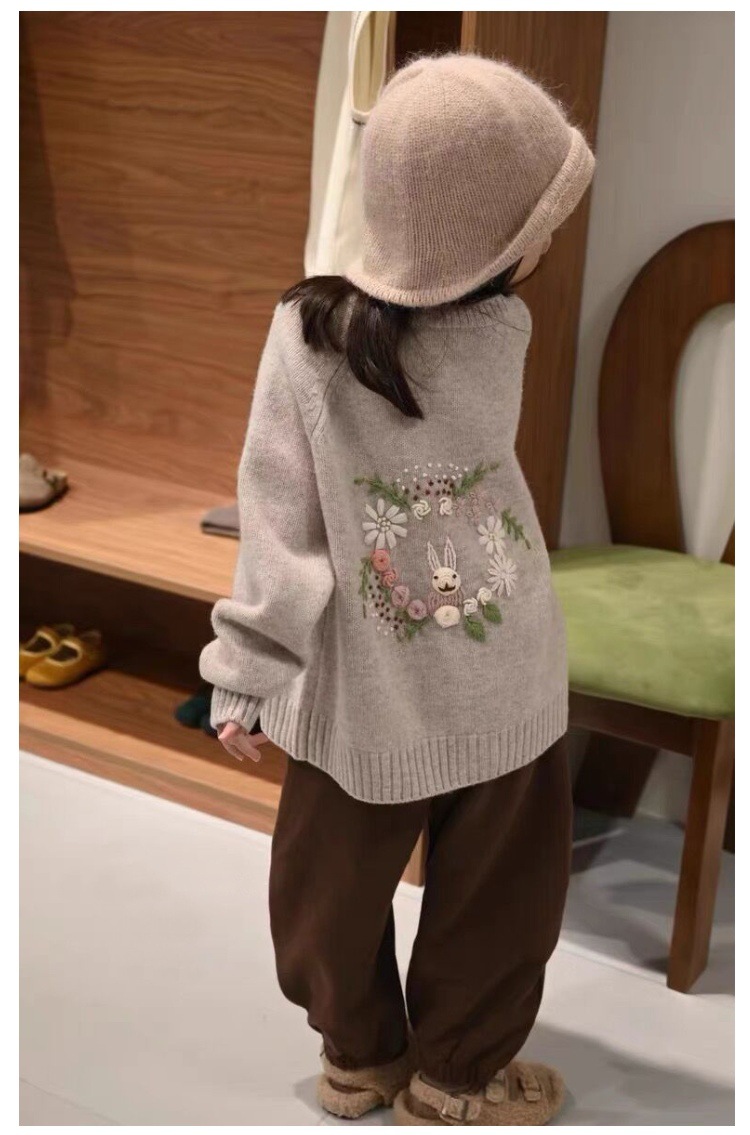 소녀 코트 가을 2024 새로운 어린이 니트 카디건 서양식 만화 토끼 크루 넥 중 큰 어린이 탑스토어 가기