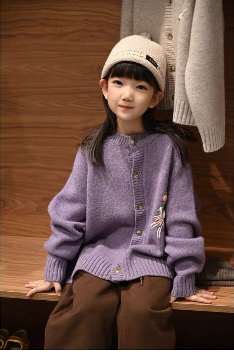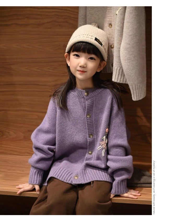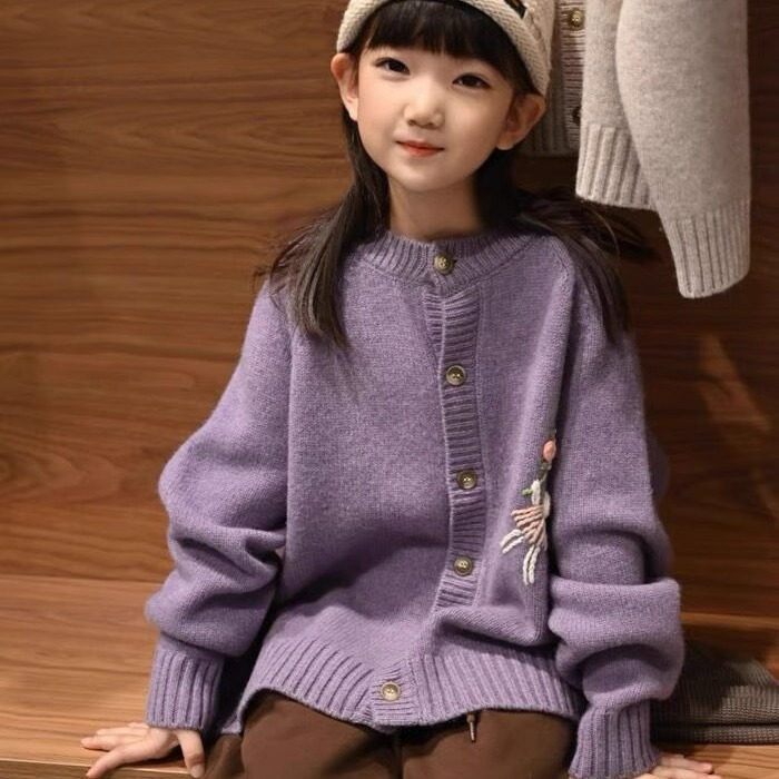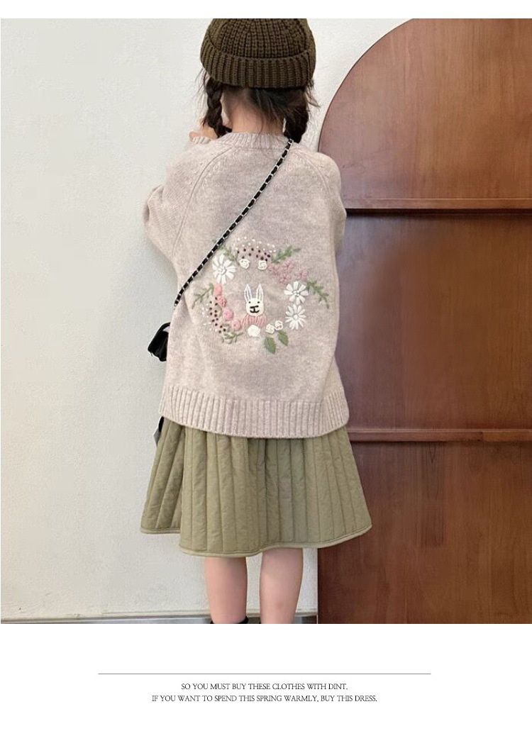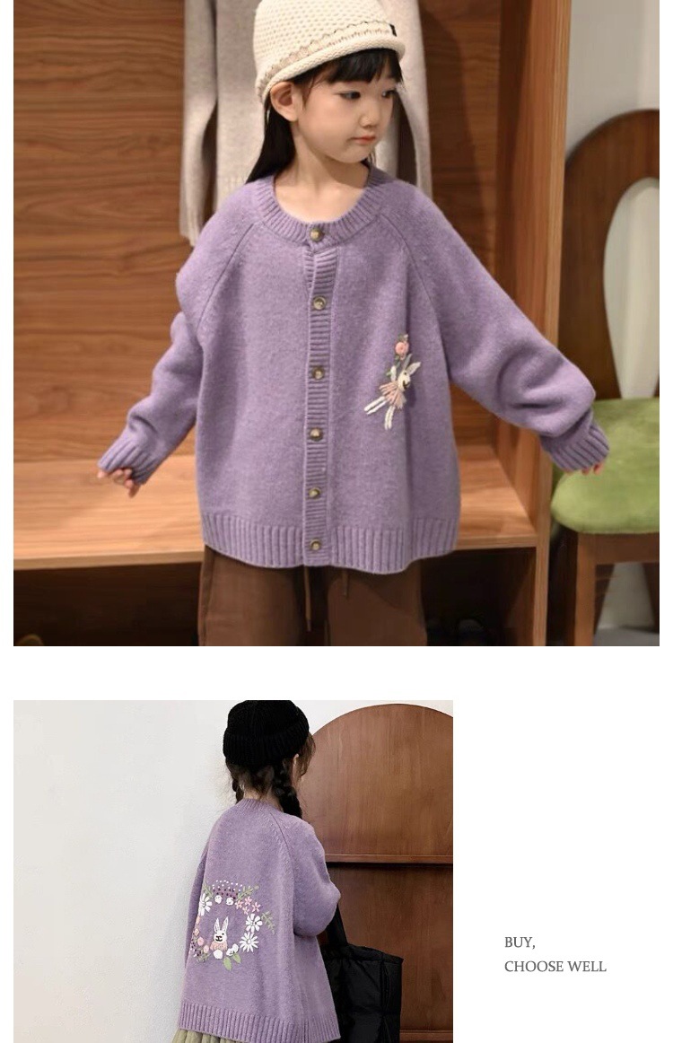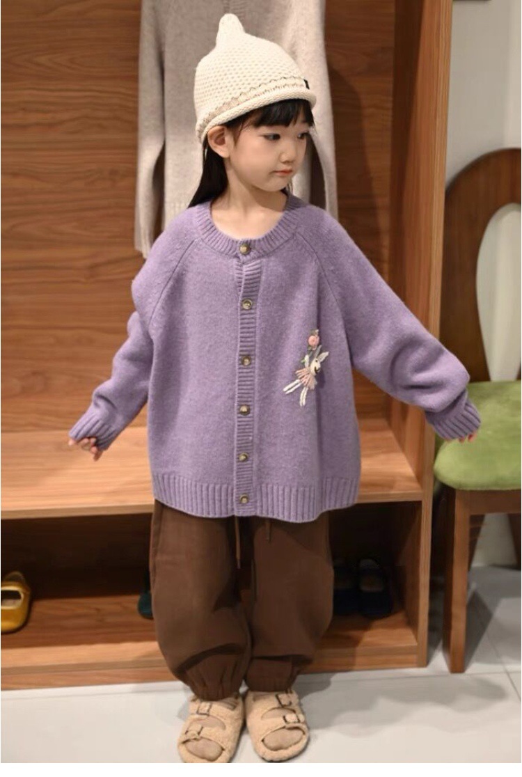 소녀 코트 가을 2024 새로운 어린이 니트 카디건 서양식 만화 토끼 크루 넥 중 큰 어린이 탑스토어 가기