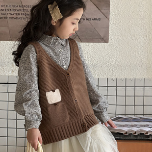 女童针织马甲春秋款2024新款韩版洋气儿童休闲开衫秋装中大童上衣